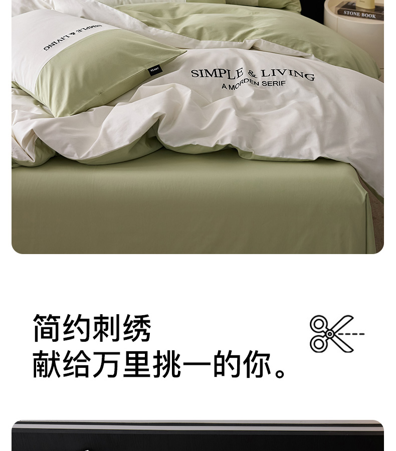 (总)佳汐蓝家纺 2025新款春夏新品TENCEL兰精天丝四件套绣花系列,墨菲花园·珍珠绿