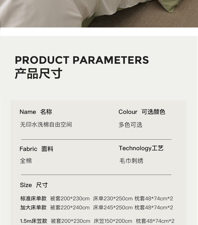 商品名称:(总)佳汐蓝家纺 2025春夏新款无印水洗棉自由空间四件套