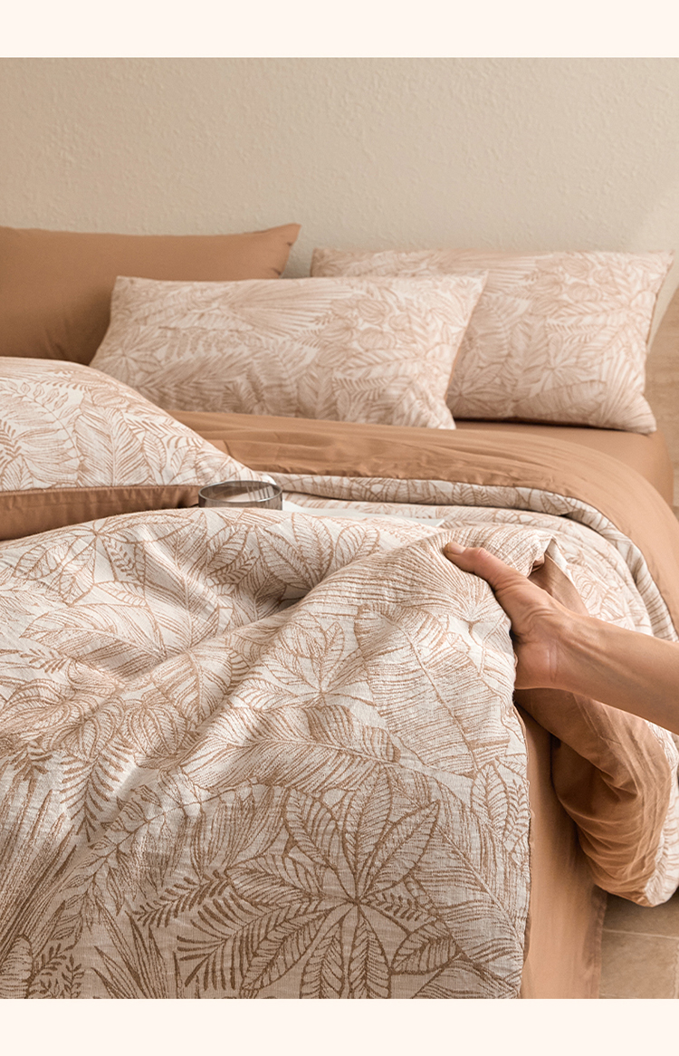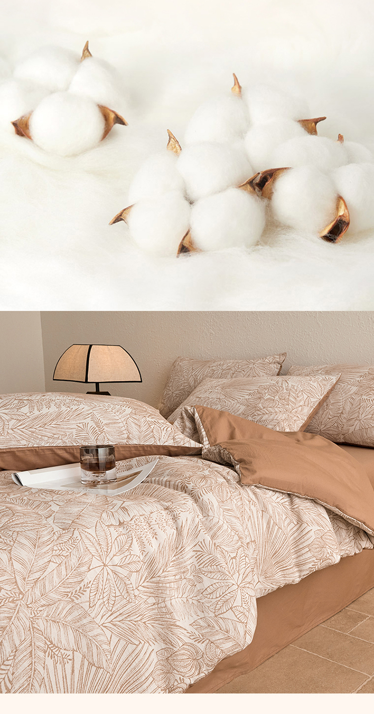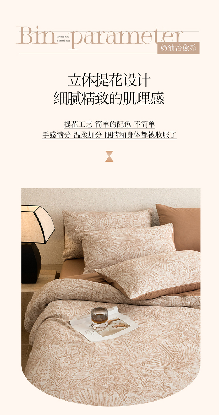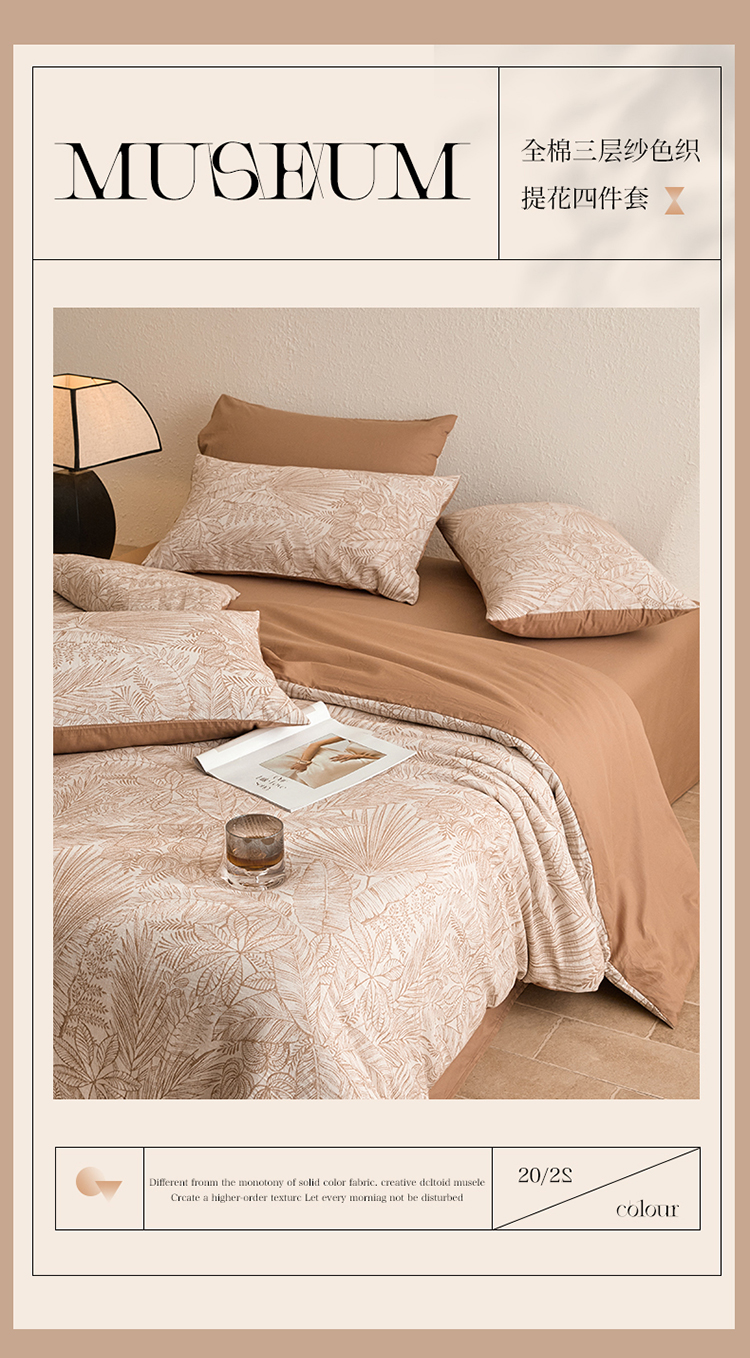 当前位置: 91家纺网 > 商品网购 > 床品套件 > 四件套 > 全棉普通四件套 > 2025新款全棉三层纱色织大提花四件套系列 蕉梦-咖