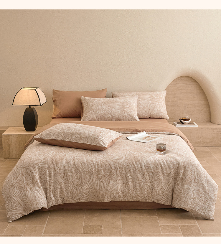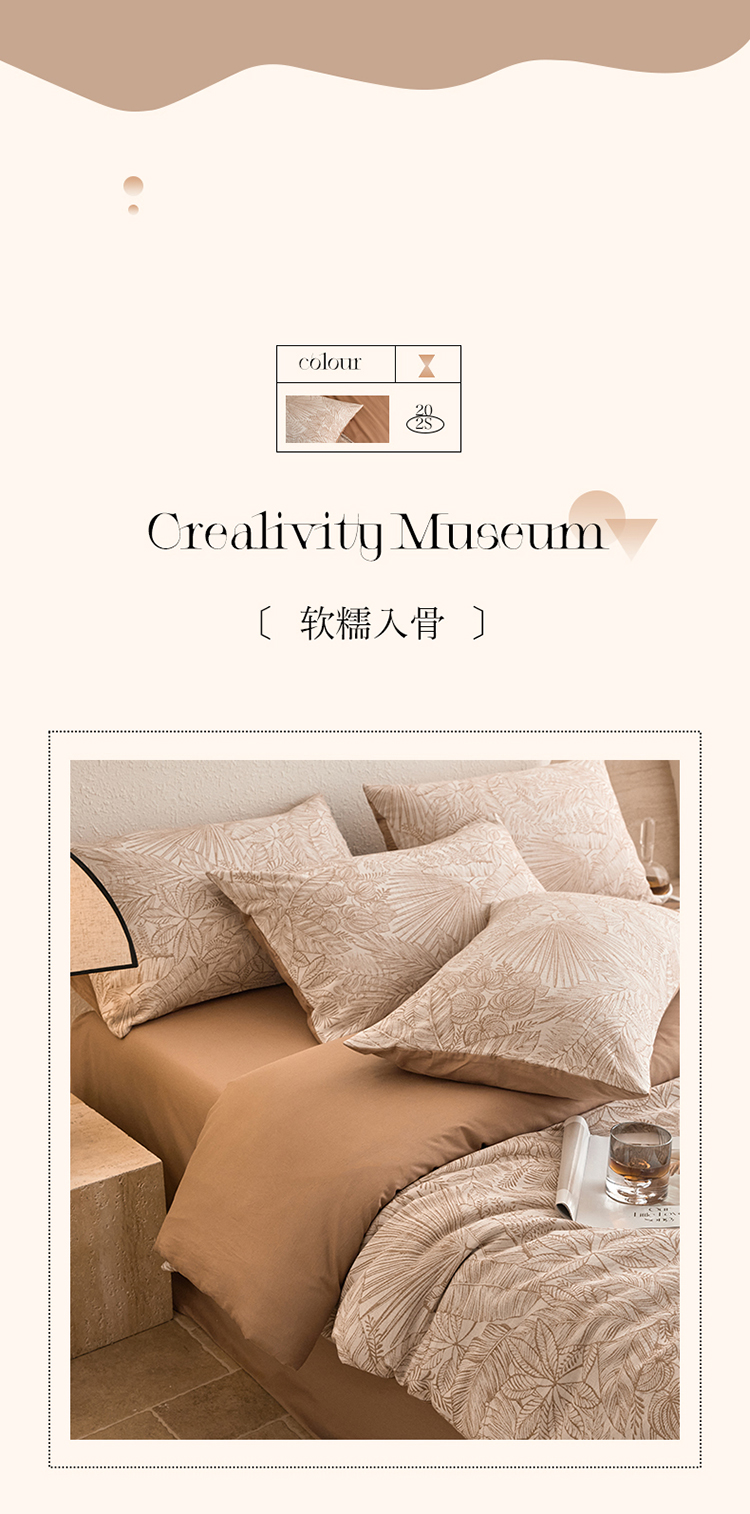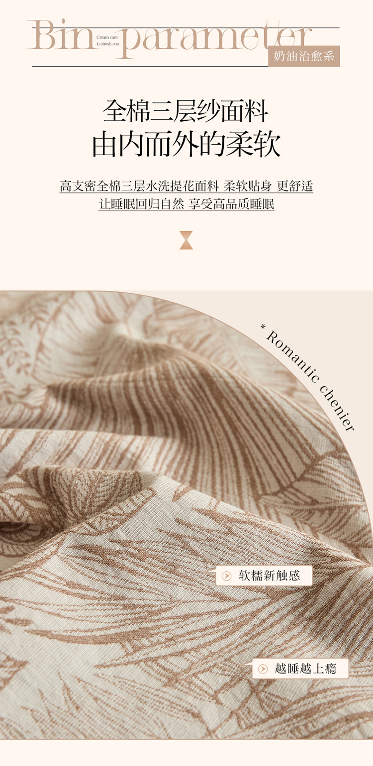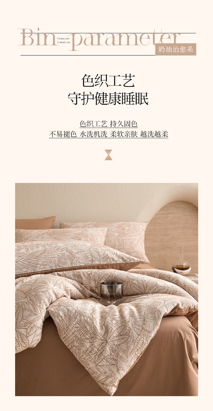 当前位置: 91家纺网 > 商品网购 > 床品套件 > 四件套 > 全棉普通四件套 > 2025新款全棉三层纱色织大提花四件套系列 蕉梦-咖