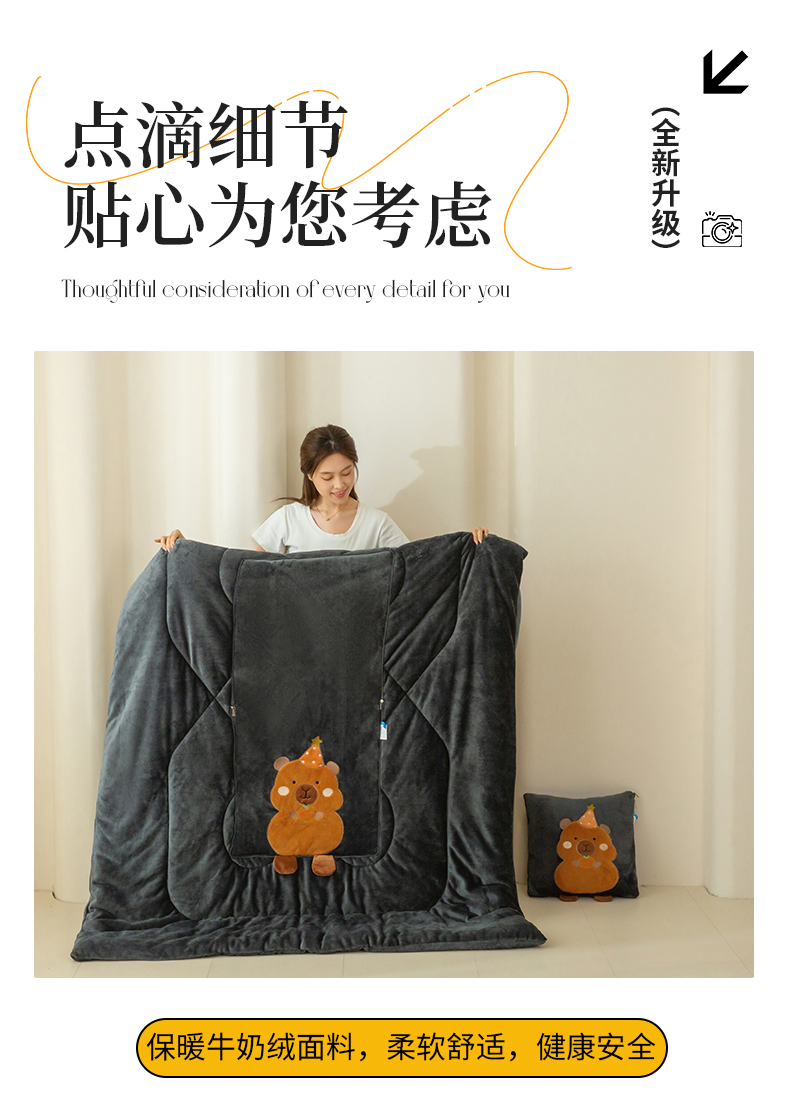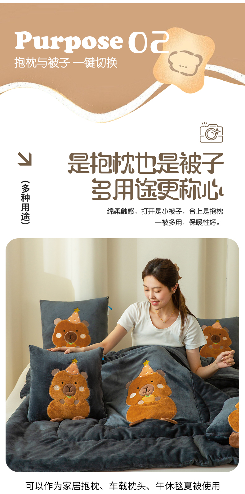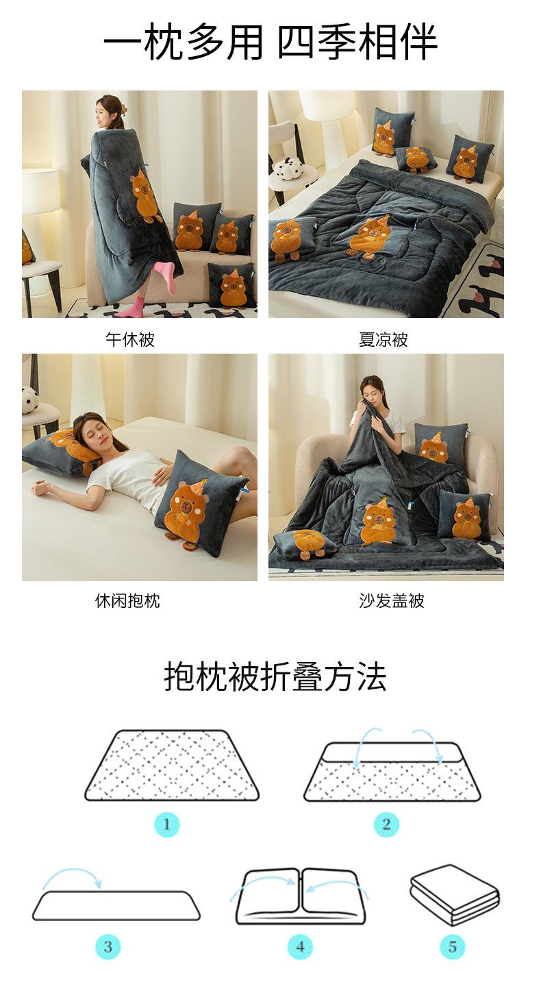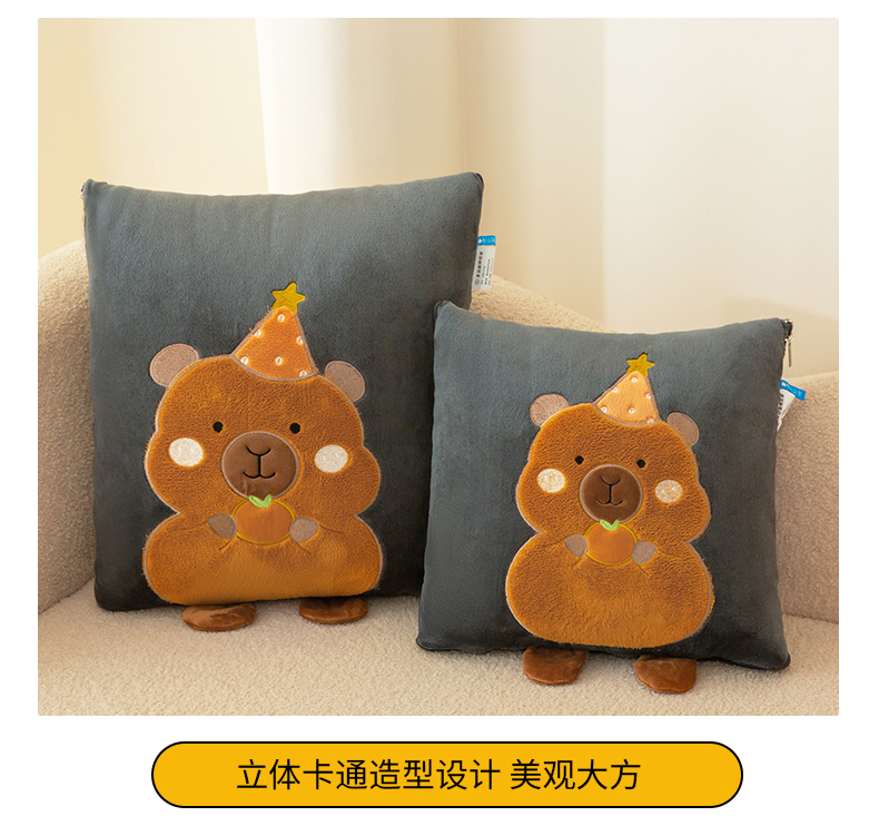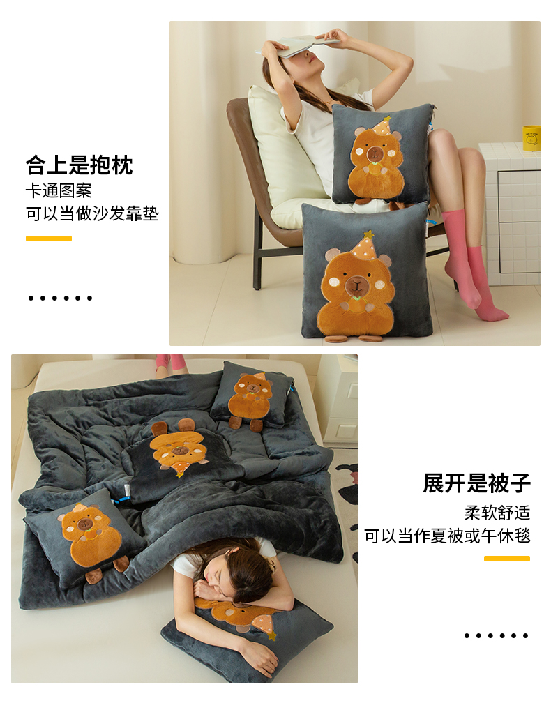 商品名称:雷娜家居 2025新款卡皮巴拉系列抱枕被 卡皮巴拉灰色