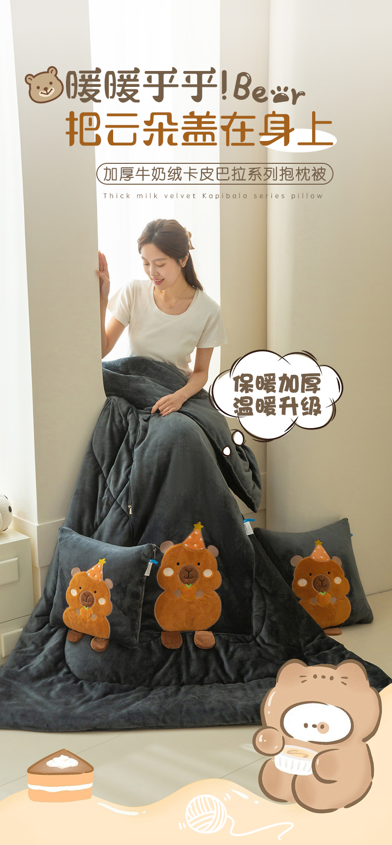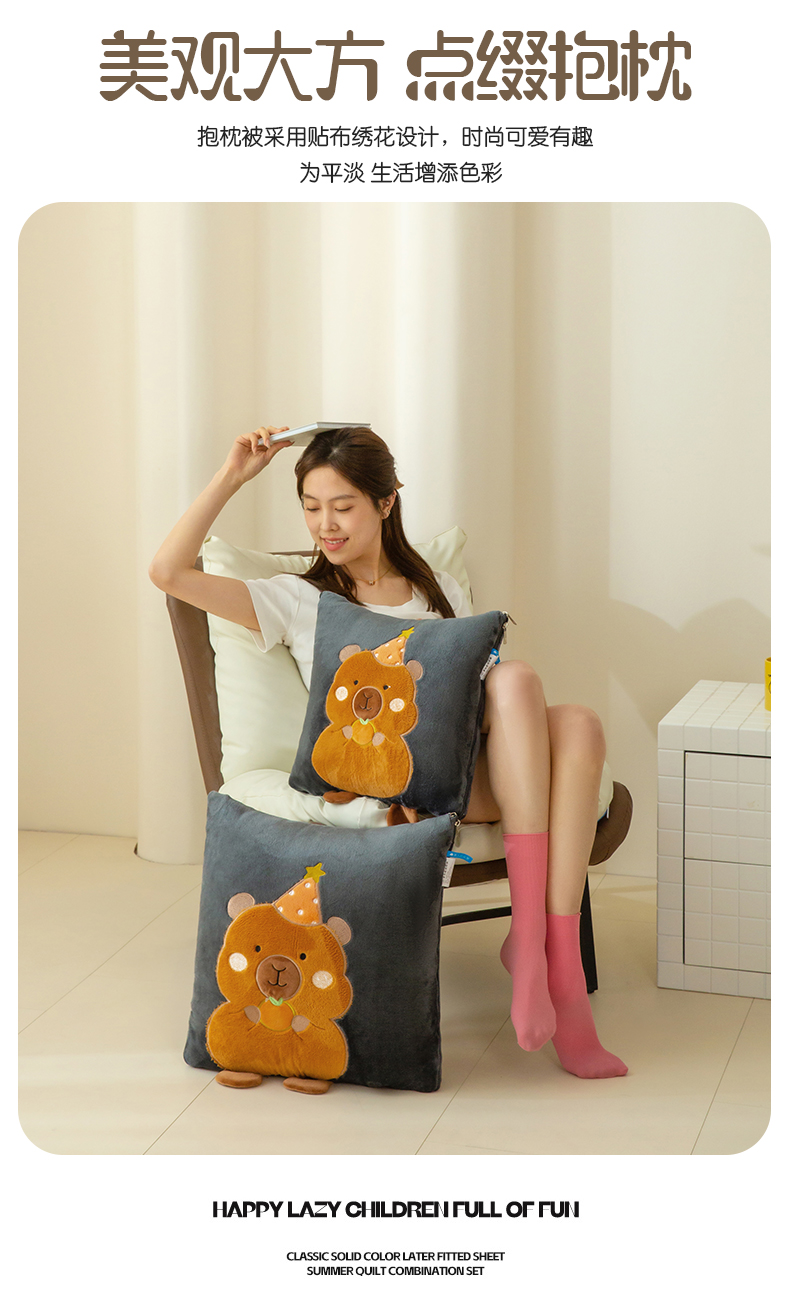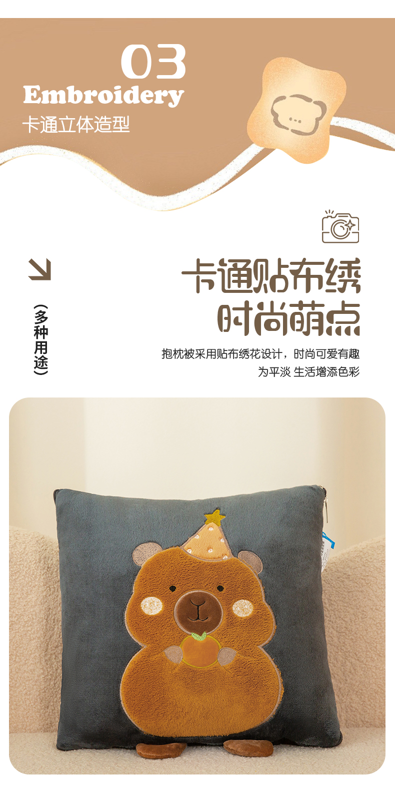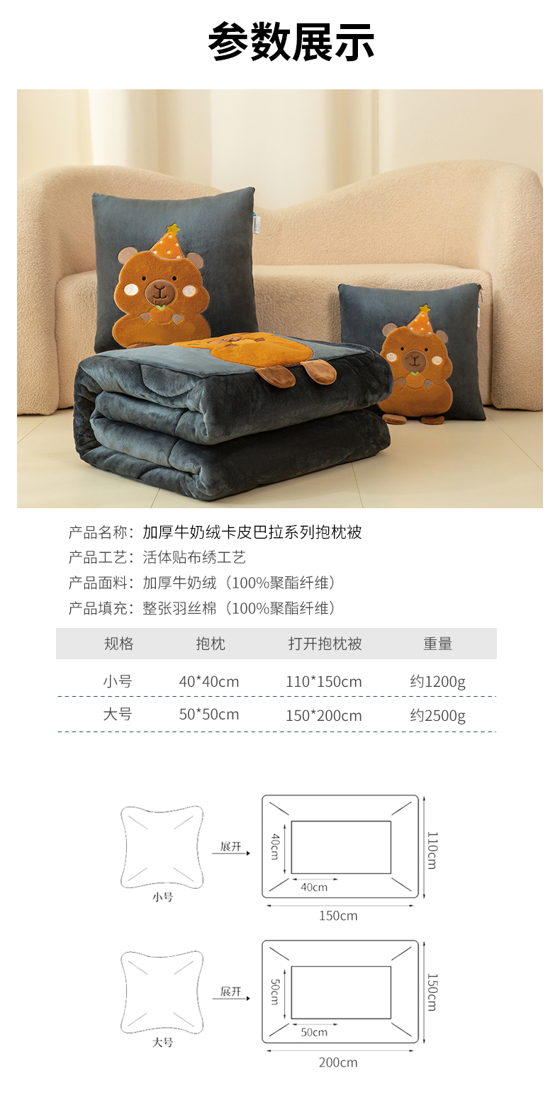 商品名称:雷娜家居 2025新款卡皮巴拉系列抱枕被 卡皮巴拉灰色