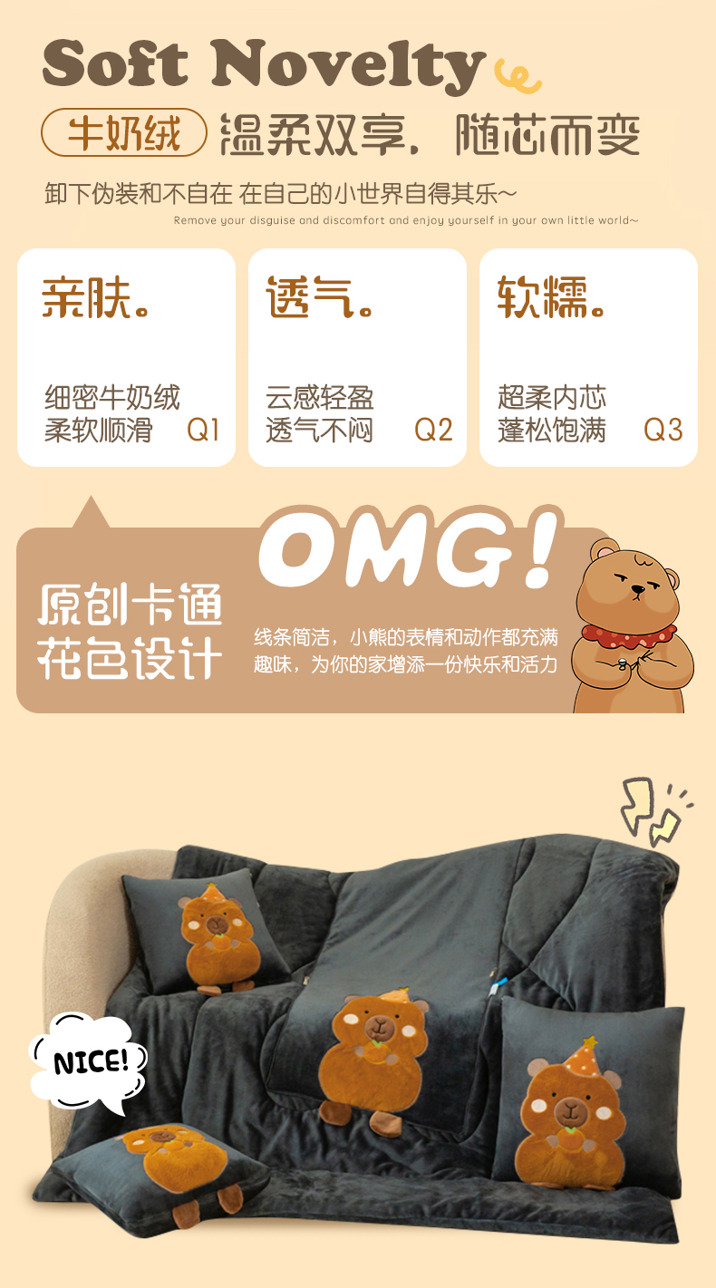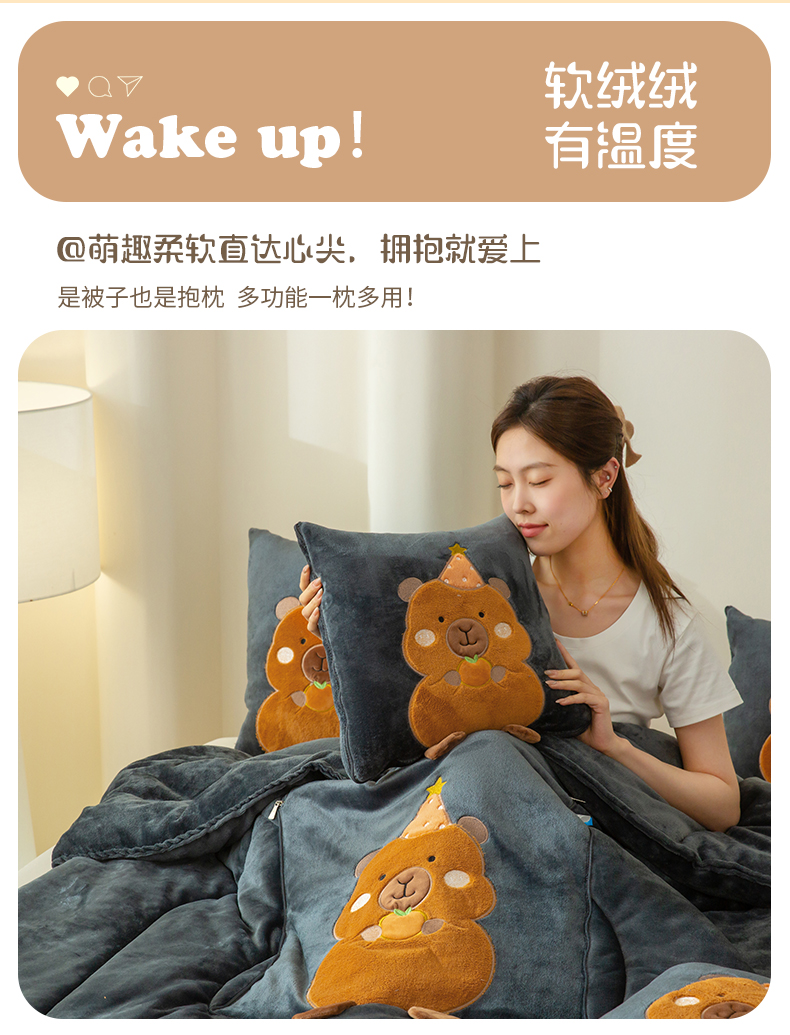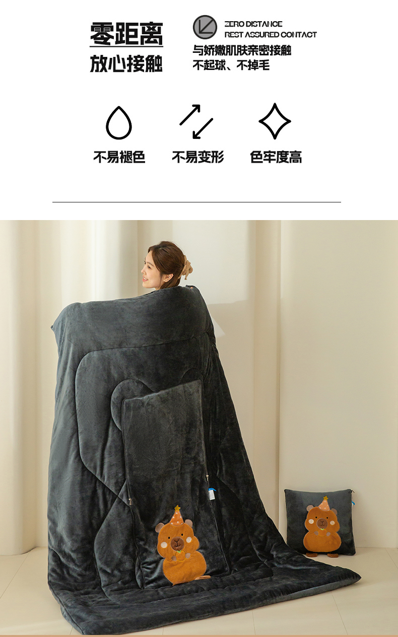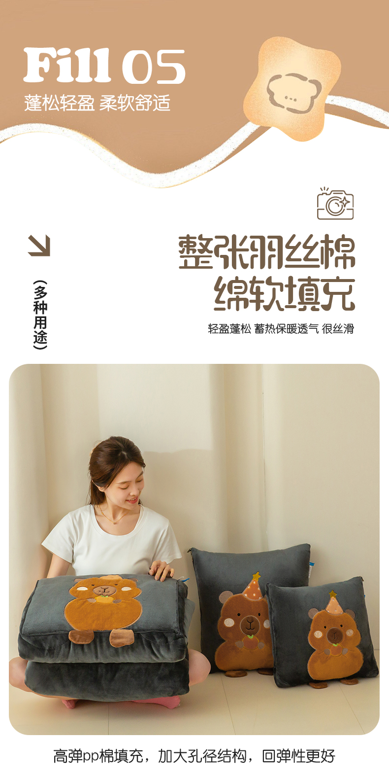 商品名称:雷娜家居 2025新款卡皮巴拉系列抱枕被 卡皮巴拉灰色