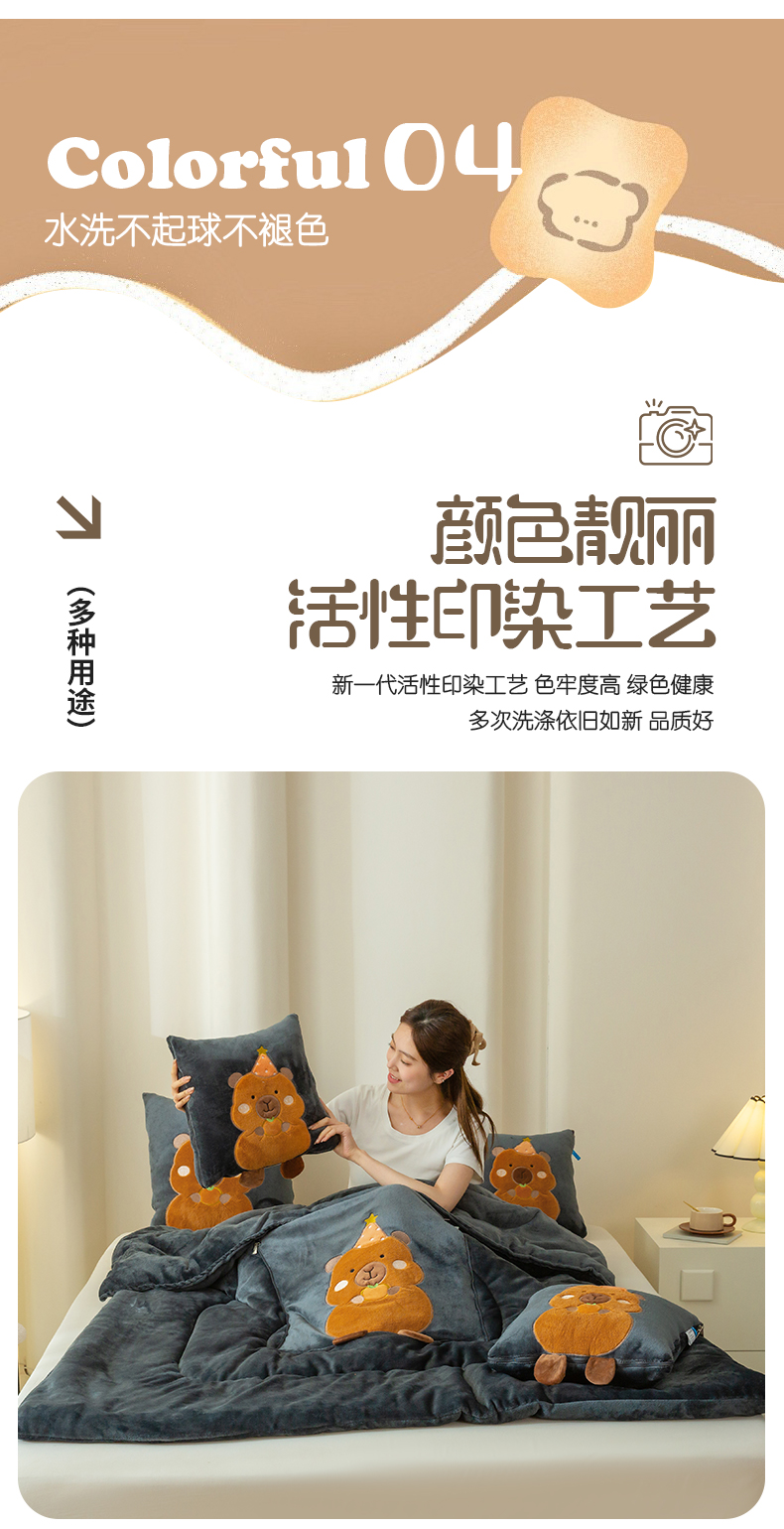 (总)2025新款加厚款图拉拉系列抱枕被,图拉拉粉色,图拉拉咖啡色,图拉拉卡其色