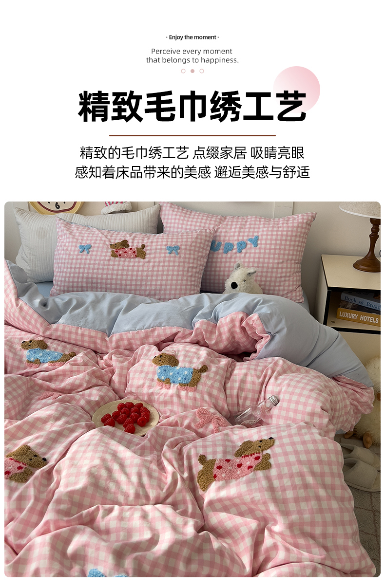 当前位置: 91家纺网 > 商品网购 > 床品套件 > 四件套 > 水洗棉四件套 > 水墨江南 2025新款超柔水洗棉毛巾绣系列四件套 腊肠狗狗粉