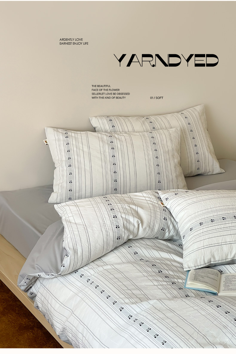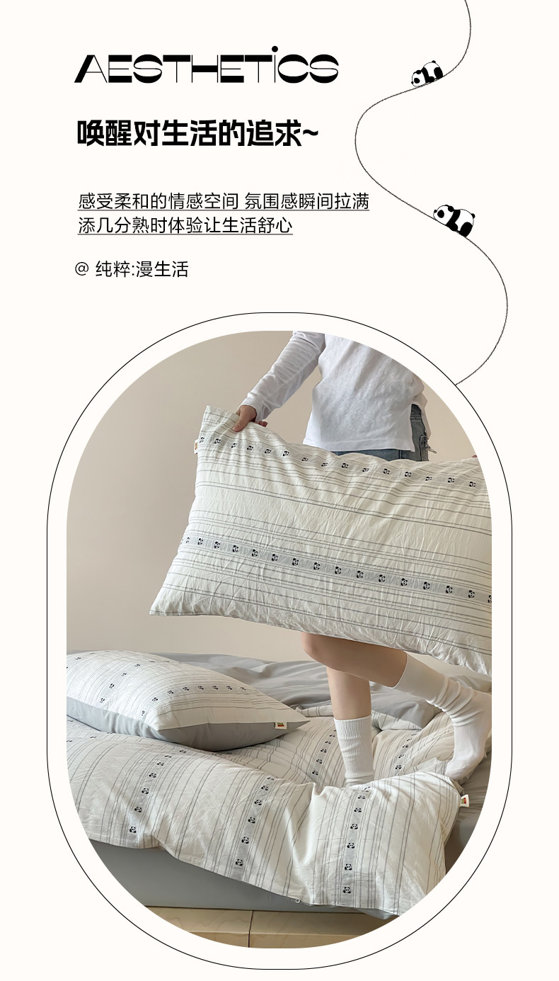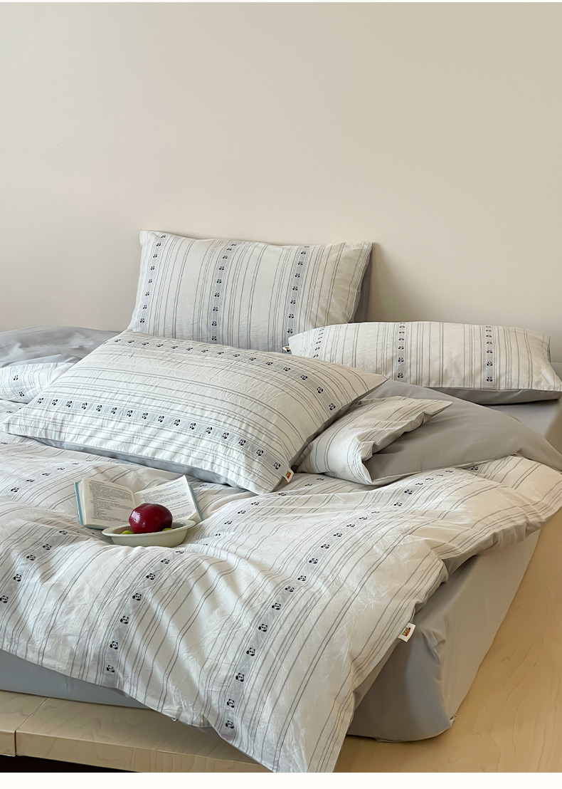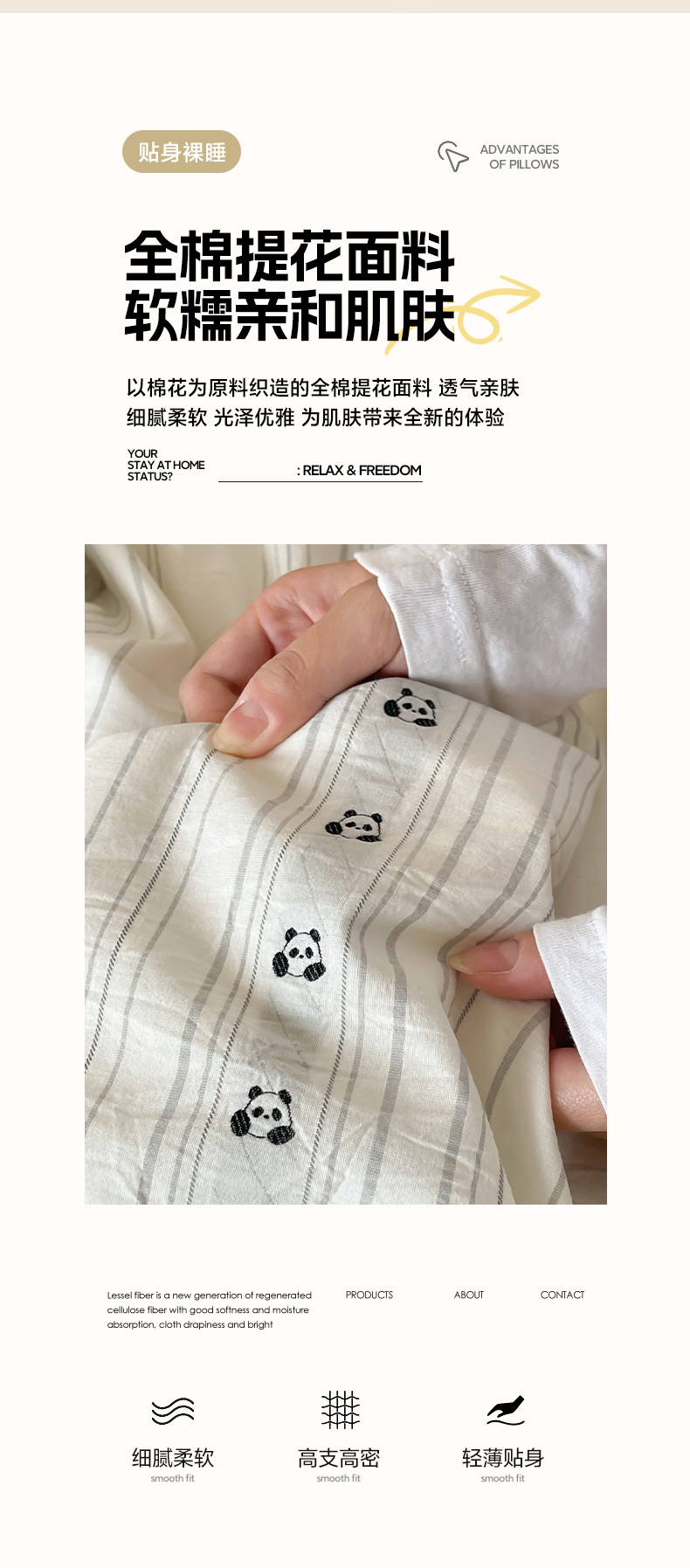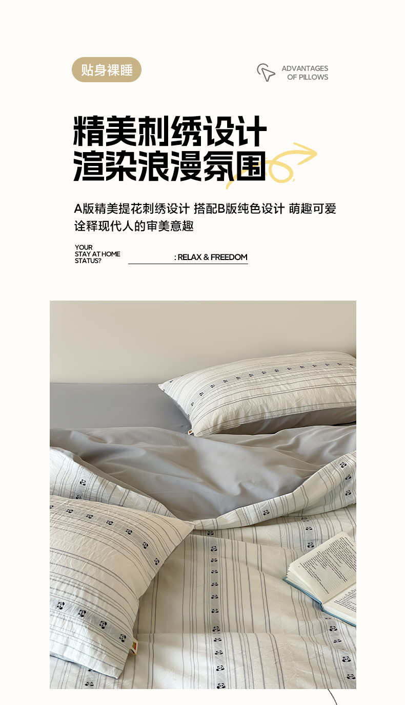 商品名称:卡巴伦家纺 2025新款全棉A类刺绣提花四件套 熊猫宝贝-灰