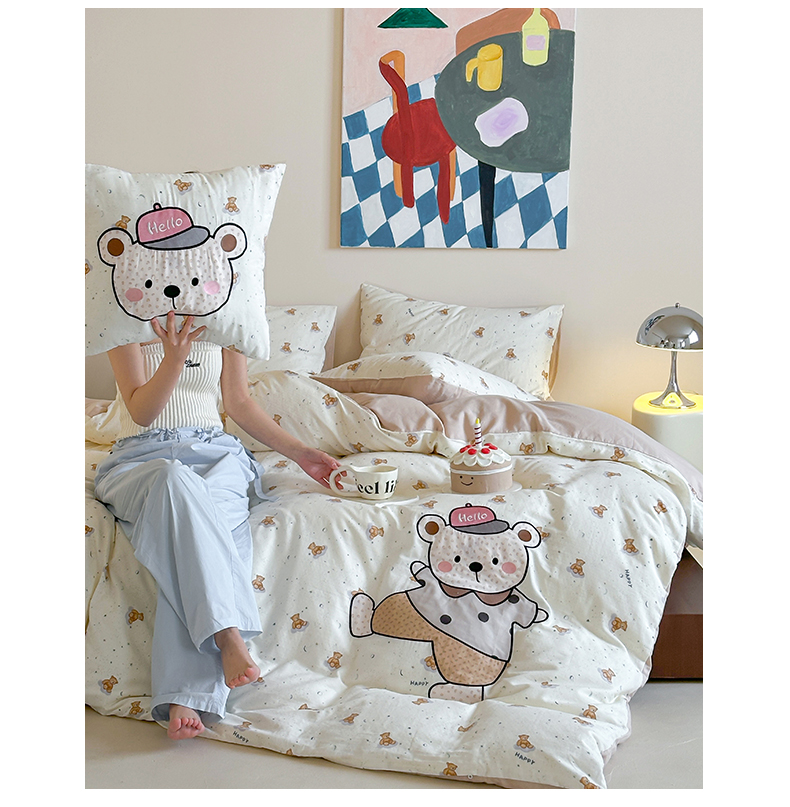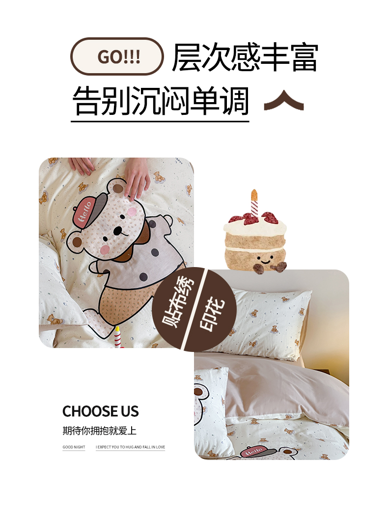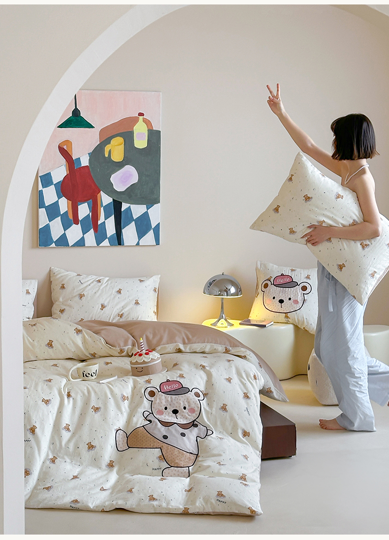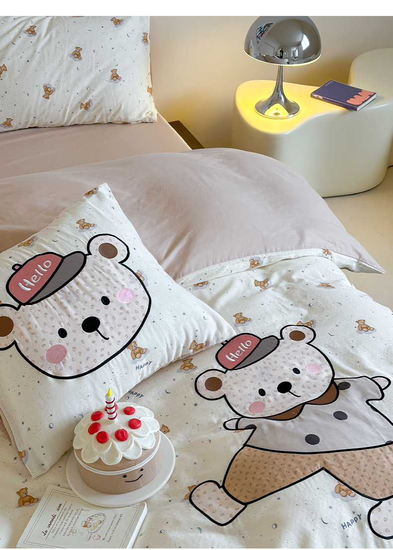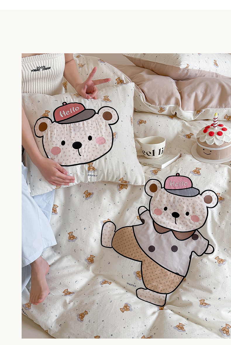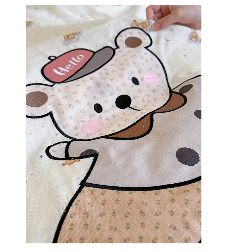 商品名称:卡巴伦家纺 2025新款全棉A类双层纱印花贴布绣四件套【全网控价(折后券后)不低于标准278/小号238元】 顽皮小熊