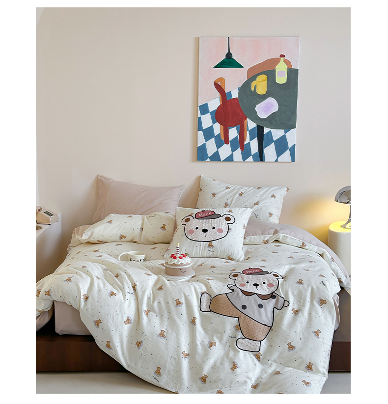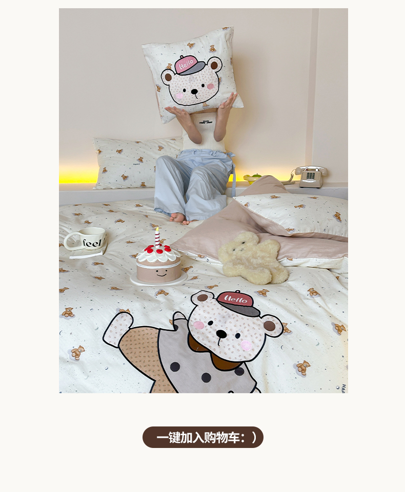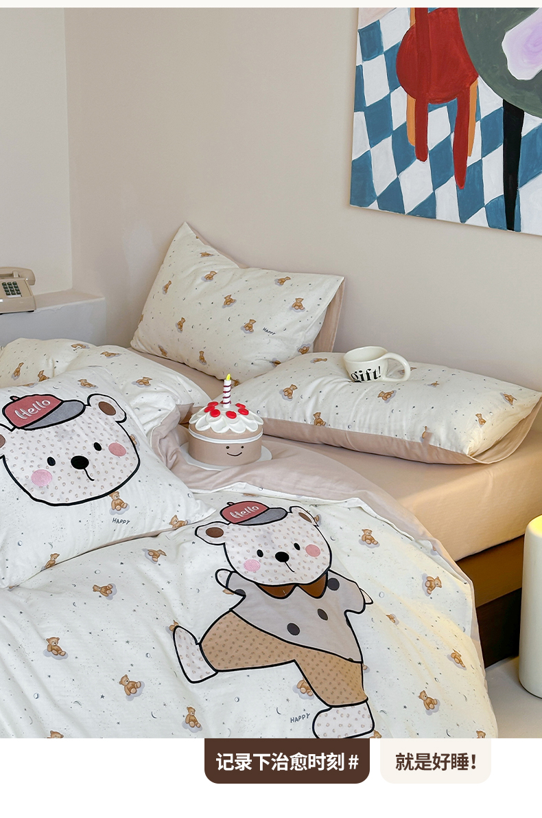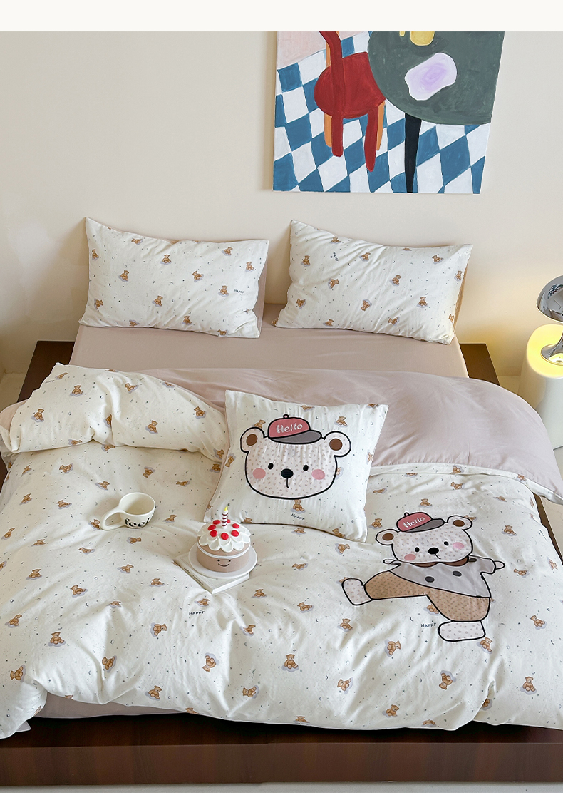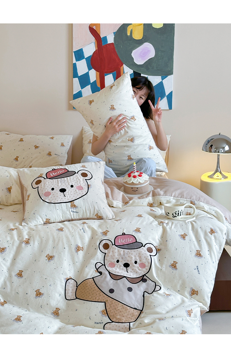 (总)卡巴伦家纺 2025新款全棉皱皱纱大版卡通数码印花款四件套二,酥酥熊-粉,腊肠总裁,生日万岁-粉,生日万岁-蓝,生日万岁-米,酥酥熊-米黄,汪汪掀被-灰,汪汪掀被-绿,小狗没烦恼