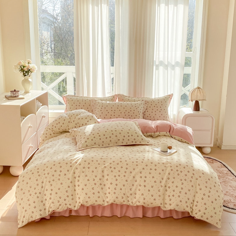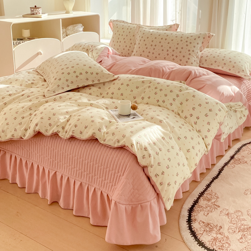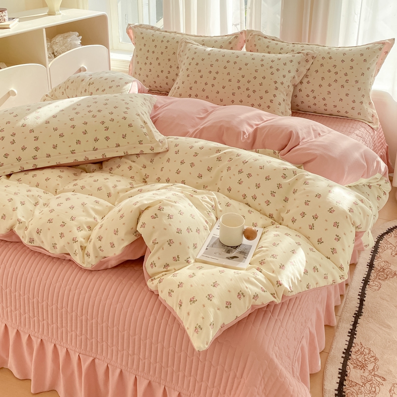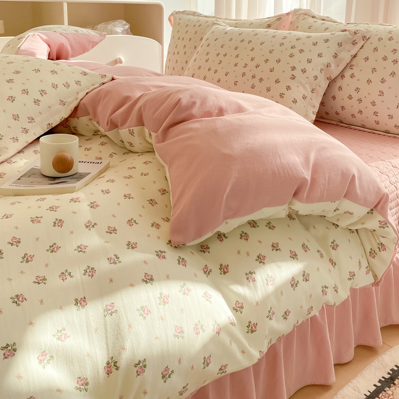 商品名称:尚美 2025新款小碎花针织棉床盖四件套 玫瑰