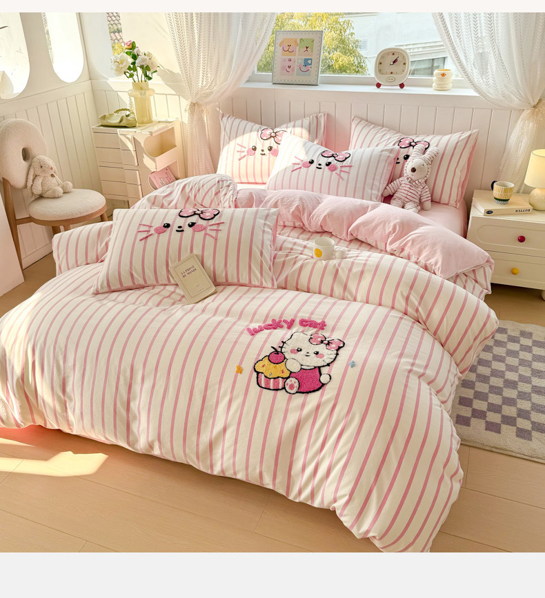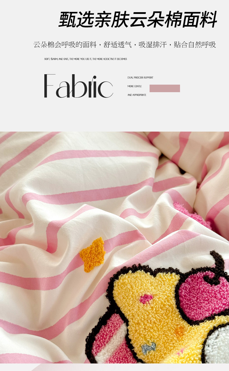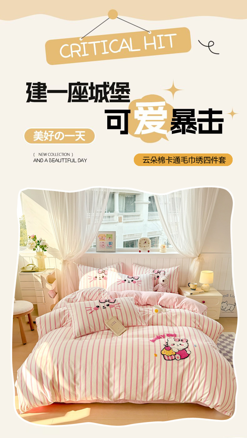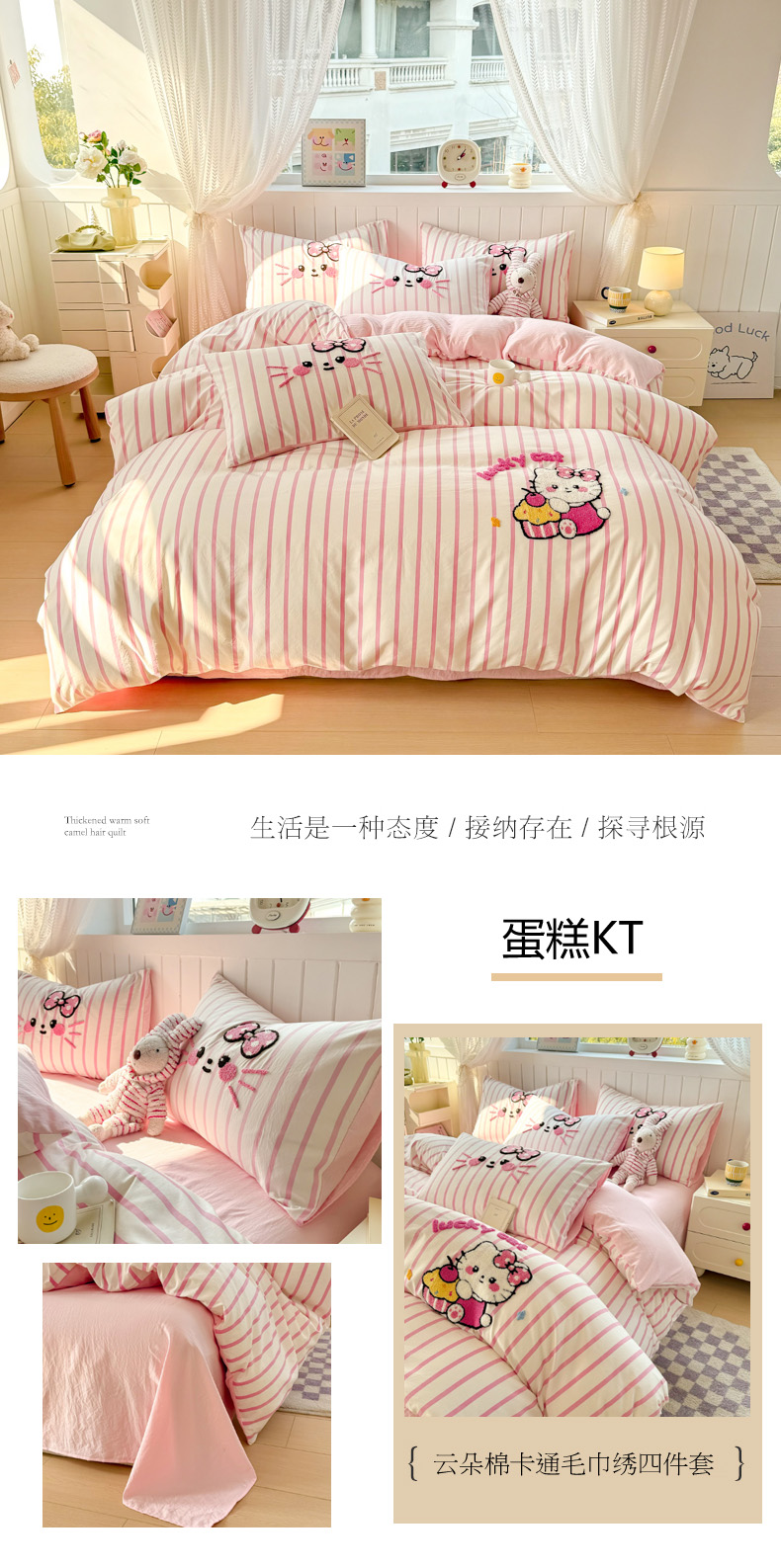 当前位置: 91家纺网 > 商品网购 > 床品套件 > 四件套 > 上尚居 2025新款云朵棉卡通毛巾绣四件套 蛋糕KT