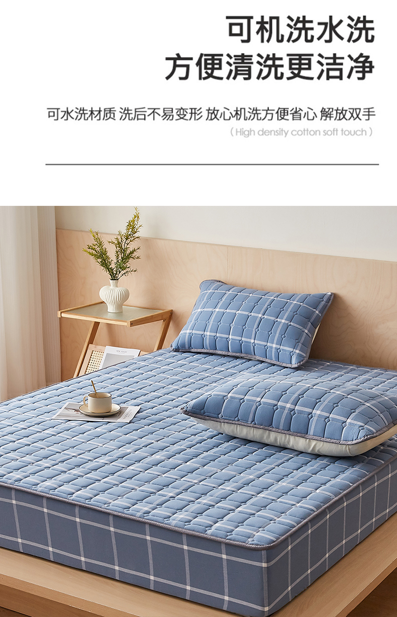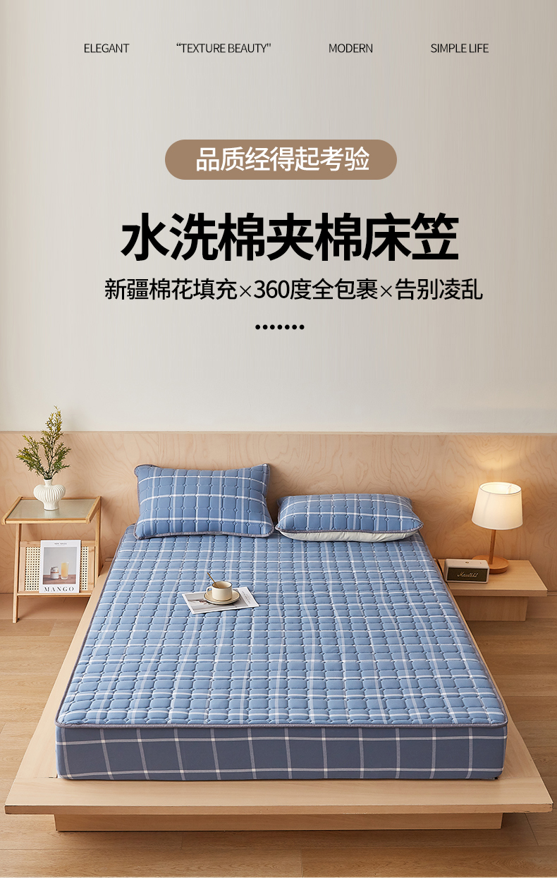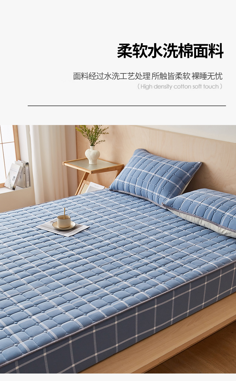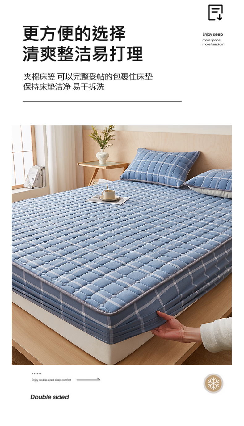 • 91家纺网 家纺一手货源 找家纺 暖季家纺 2025新款水洗棉夹棉床笠无印风棉花款 棉花床笠兰灰中格