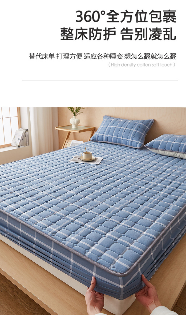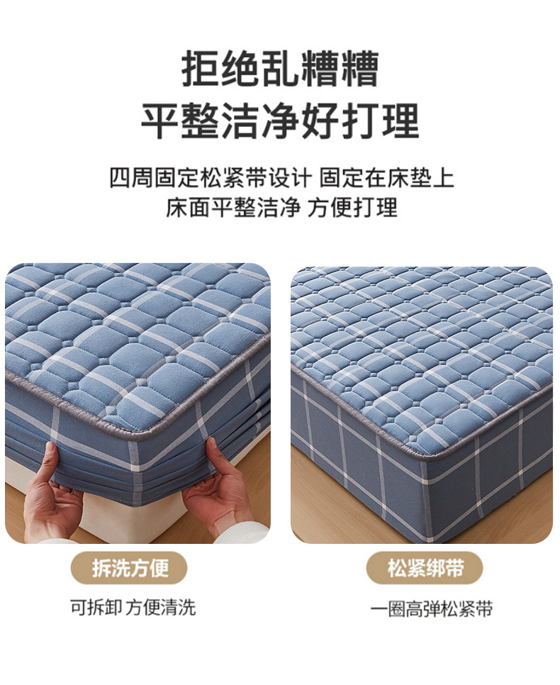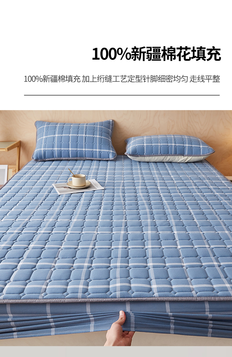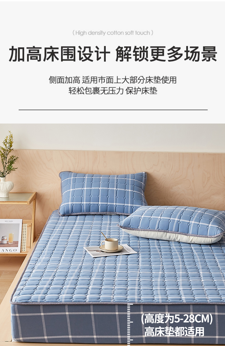 • 91家纺网 家纺一手货源 找家纺 暖季家纺 2025新款水洗棉夹棉床笠无印风棉花款 棉花床笠兰灰中格