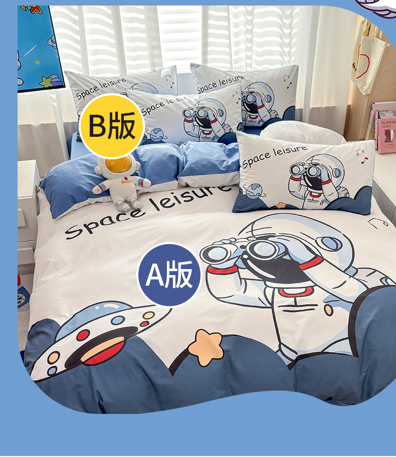 当前位置: 91家纺网 > 商品网购 > 床品套件 > 四件套 > 全棉普通四件套 > 孩子王 2025新款亲肤活性大版纯棉专版太空人卡通学生儿童宿舍四件套系列 艺术宇航员