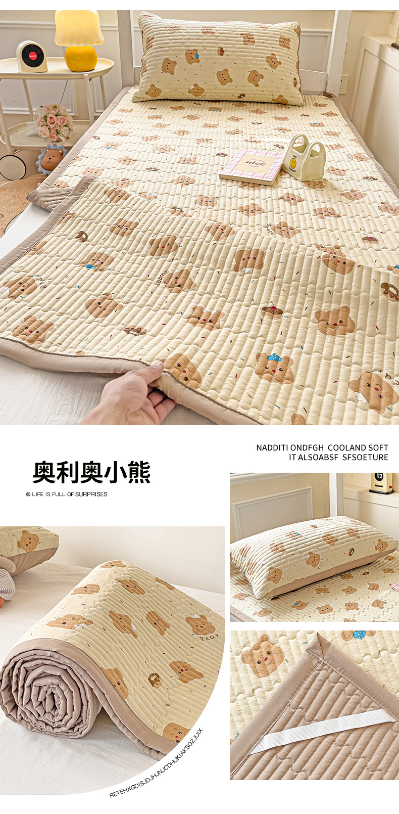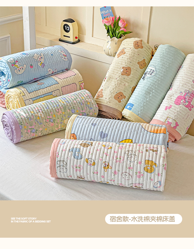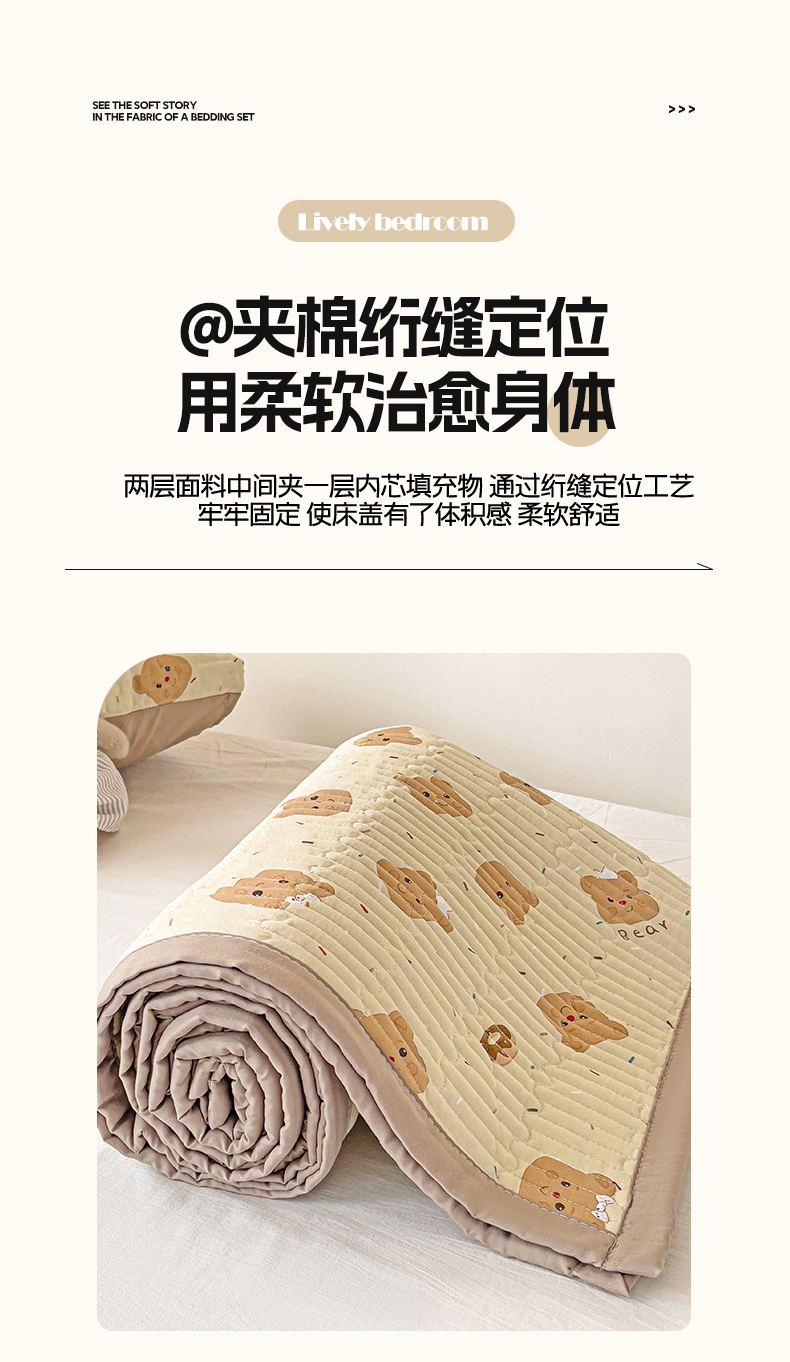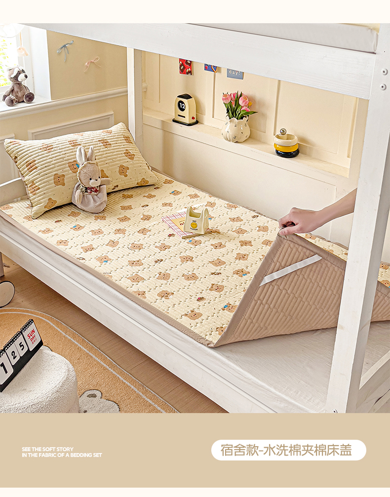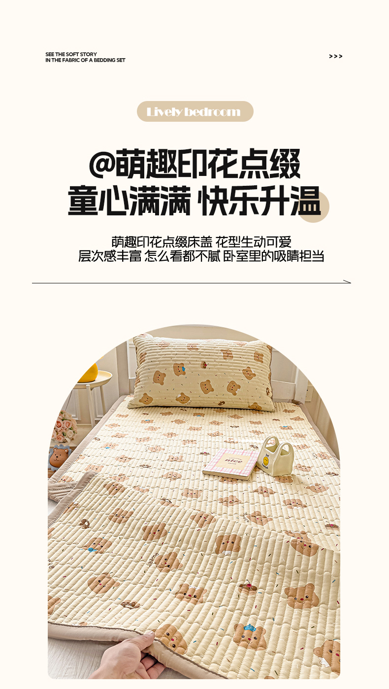 罗亿家纺 2025新款宿舍款-水洗棉夹棉床盖 奥利奥小熊