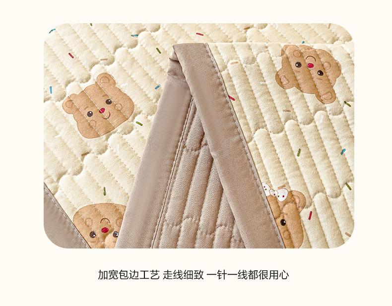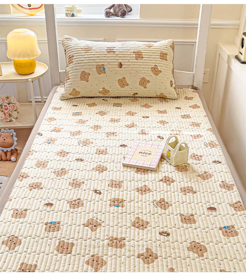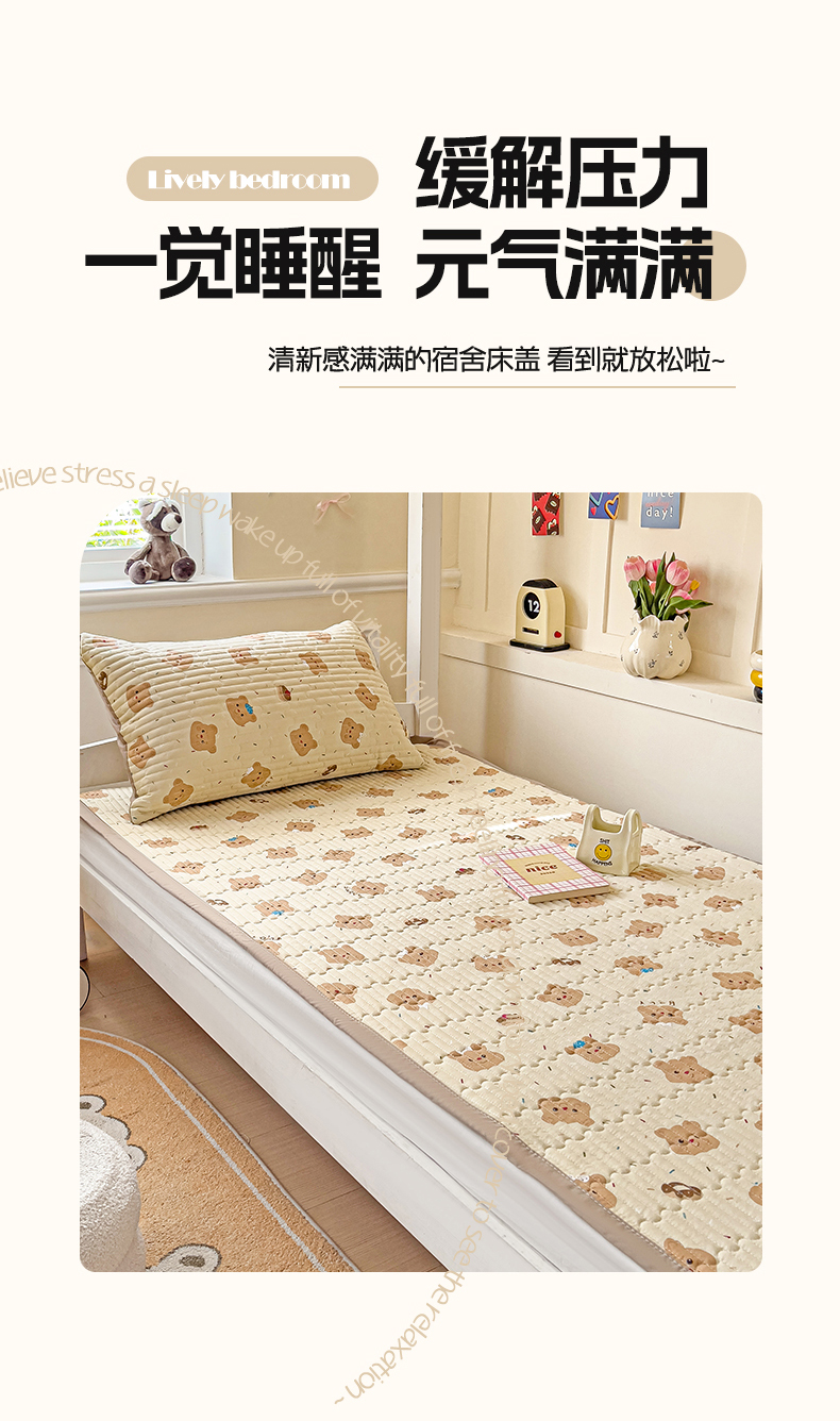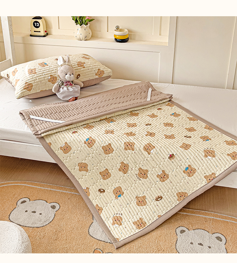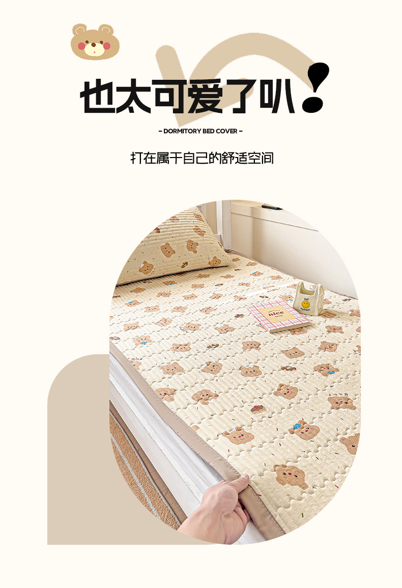 罗亿家纺 2025新款宿舍款-水洗棉夹棉床盖 奥利奥小熊