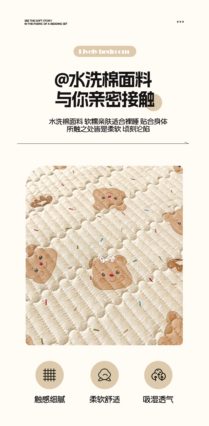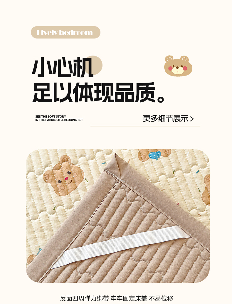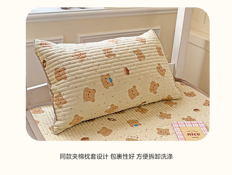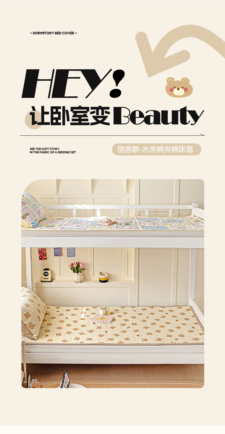 商品名称:罗亿家纺 2025新款宿舍款-水洗棉夹棉床盖 奥利奥小熊