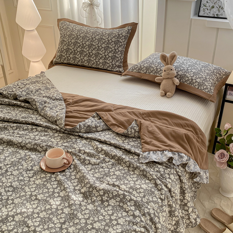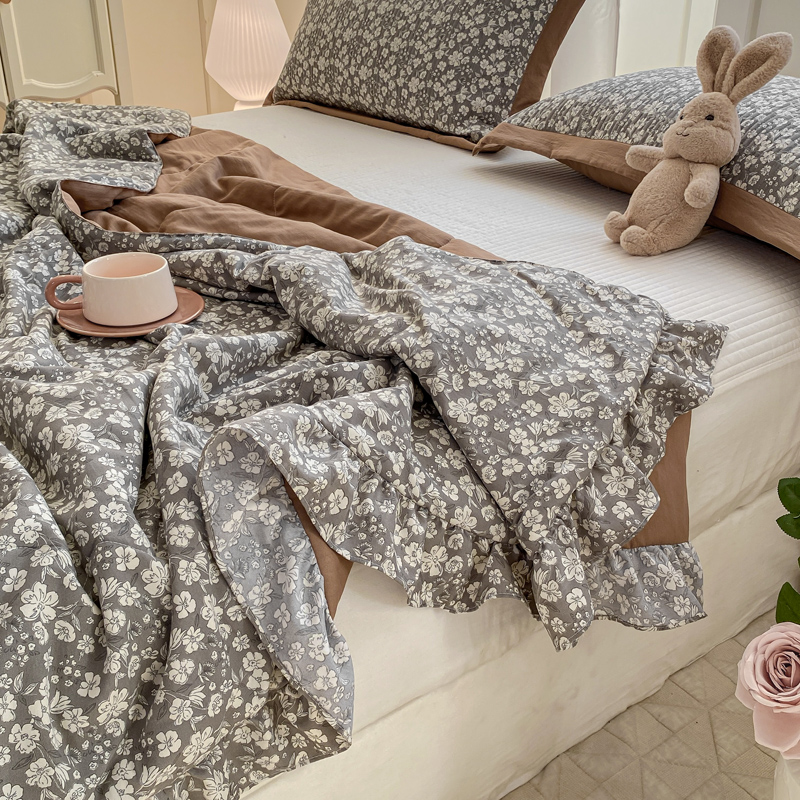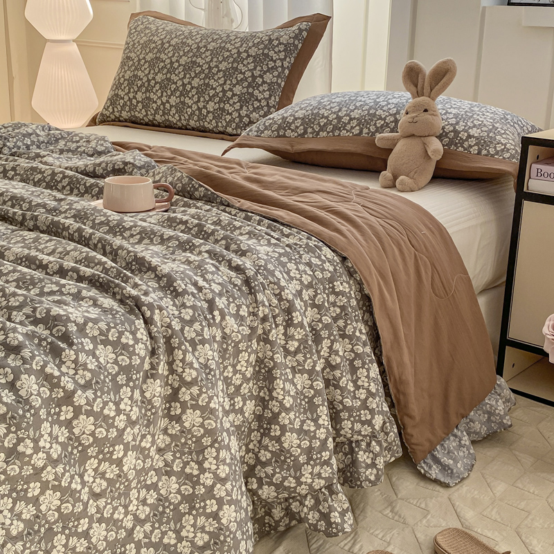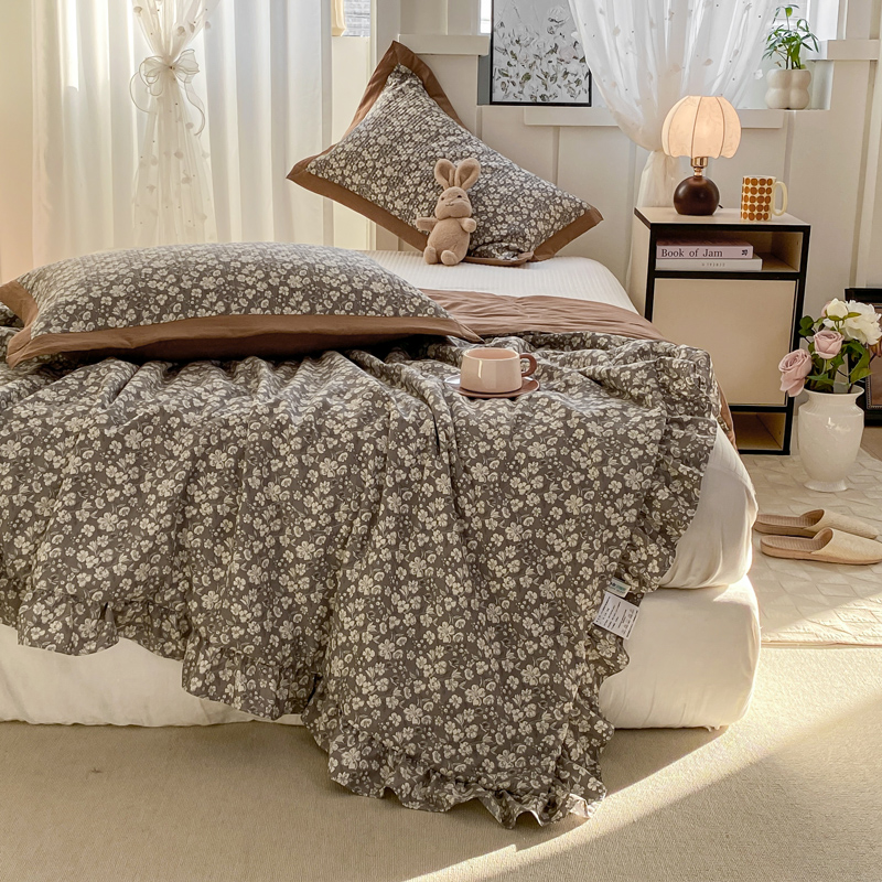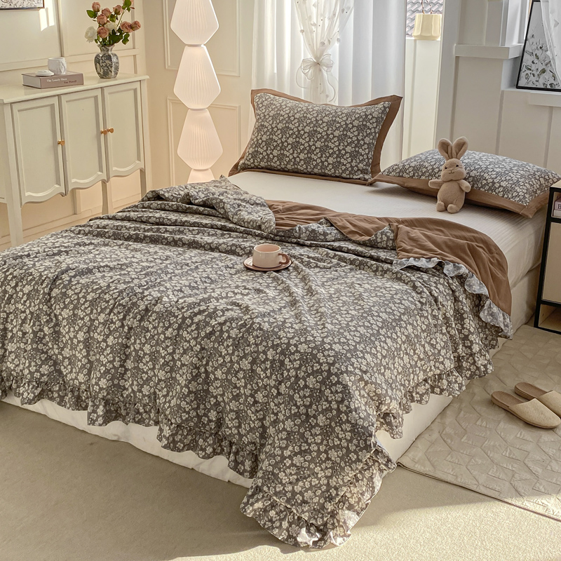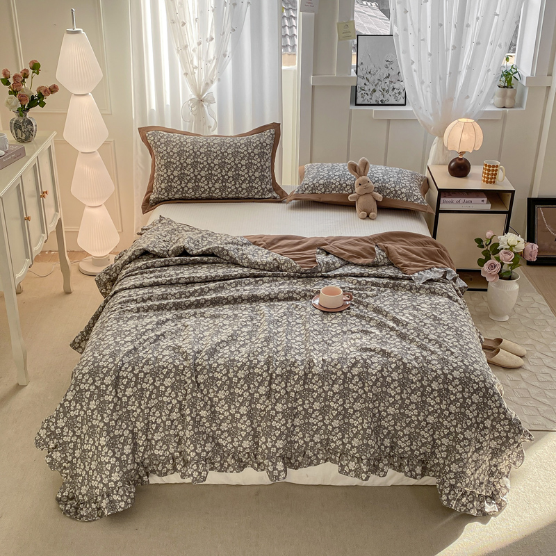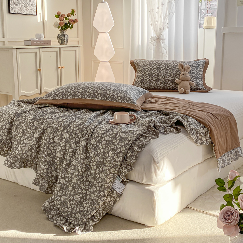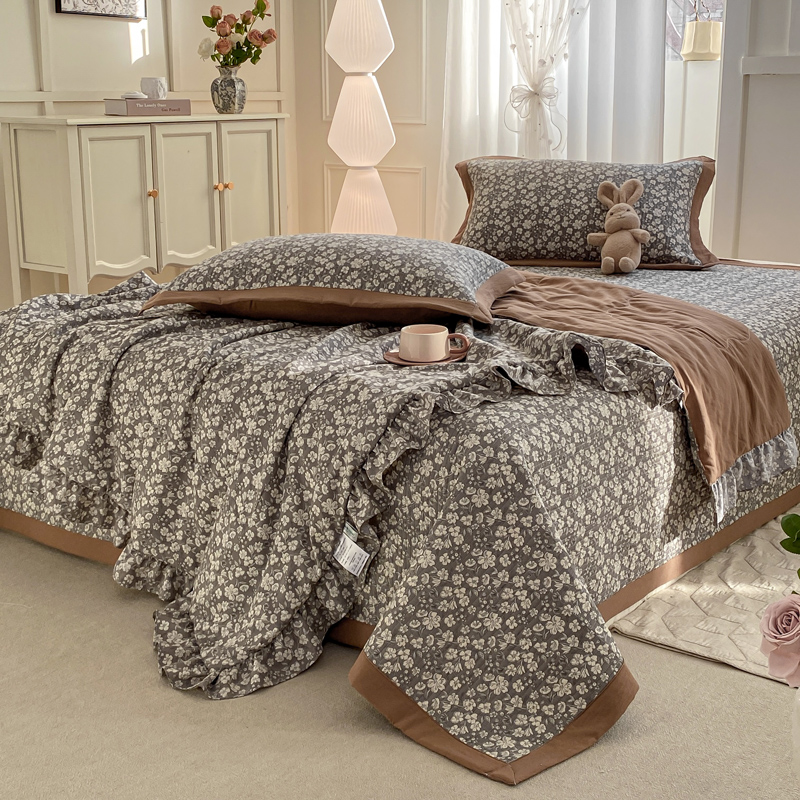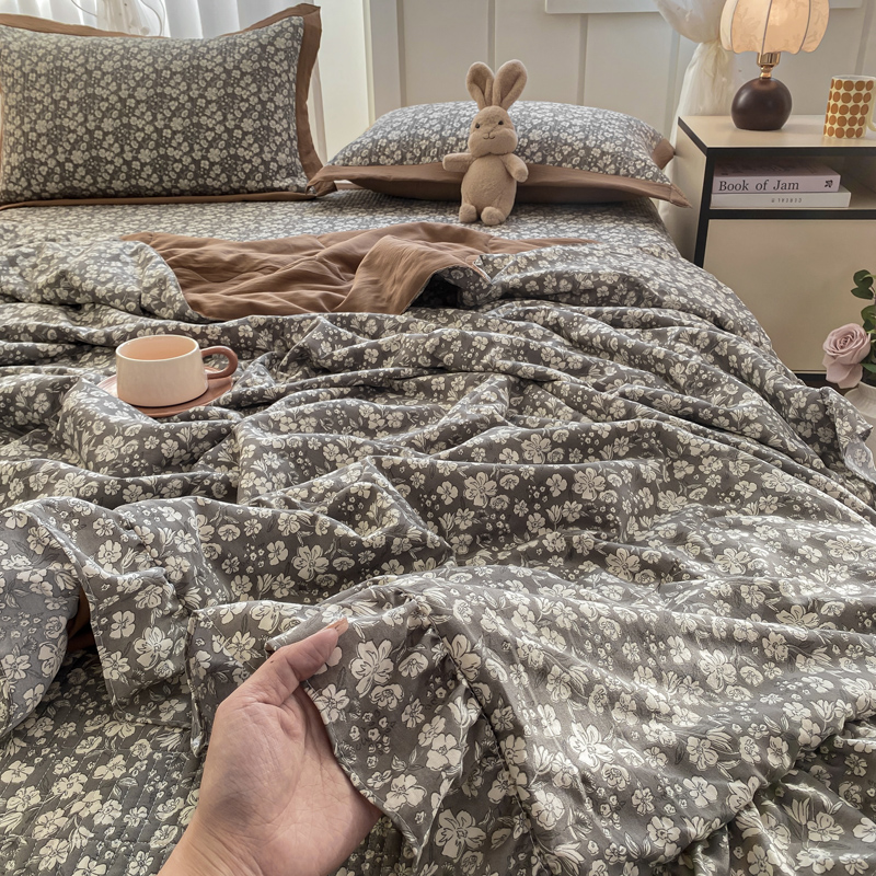 享受云端的柔软,是霎那间的心动~ 面料超软糯、、绗缝设计不易跑棉,贴身柔软又舒适,告别床单的褶皱与烦恼,法式小碎花。享受视觉的美感。沉浸式的入睡,仿佛进了森林氧吧。采用整张超细中空纤维棉 久用不板结 无甲醛,无芳香胺。婴幼儿可用