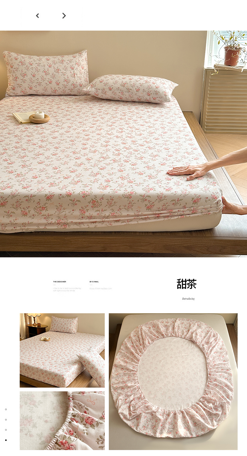 商品名称:寻米 2025新款A类全棉双层纱印花单床笠 甜茶