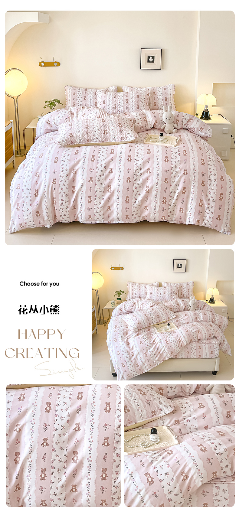 商品名称:禧缘家纺 2025新款全棉小清新印花单被套 花丛小熊