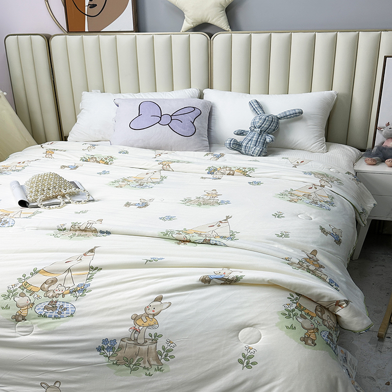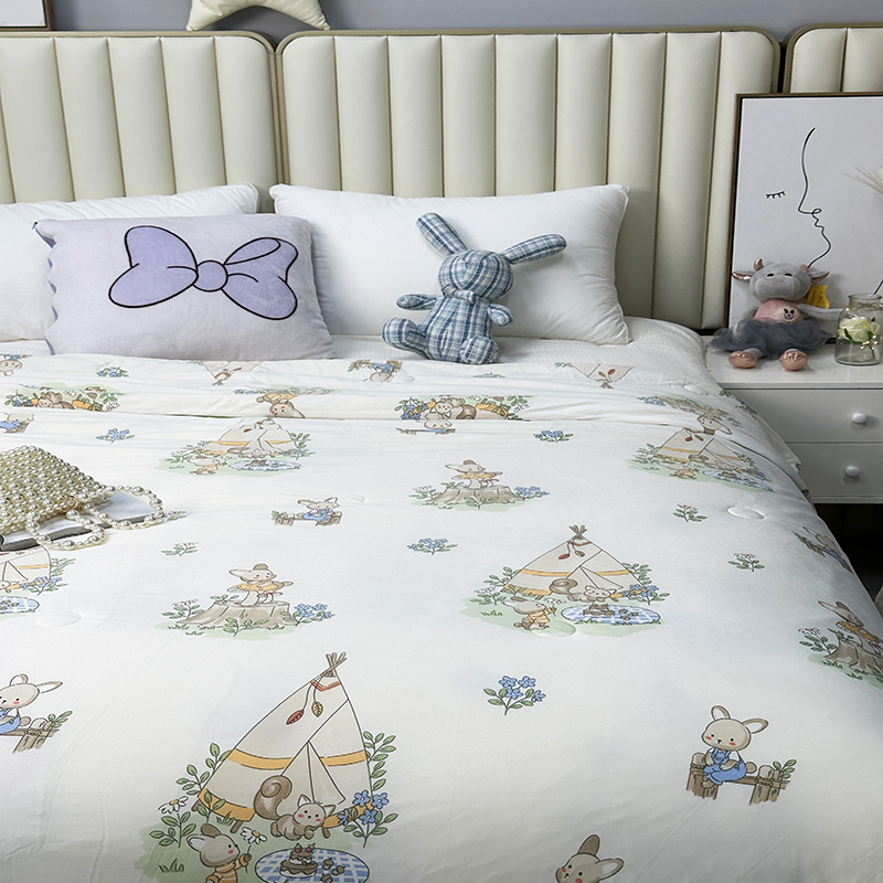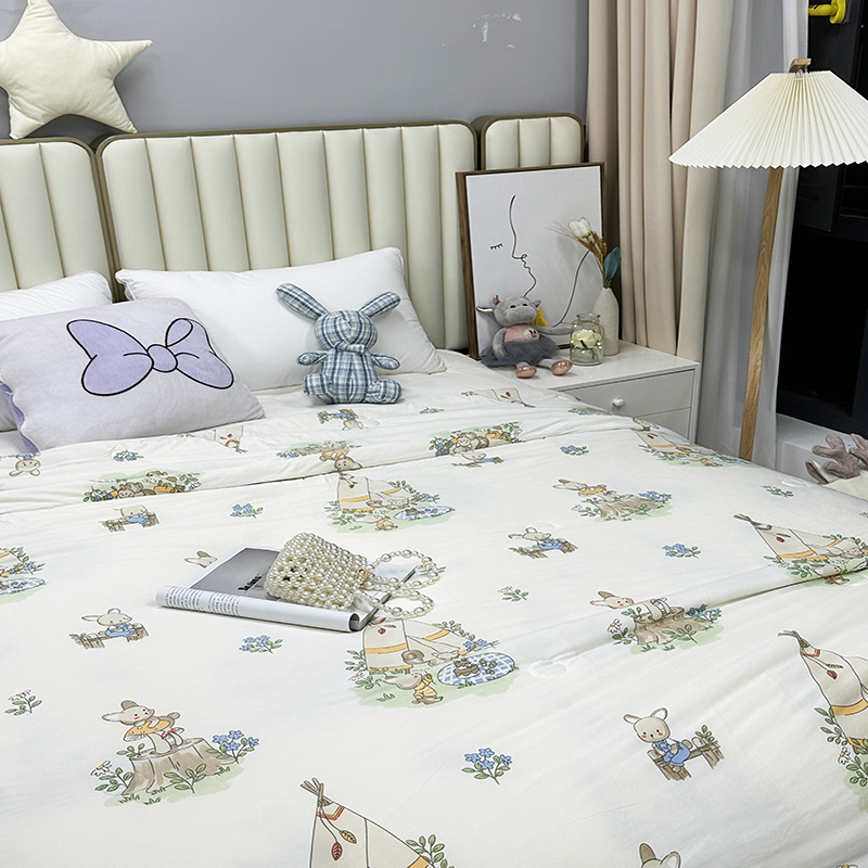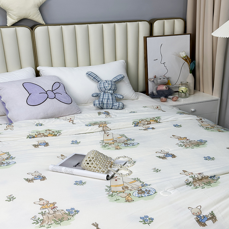 被子 > 夏被 > (自己工厂有网销大热款 网销帮推可合作优惠 长期款不断货)2024新款A类针织棉夏被空调被-风格二 露营兔