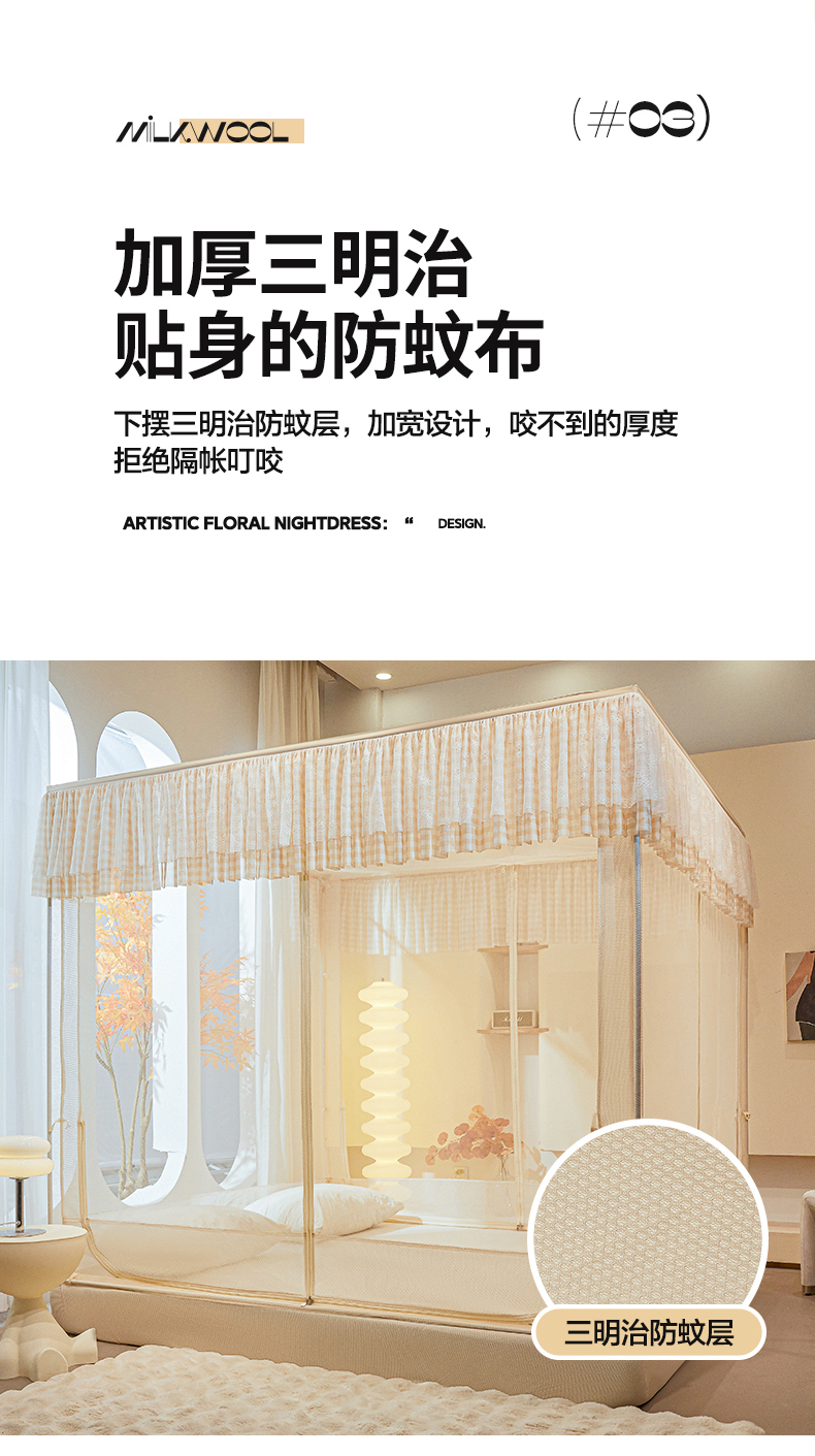 当前位置: 91家纺网 > 商品网购 > 床上用品 > 蚊帐 > 坐床式蚊帐 > 青竹苑2025新款花边款床笠底防摔坐床蚊帐-格格巫 格格巫-米杏