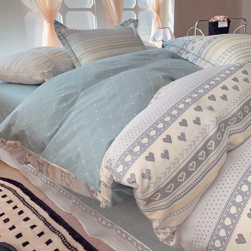 奈萝家纺2025新款全棉 小号三件套 标准四件套 幸福里蓝