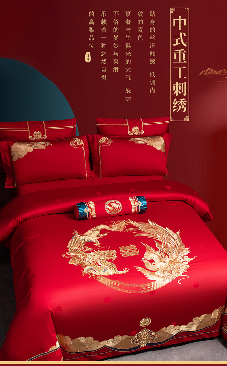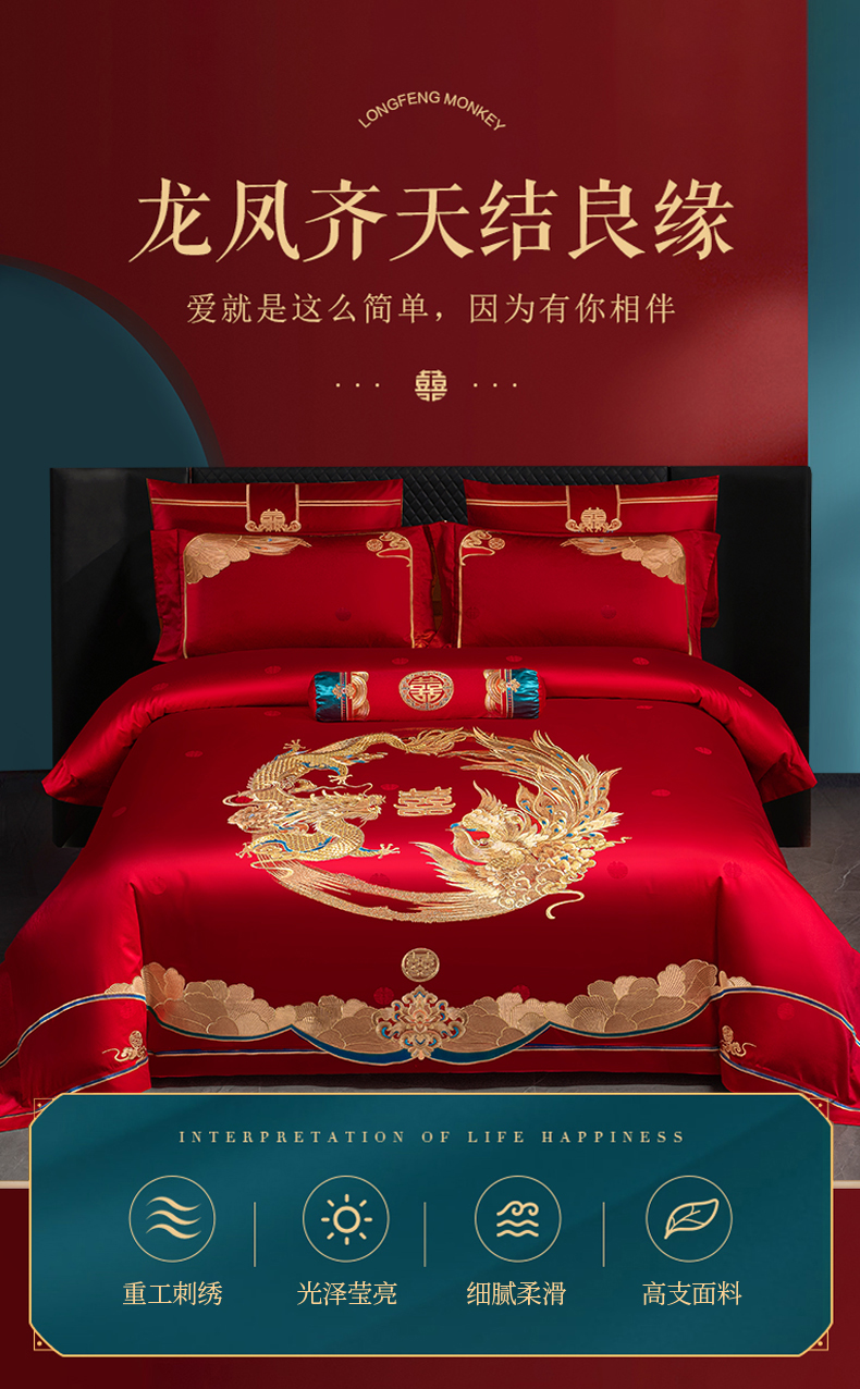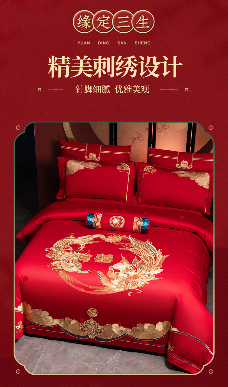 当前位置: 91家纺网 > 商品网购 > 床品套件 > 四件套 > 婚庆四件套 > 美娘阁 2025新款A版长绒棉贡段B版长绒棉贡段刺绣婚庆多件套龙凤盛宴