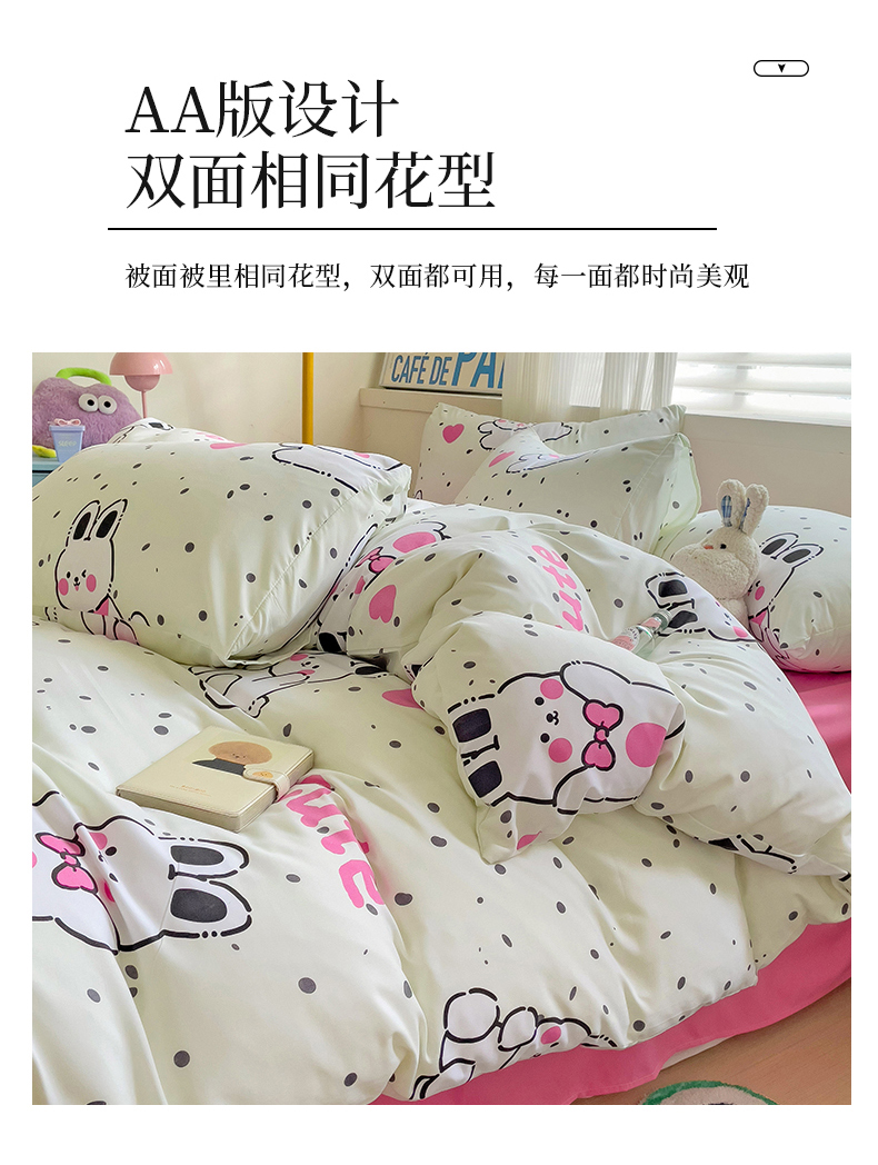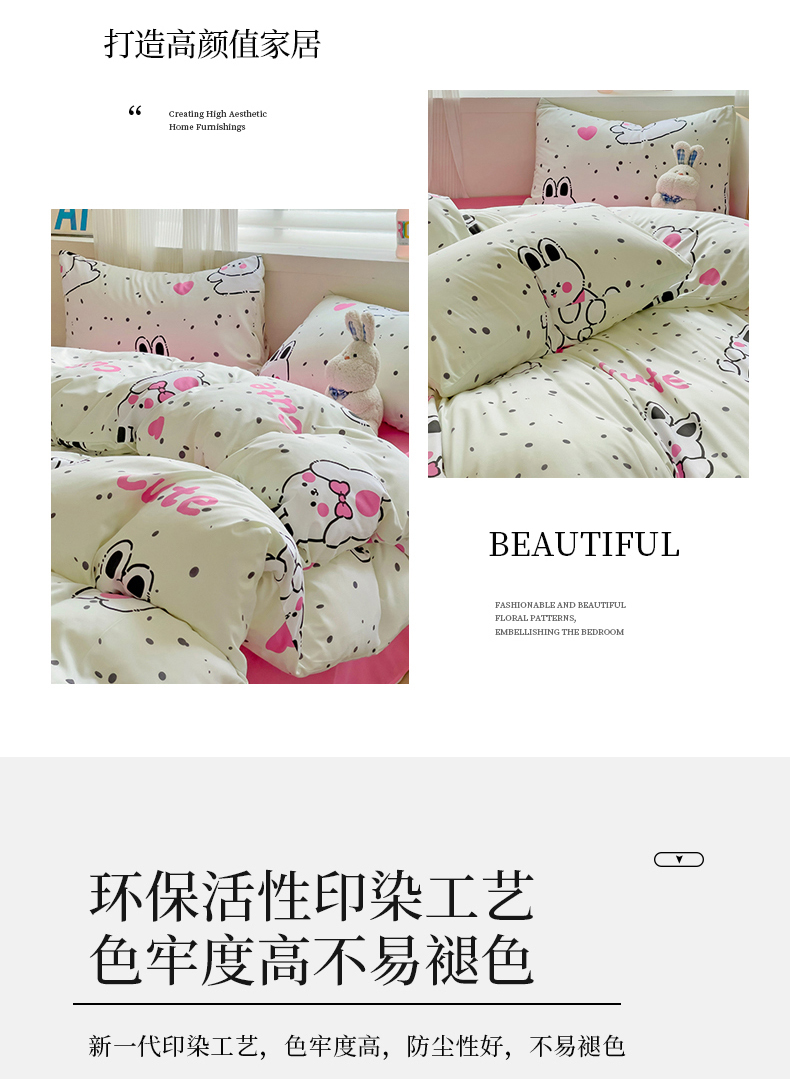 当前位置: 91家纺网 > 商品网购 > 床品套件 > 四件套 > 全棉普通四件套 > 慕晨 2025新款水洗云朵棉四件套 甜心小兔