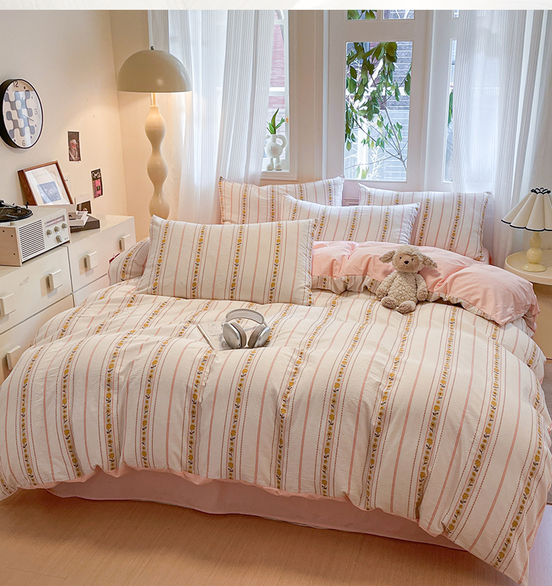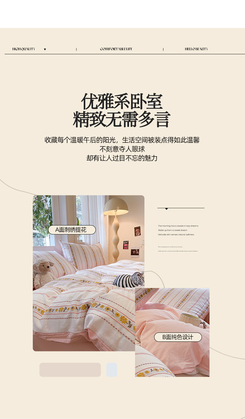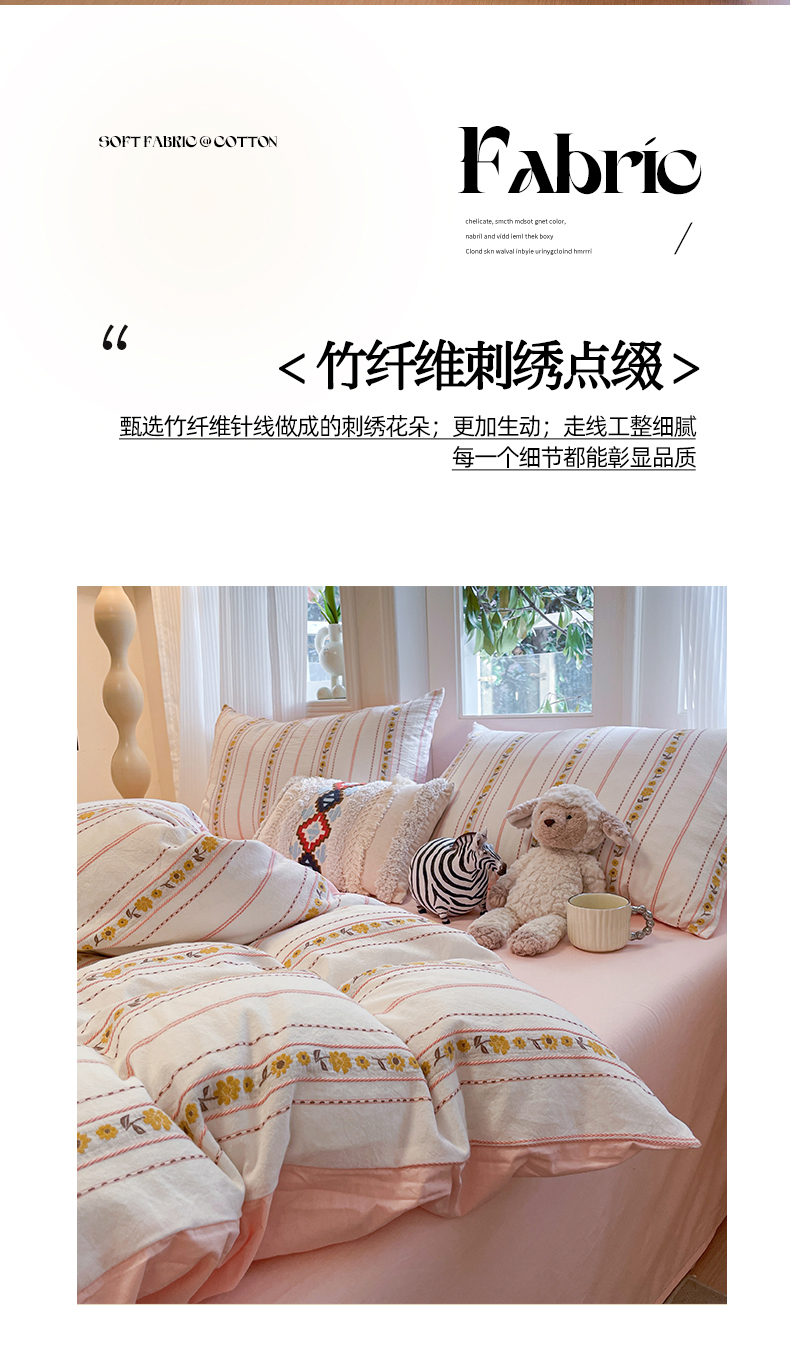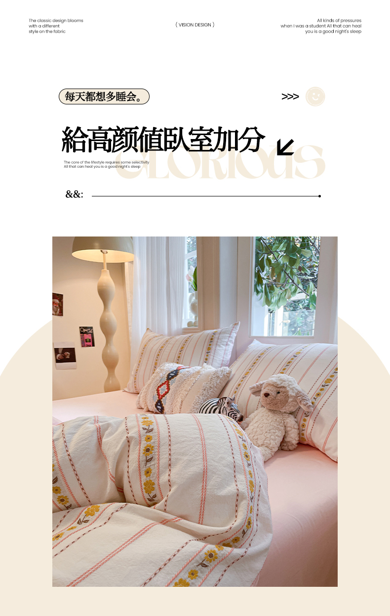 莱茵家居 2025春夏新款A类田园风小碎花色织钩花全棉四件套-沐阳系列 沐阳-浅樱玉+暖黄