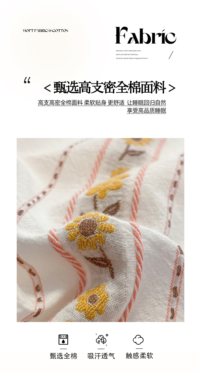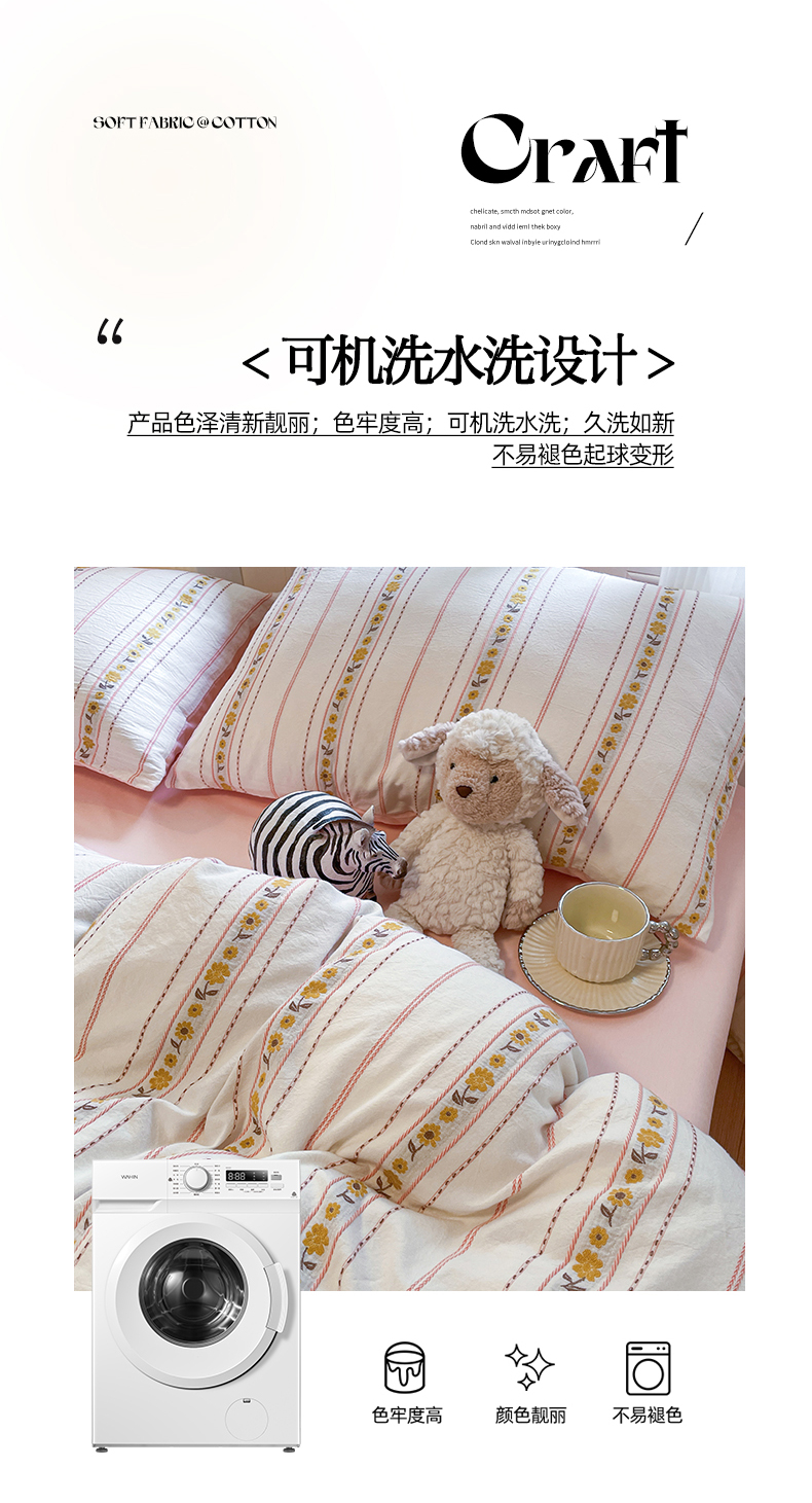 商品名称:莱茵家居 2025春夏新款A类田园风小碎花色织钩花全棉四件套-沐阳系列 沐阳-浅樱玉+暖黄