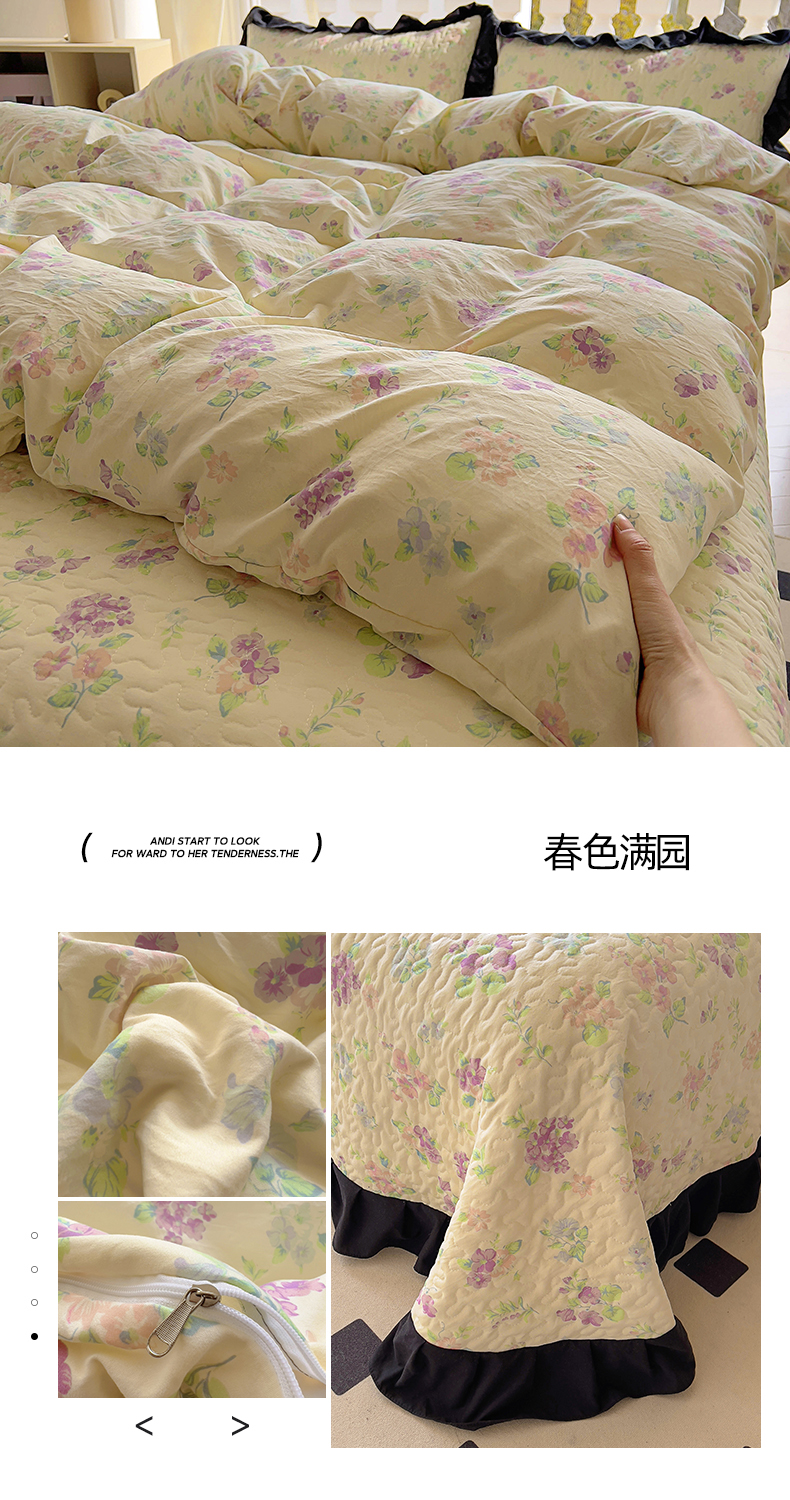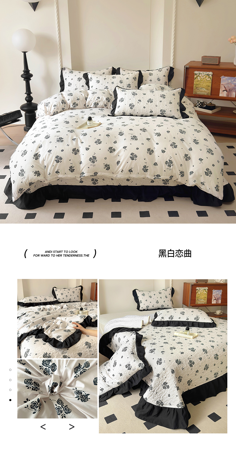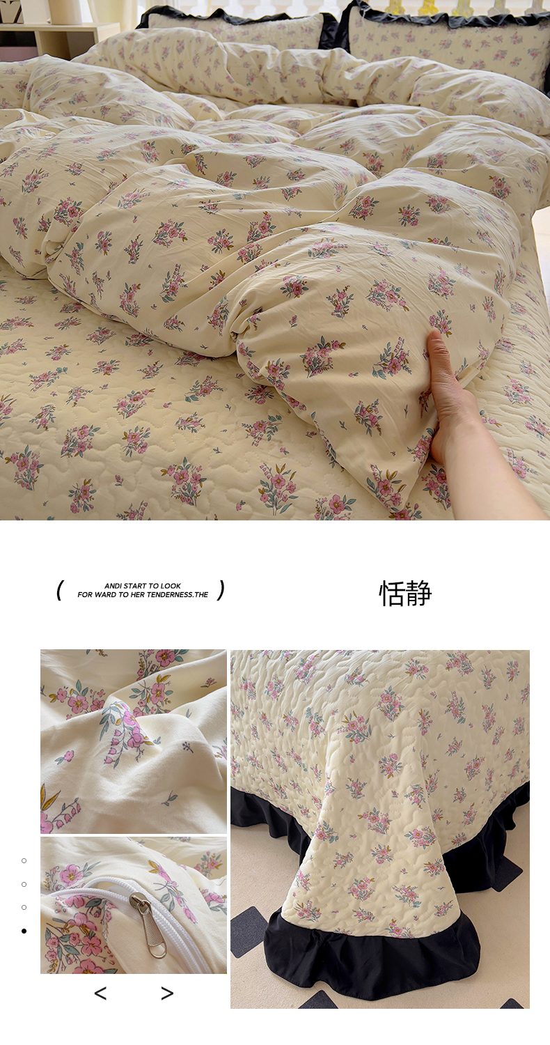 商品名称:(总)韩秀家纺 2025法式赫本风四季跑量款花边夹棉床盖加厚水洗棉泡泡棉糯感印花韩版床盖床盖四件套法式赫本风榻榻米绗缝夹棉床盖纯色印花