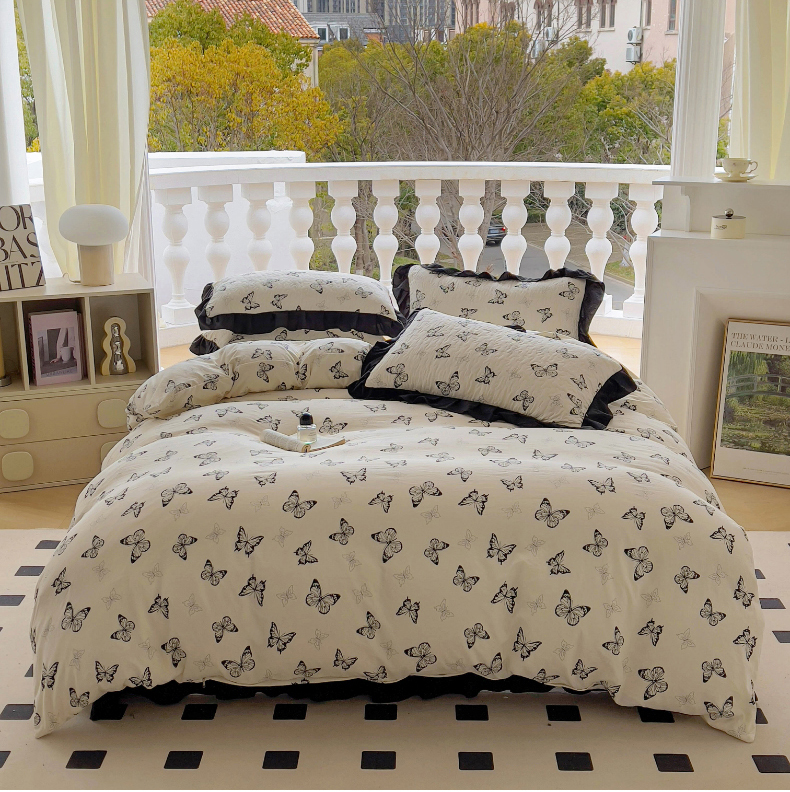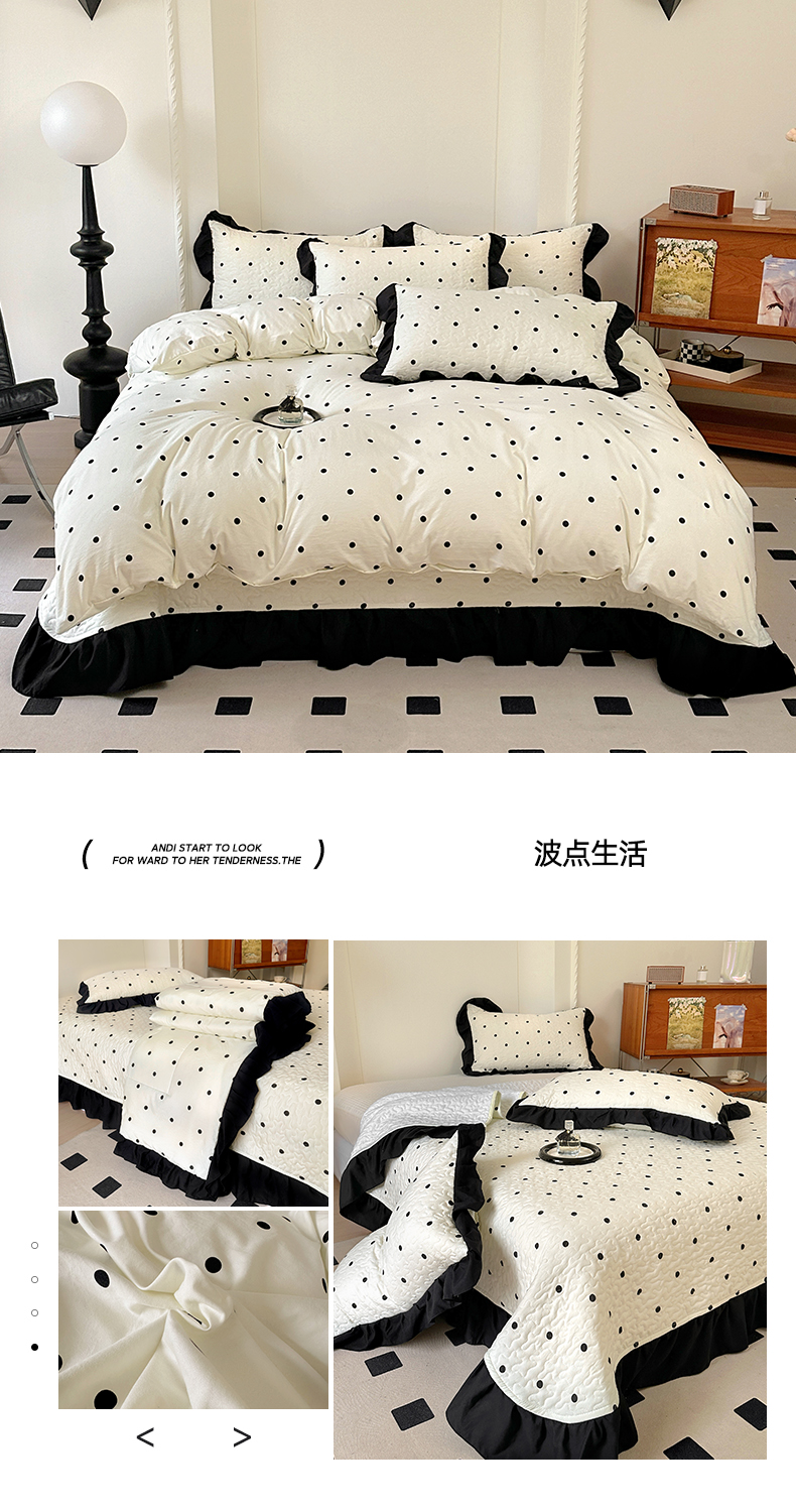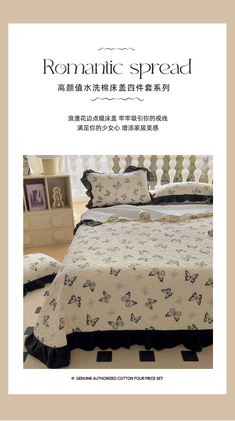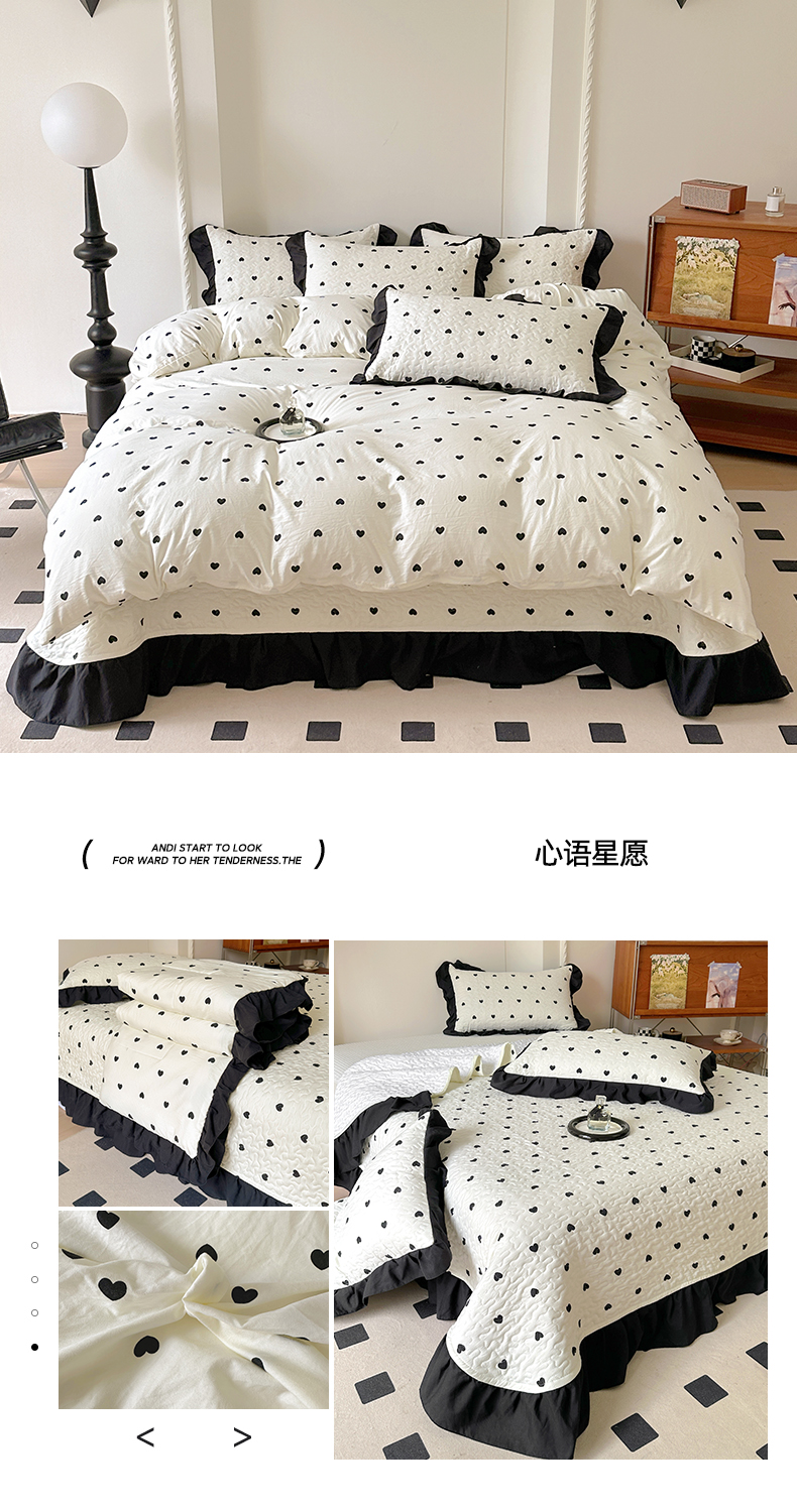 商品名称:(总)韩秀家纺 2025法式赫本风四季跑量款花边夹棉床盖加厚水洗棉泡泡棉糯感印花韩版床盖床盖四件套法式赫本风榻榻米绗缝夹棉床盖纯色印花