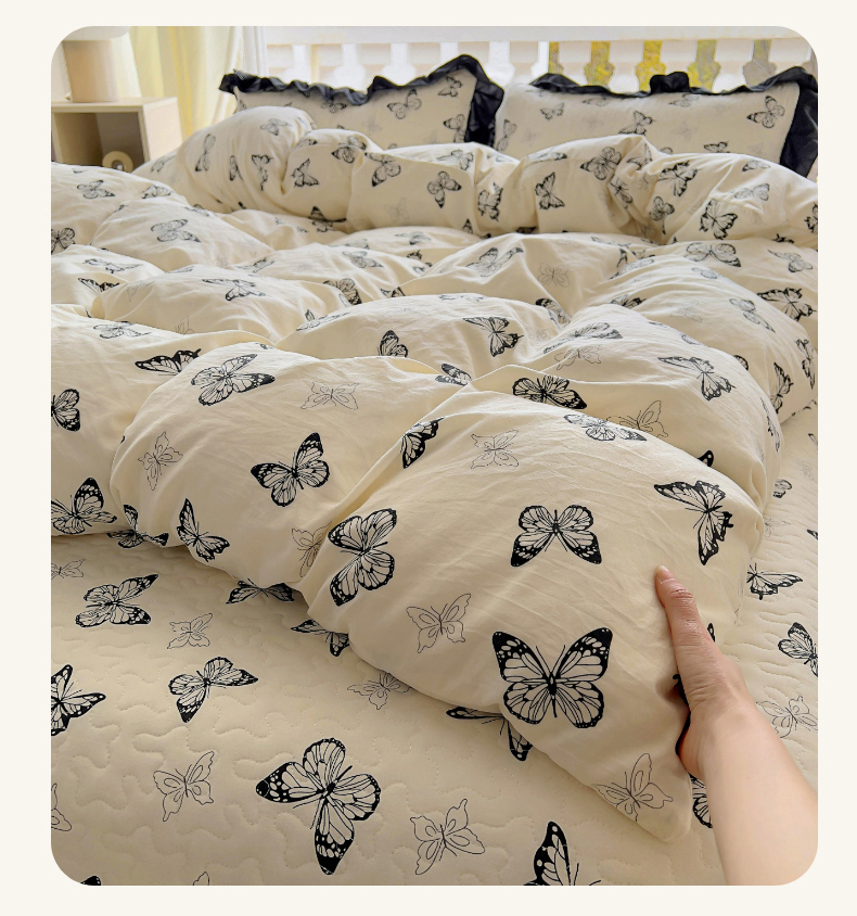 (总)韩秀家纺 2025法式赫本风四季跑量款花边夹棉床盖加厚水洗棉泡泡棉糯感印花韩版床盖床盖四件套法式赫本风榻榻米绗缝夹棉床盖纯色印花
