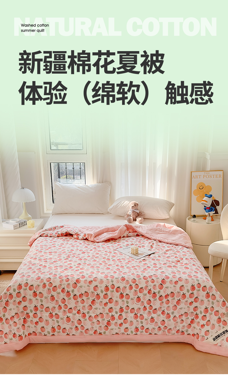 商品名称: 2025新款A类新疆棉花夏凉被加宽包边水洗棉卡通印花吸湿透气棉花夏被空调被 凌香 草莓