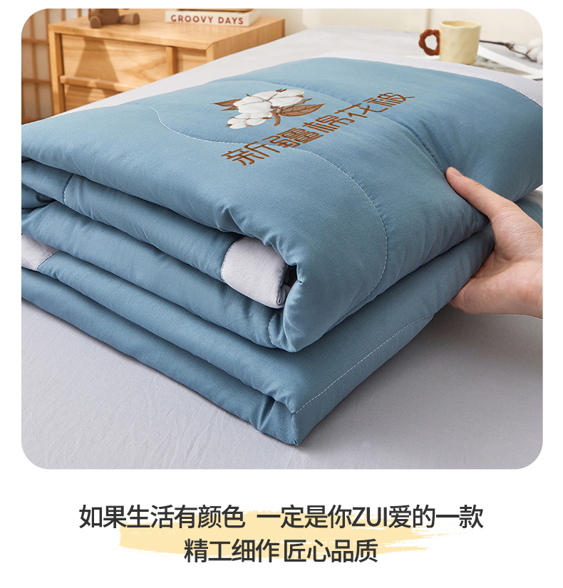 商品名称: 2025新款A类100%新疆棉花夏凉被纯棉全棉填充毛巾绣绣花纯色双拼原棉空调被夏被 云暖-海岛蓝