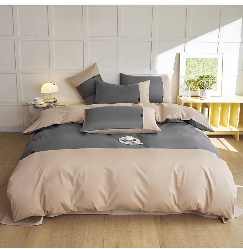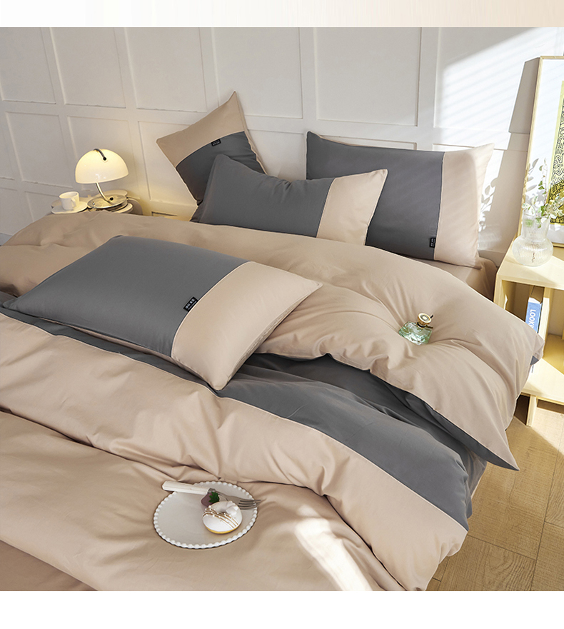 慕希2025新款13372全棉拼色正拼四件套系列-简尚 简尚-棕灰