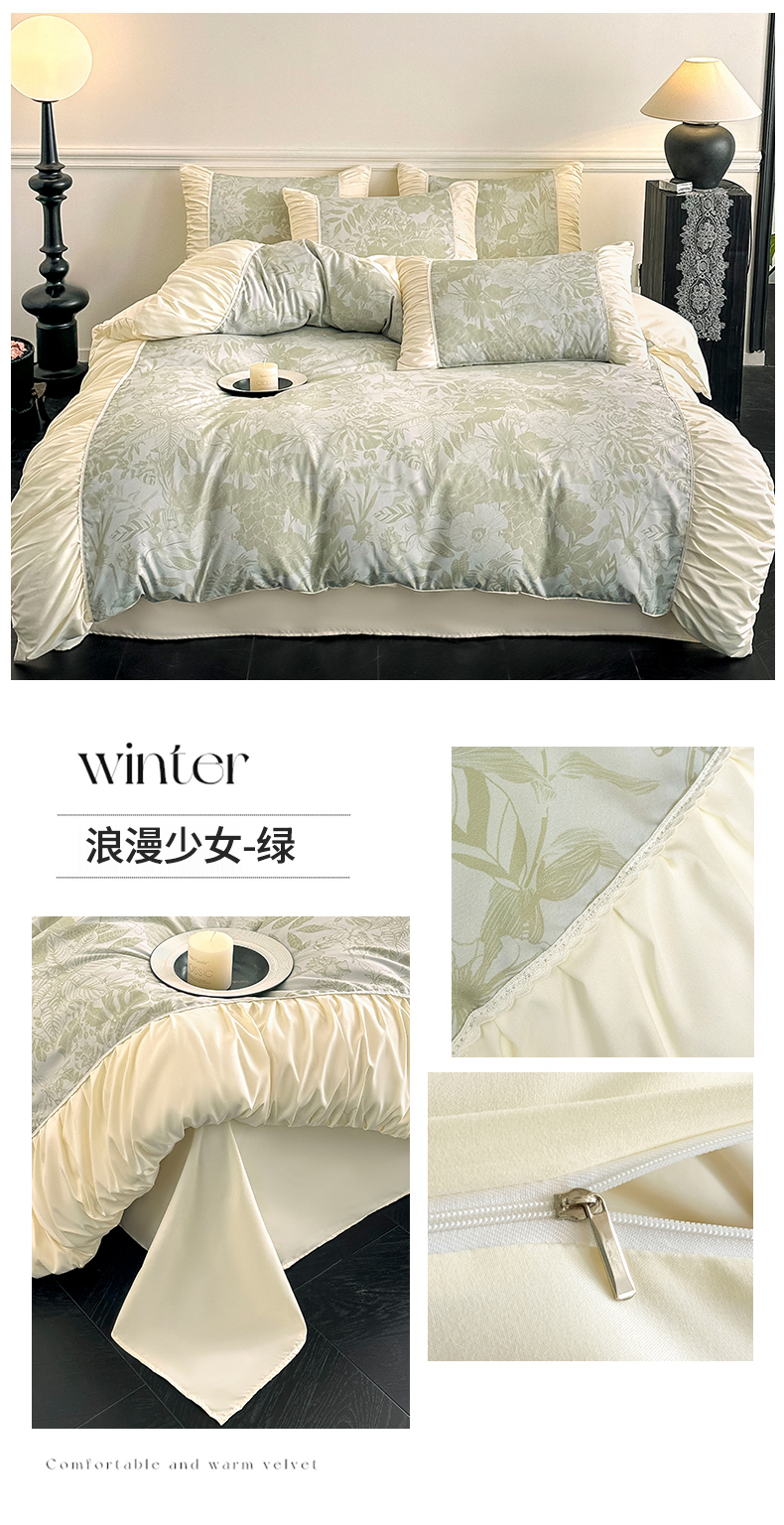 当前位置: 91家纺网 > 商品网购 > 床品套件 > 四件套 > 普通磨毛四件套 > (总)一左一右2025春夏新款法式少女风数码印花褶皱花边水洗棉磨毛四件套
