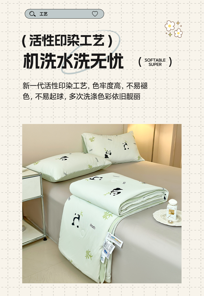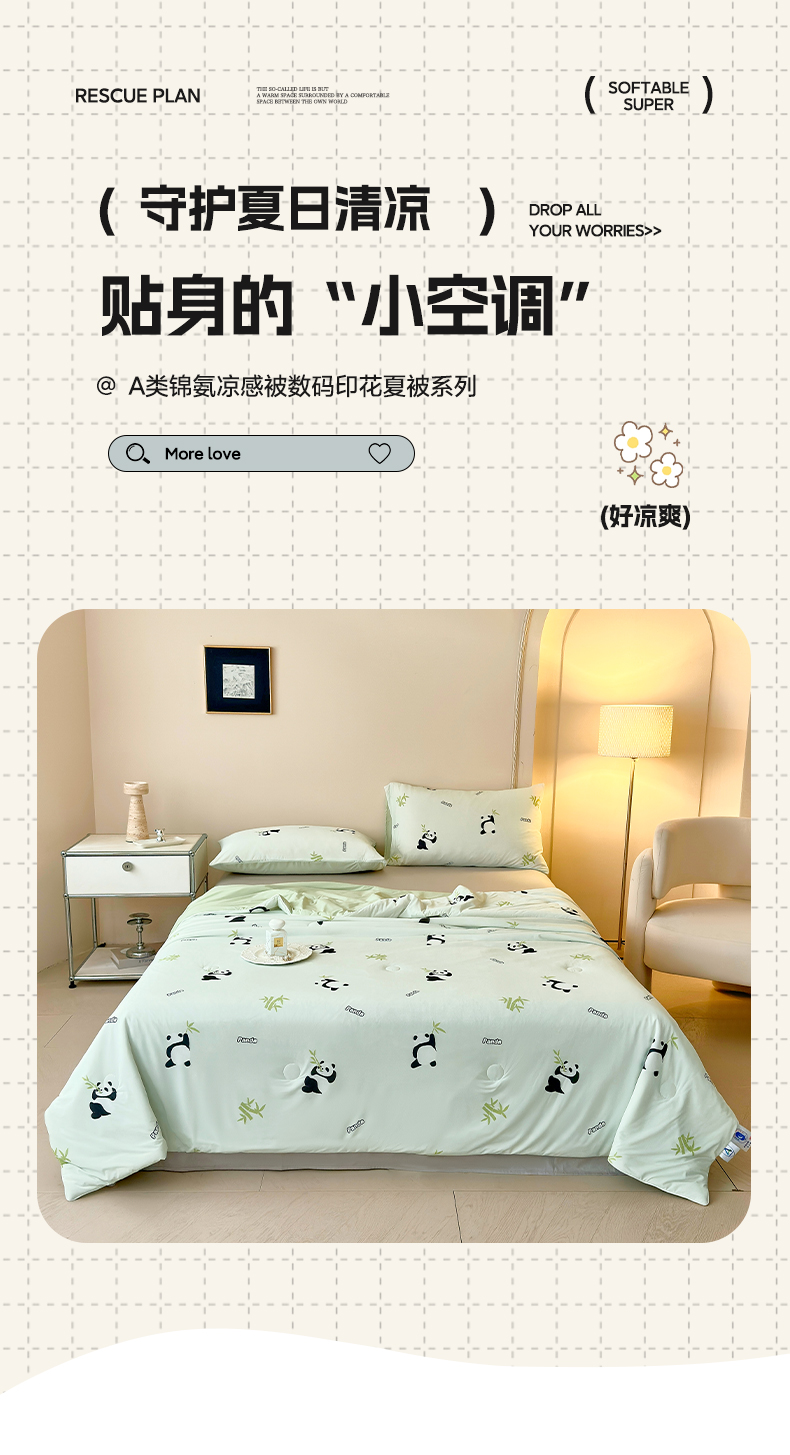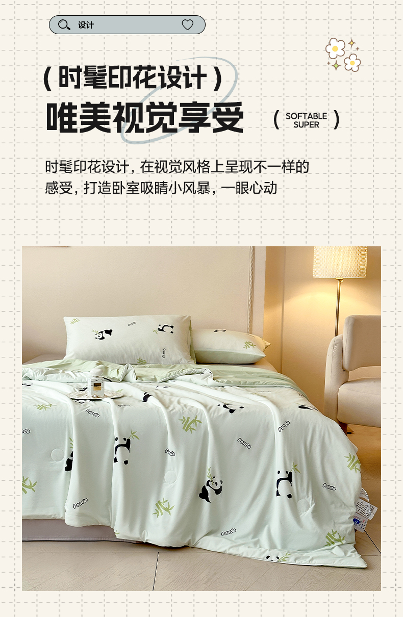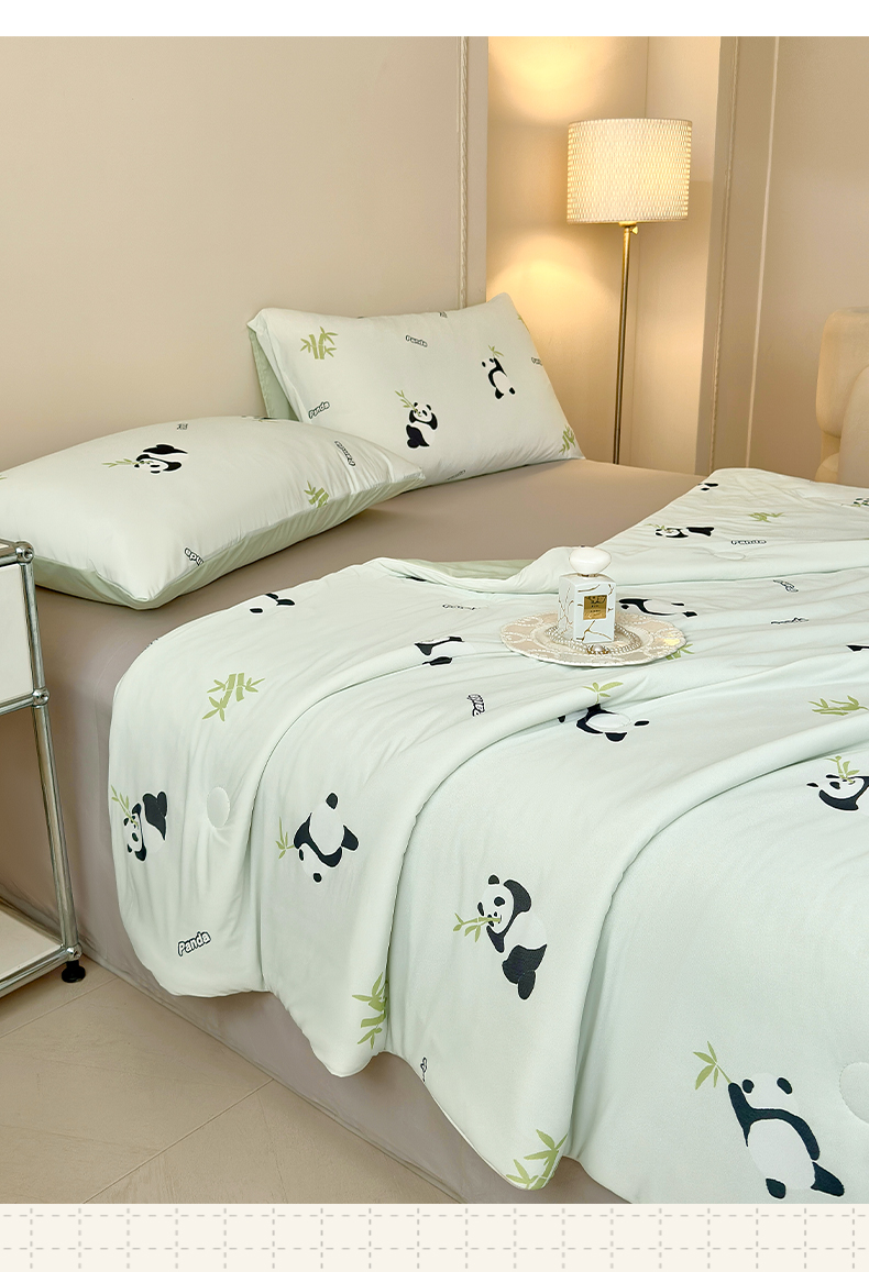 商品名称:莱登卡奴 2025新款A类锦氨凉感被数码印花夏被 竹林乐园青绿