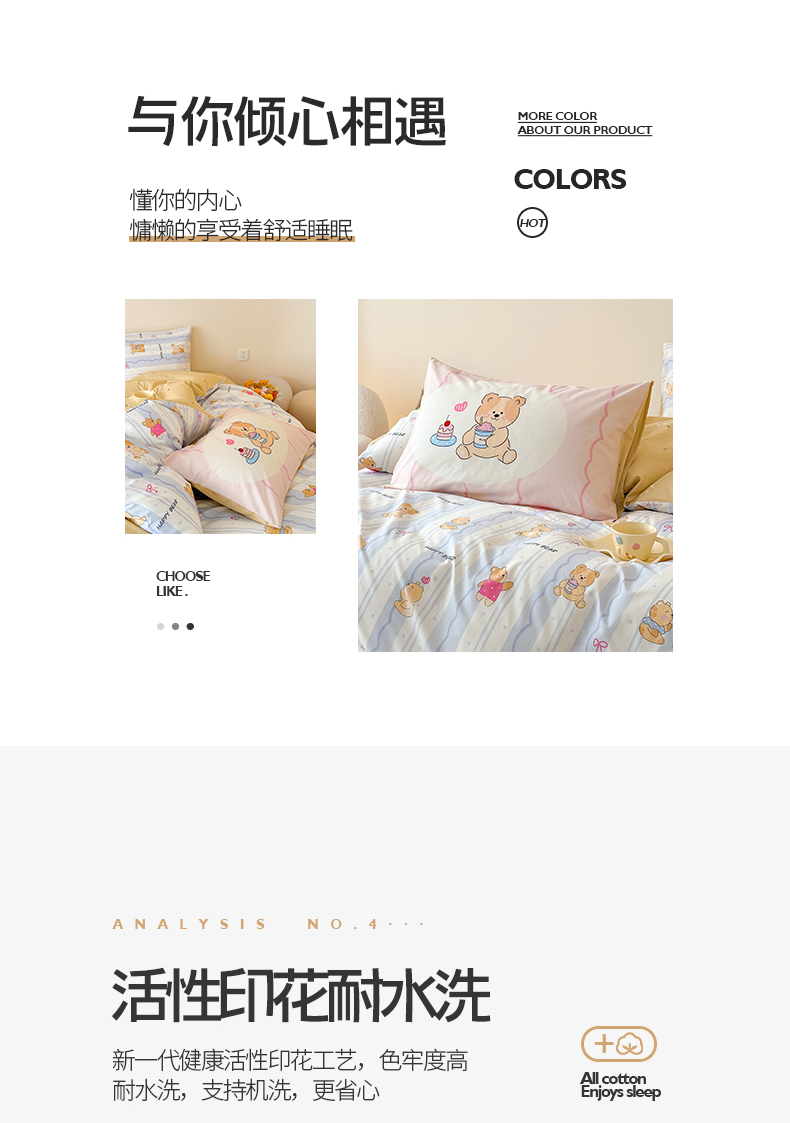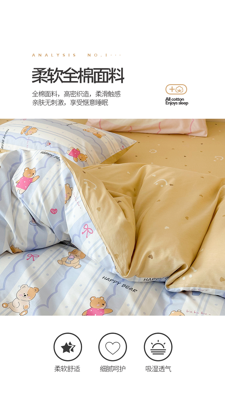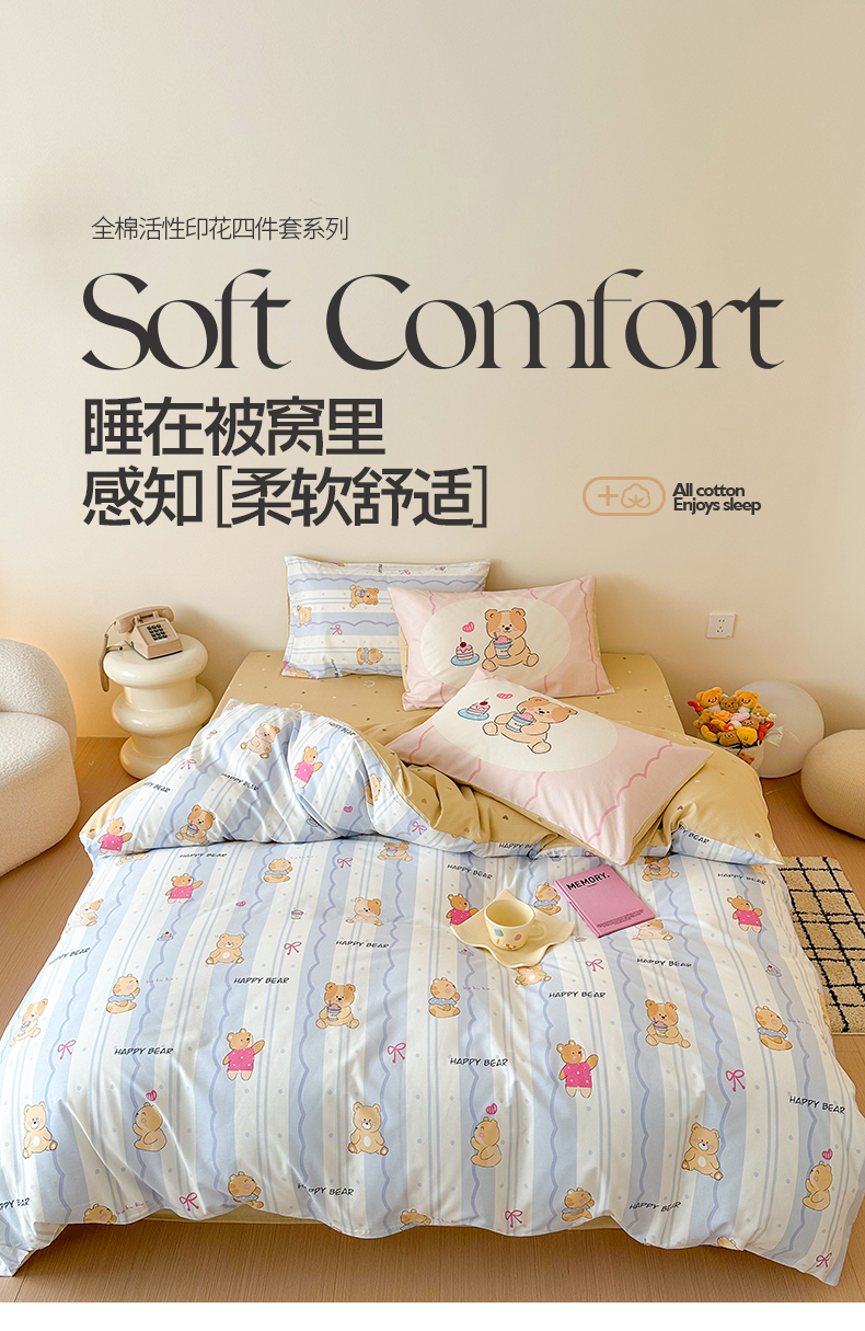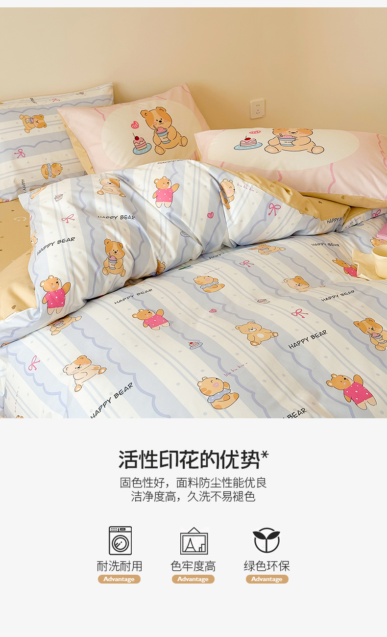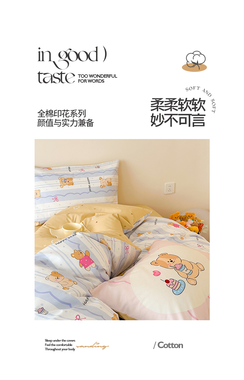 商品名称:典曼家纺 2025新款13372印花小清新四件套 冰淇淋小熊
