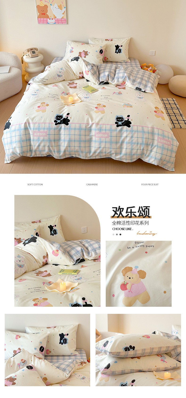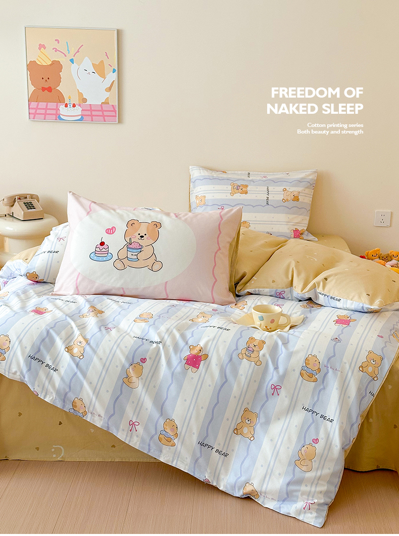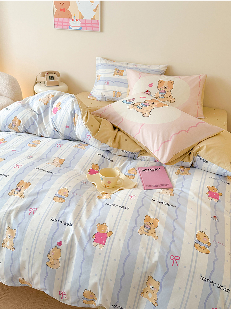 典曼家纺 2025新款13372印花小清新四件套 冰淇淋小熊