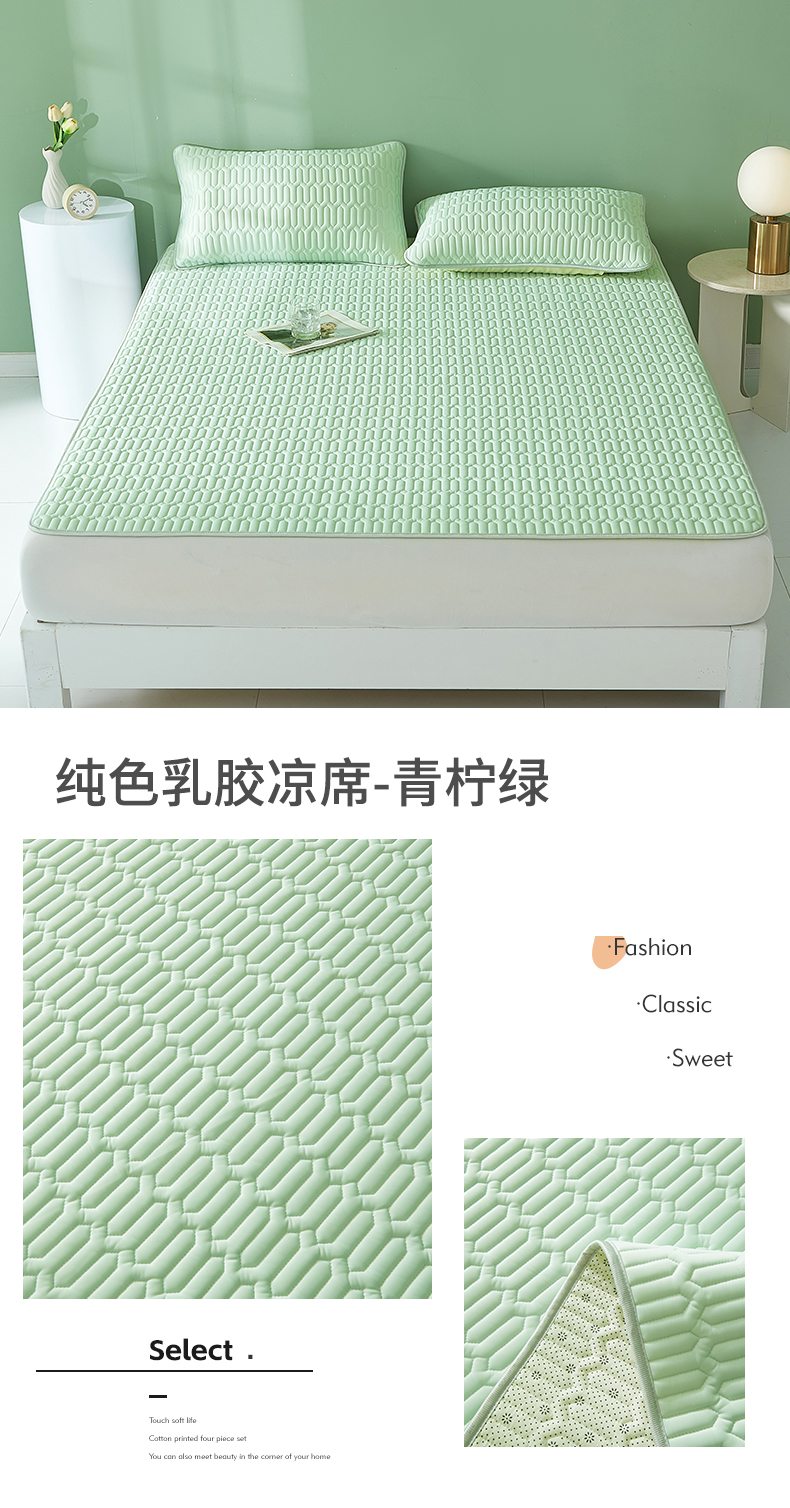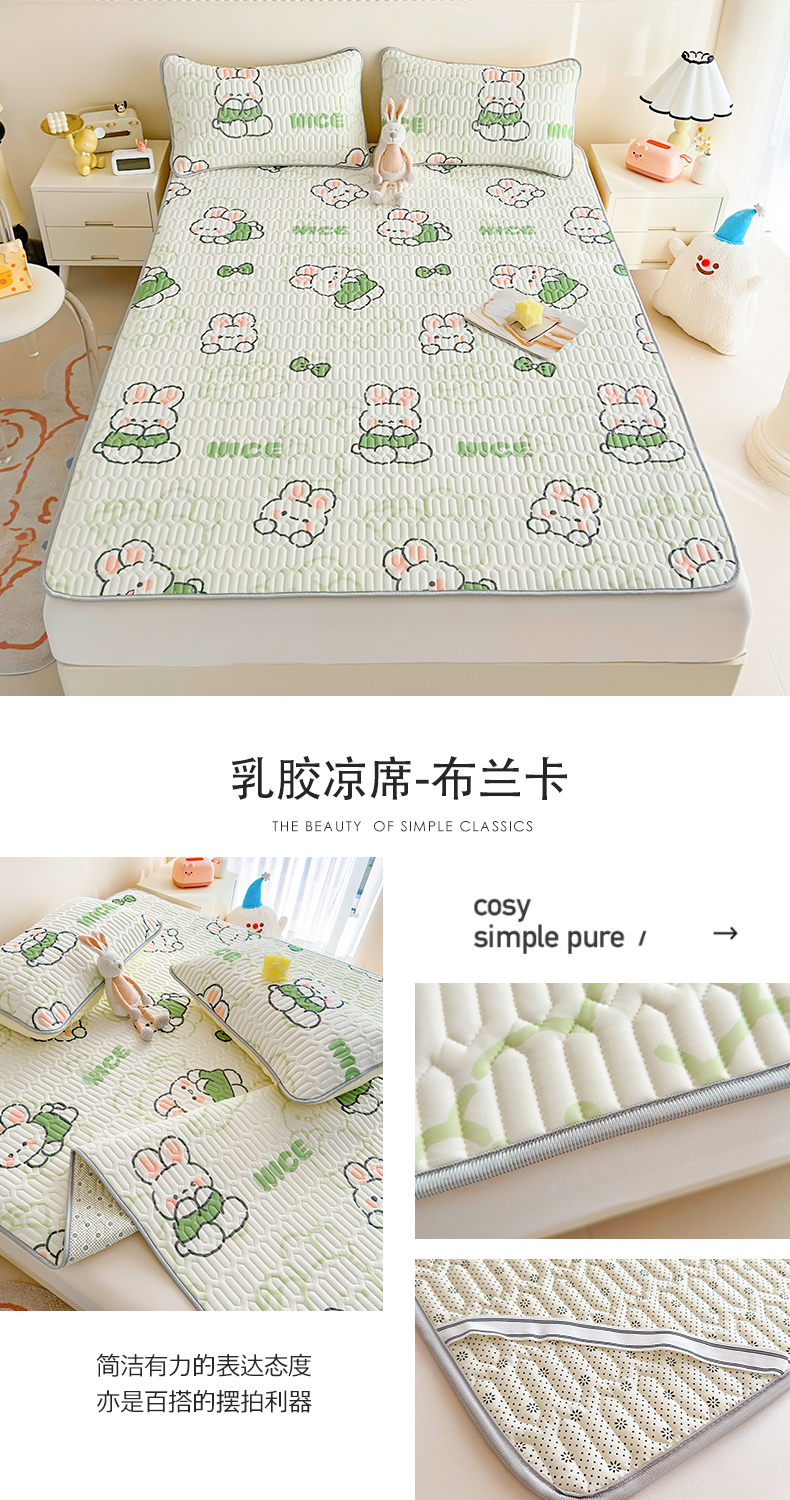 商品名称:雯豆2025夏季新品0.4乳胶凉席平铺款三件套凉感丝小清新印花席梦思床罩 乳胶凉席-小狮子