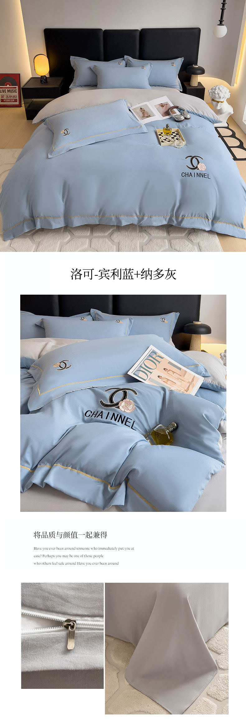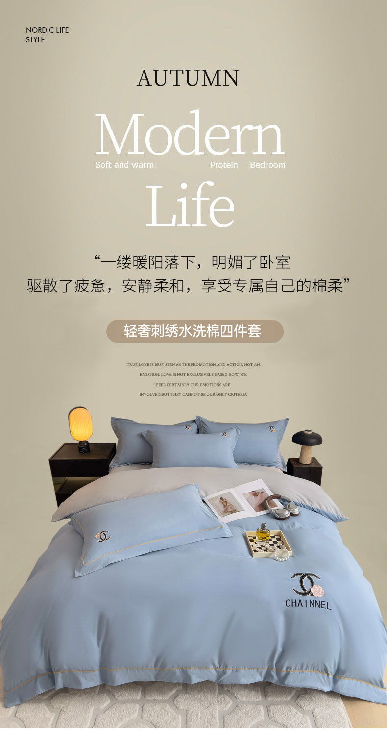 当前位置: 91家纺网 > 商品网购 > 床品套件 > 四件套 > 水洗棉四件套 > 灰鲸 2025新款轻奢洛可刺绣水洗棉套件系列 洛可-宾利蓝+纳多灰