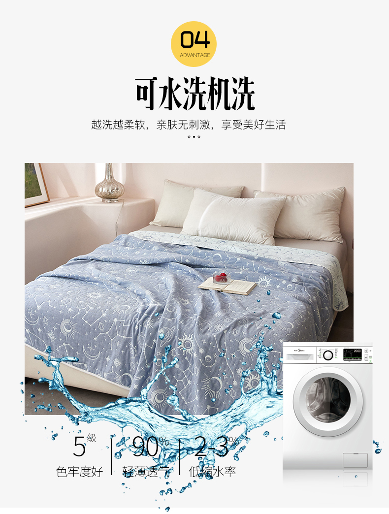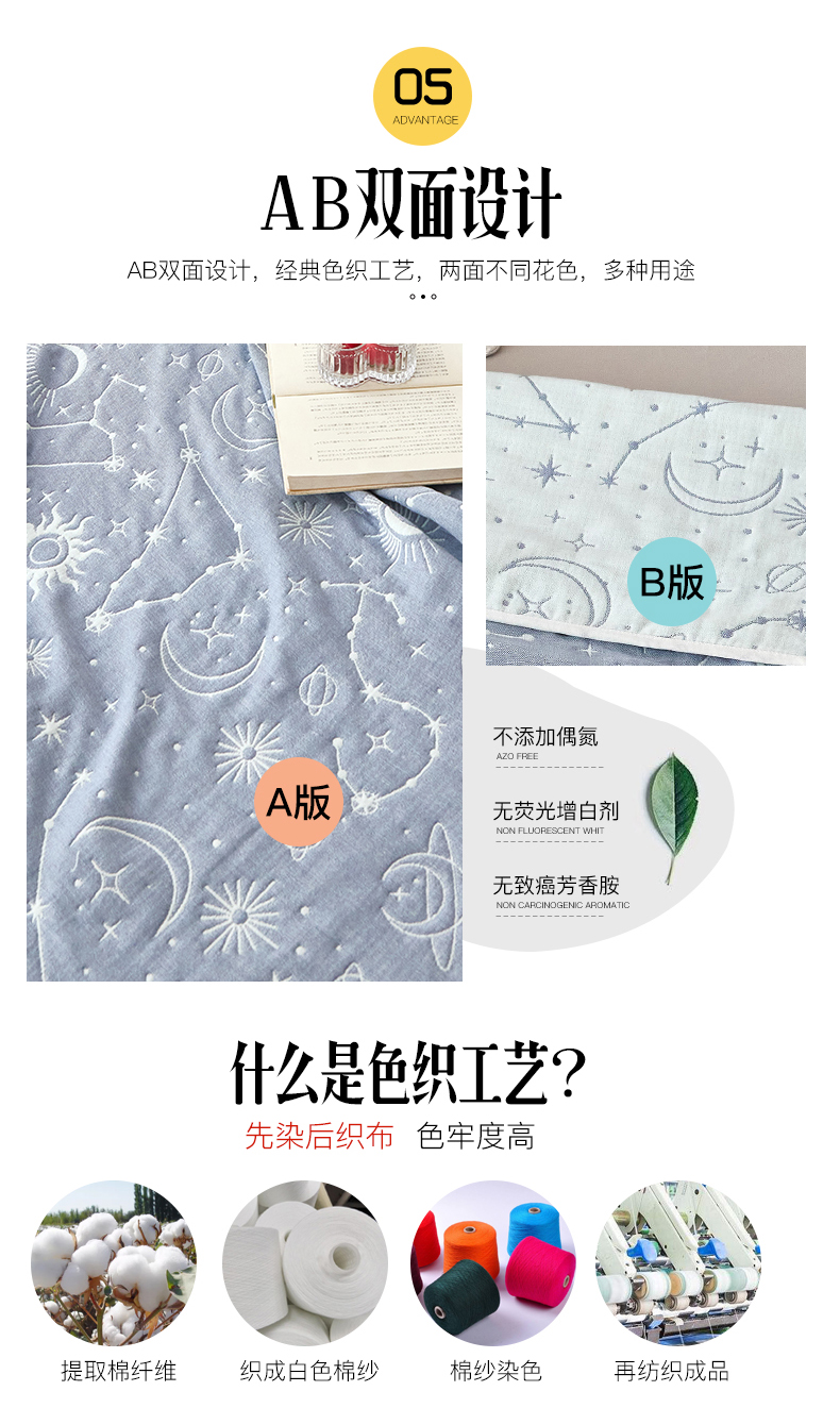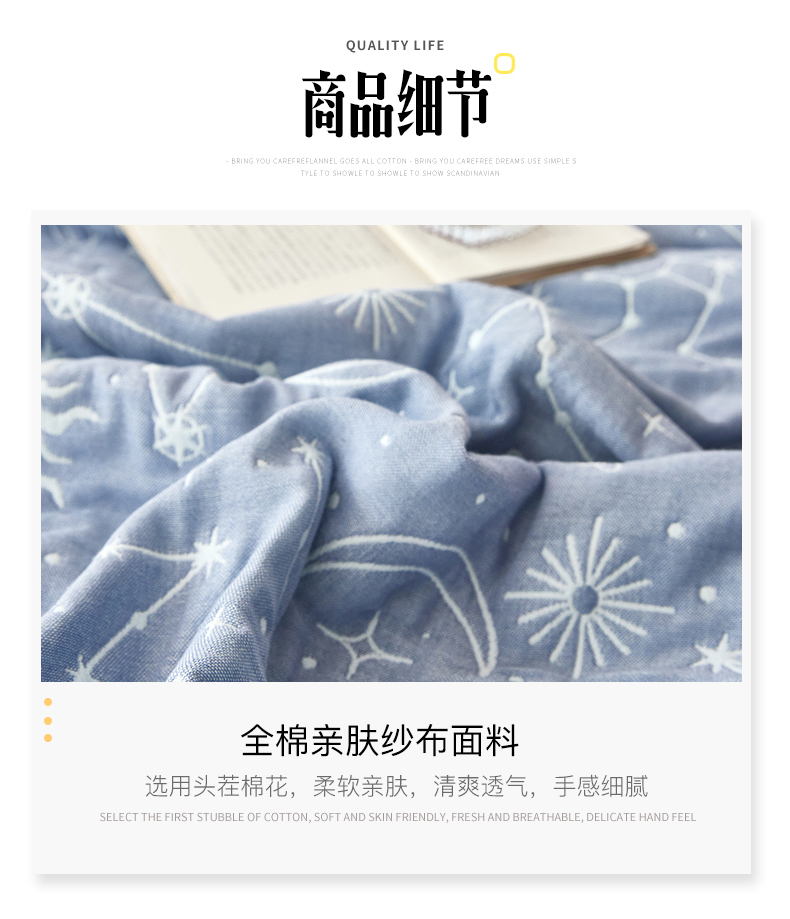 商品名称:爱港家纺 2025新款全棉A类六层纱布毛巾被 夏被 星蓝梦