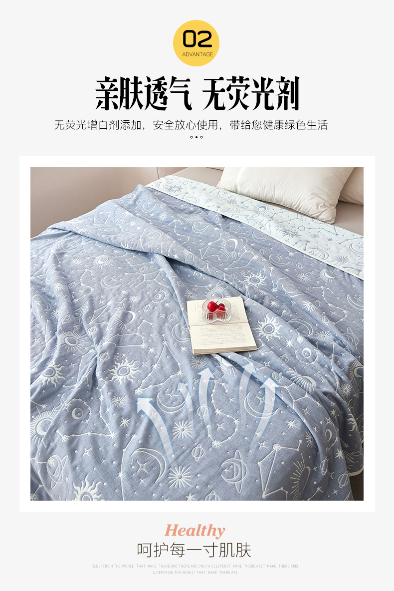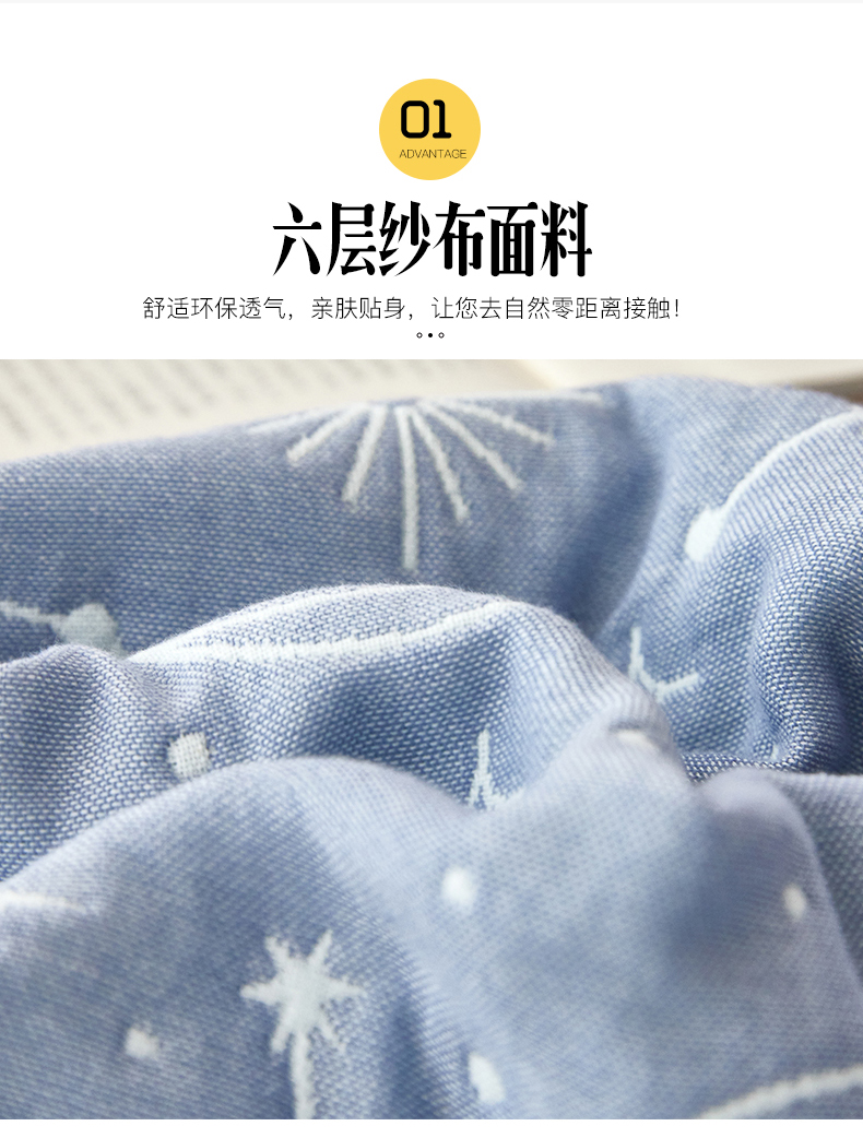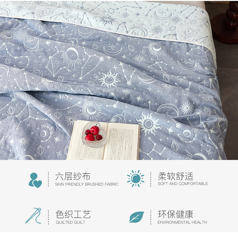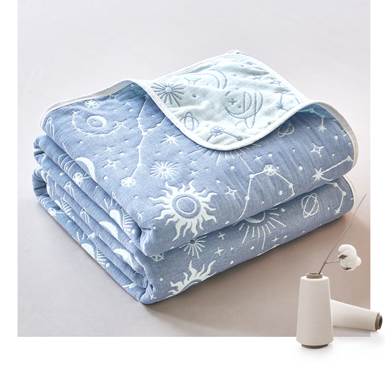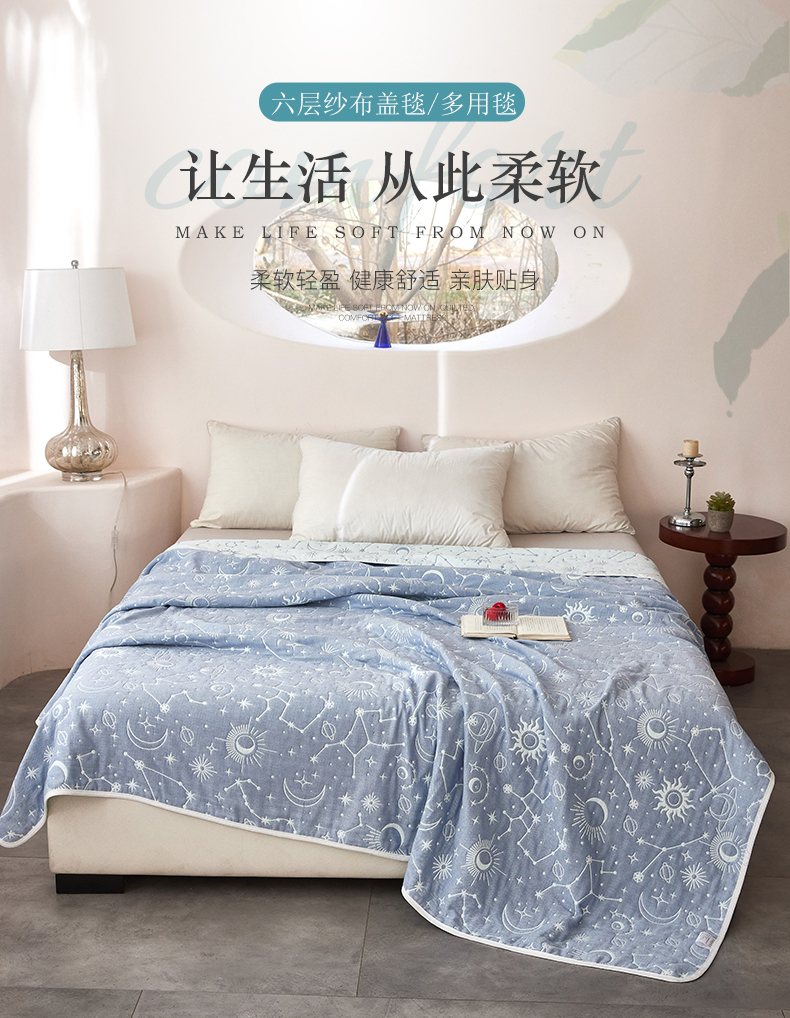 爱港家纺 2025新款全棉A类六层纱布毛巾被 夏被 星蓝梦