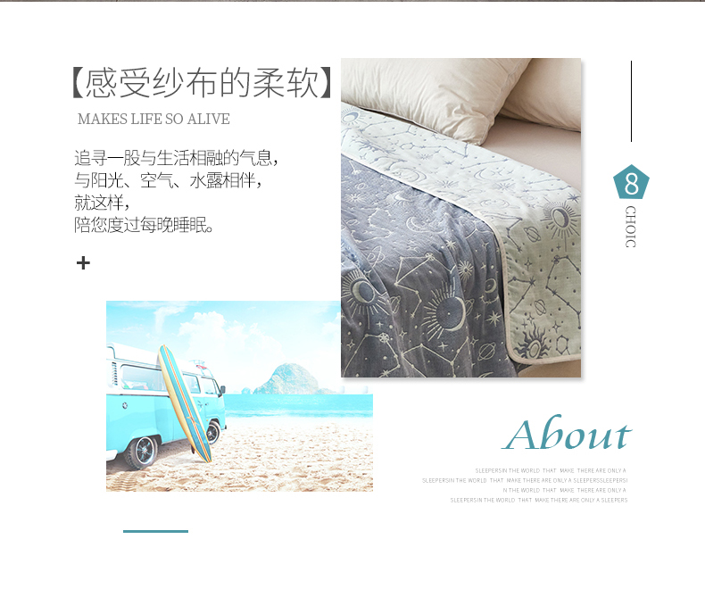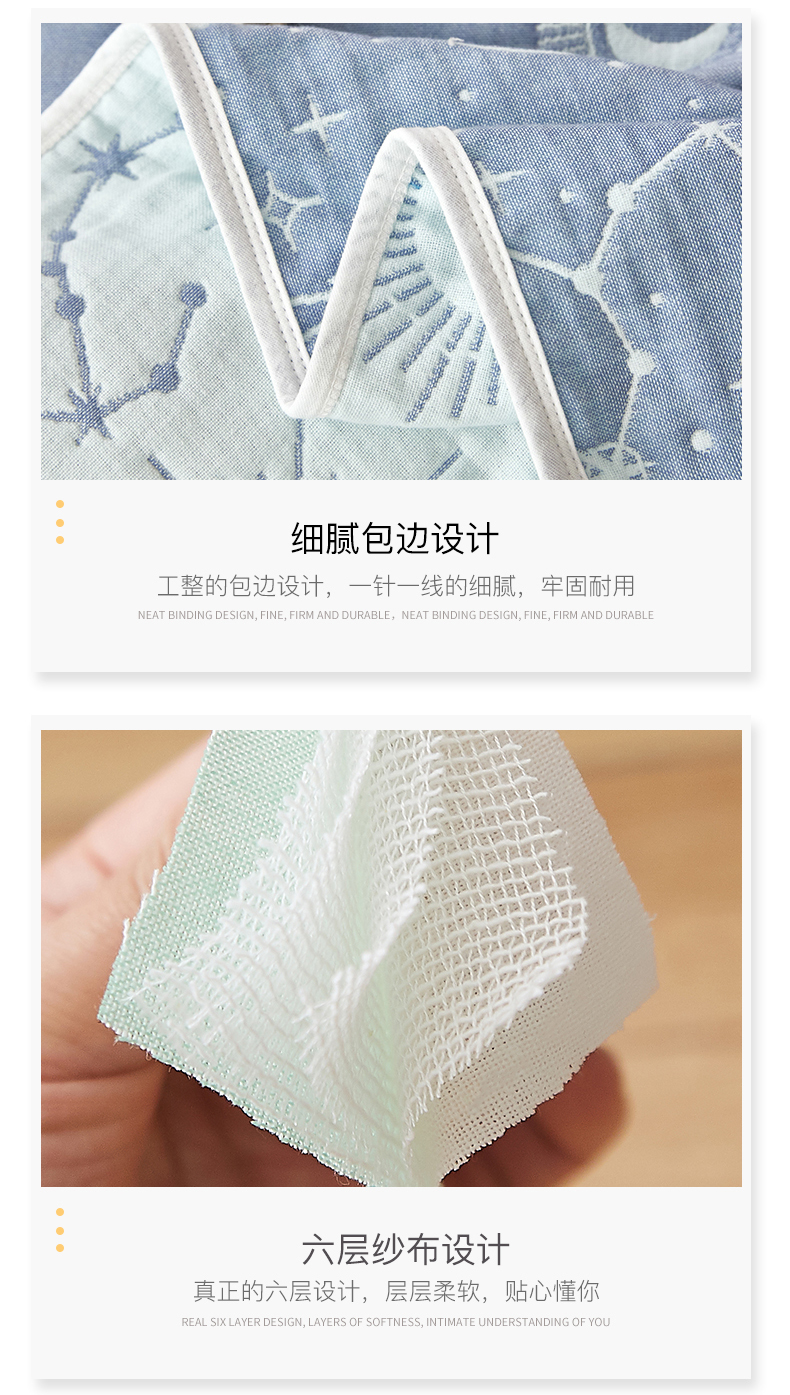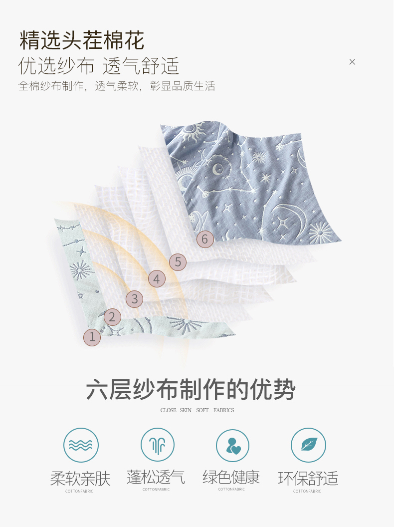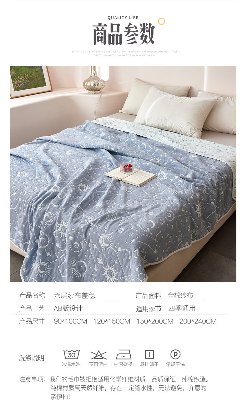 爱港家纺 2025新款全棉A类六层纱布毛巾被 夏被 星蓝梦