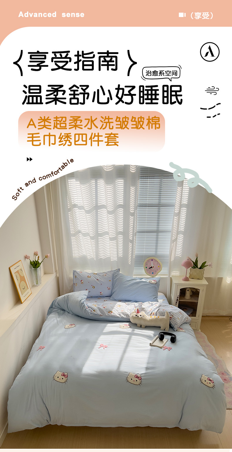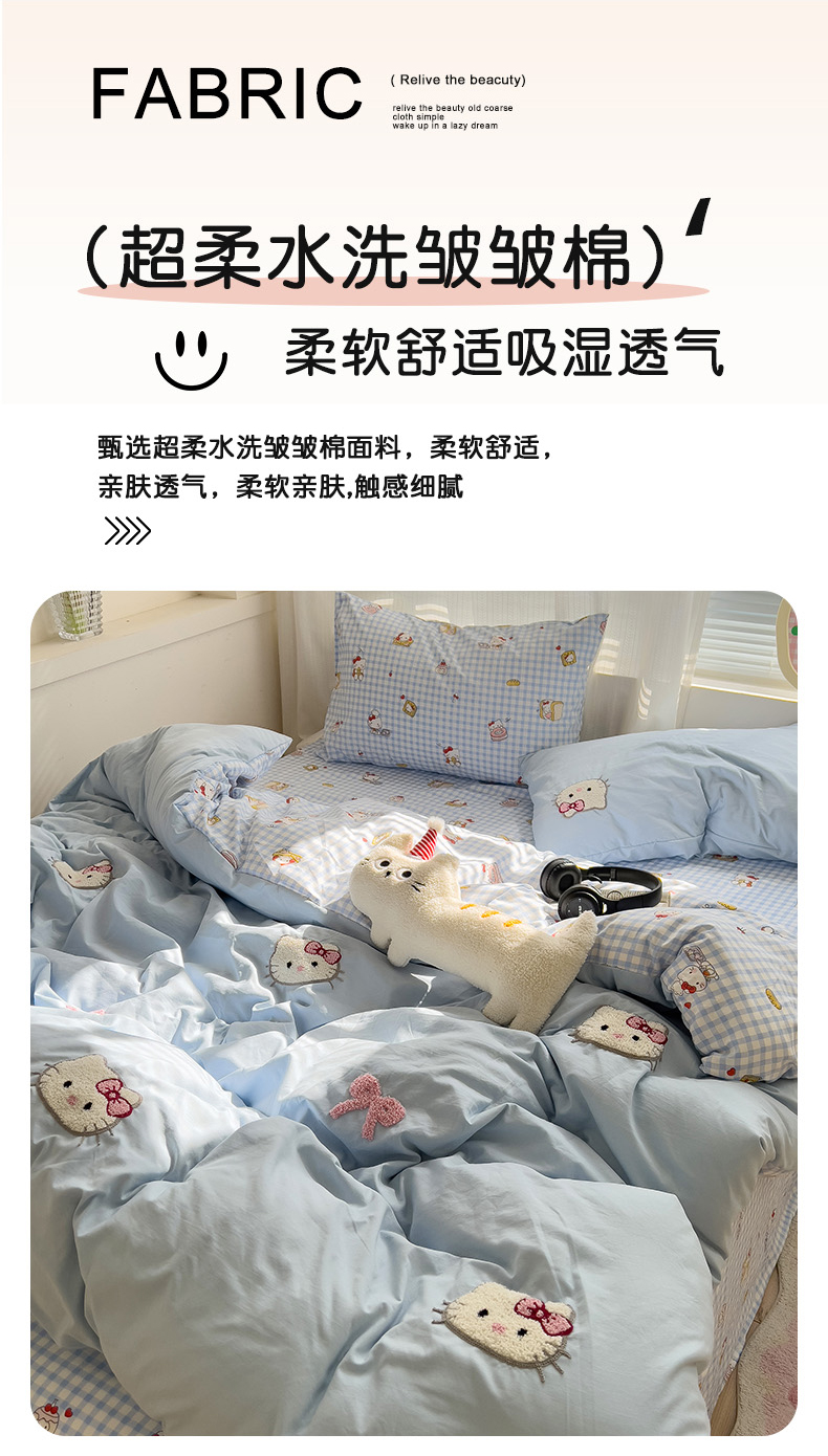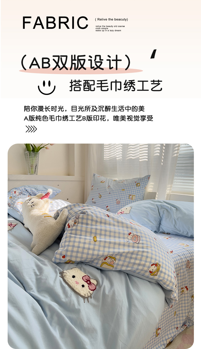 当前位置: 91家纺网 > 商品网购 > 床品套件 > 四件套 > 奈颜 2025新款高克重水洗棉毛巾绣爆款四件套 甜猫-浅蓝