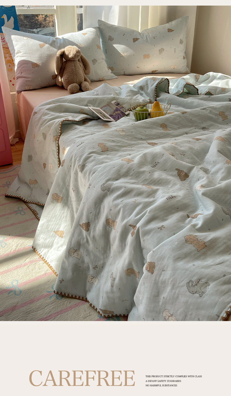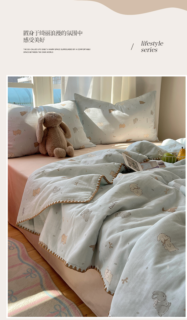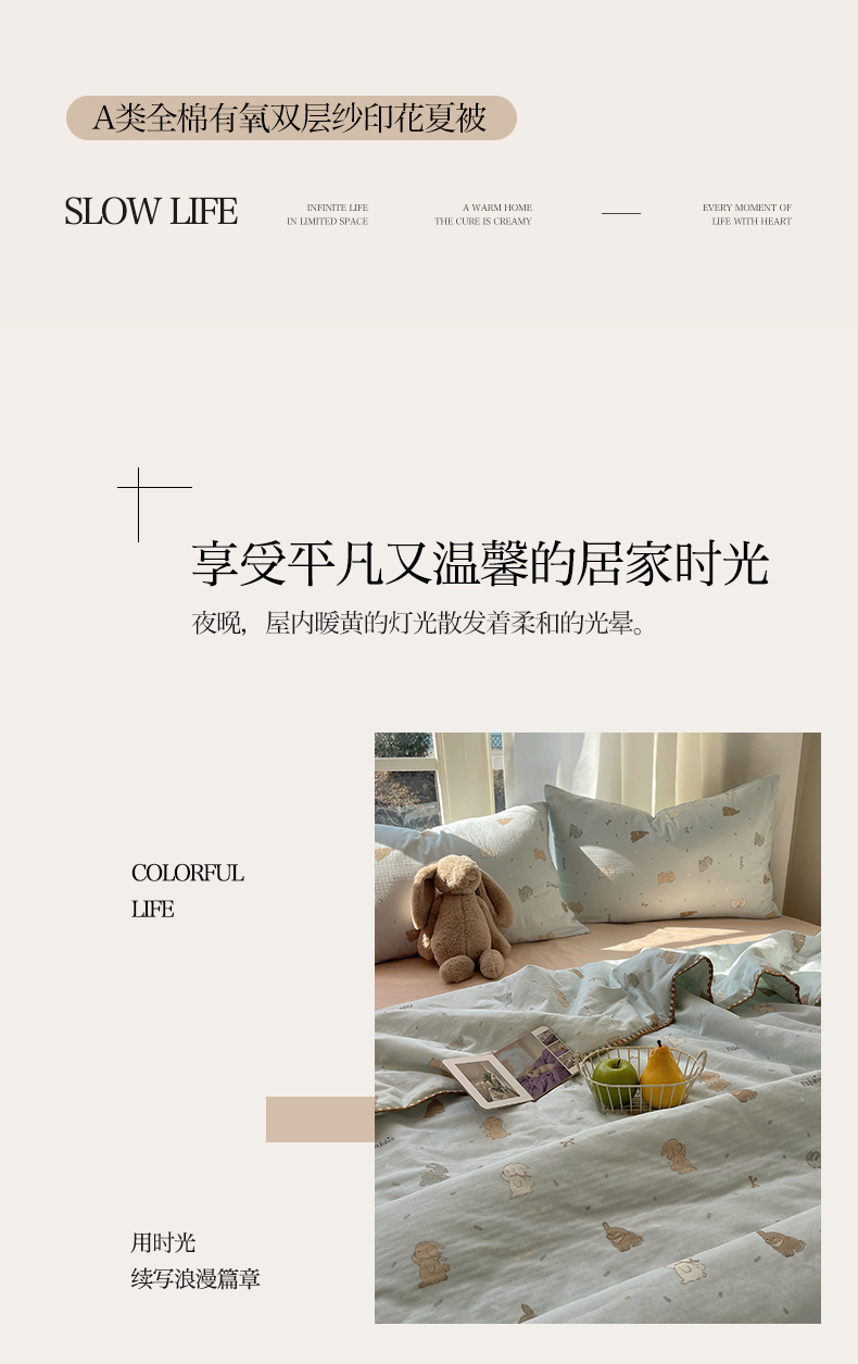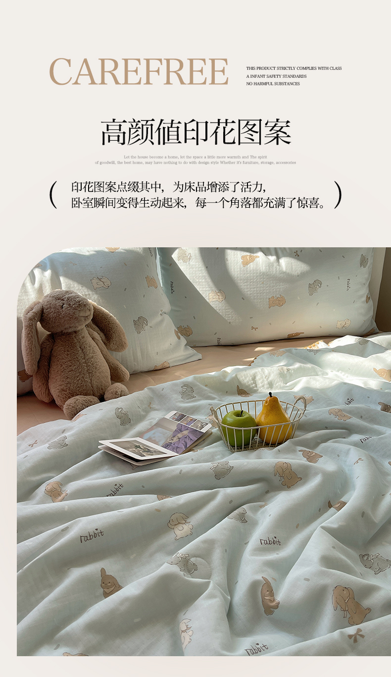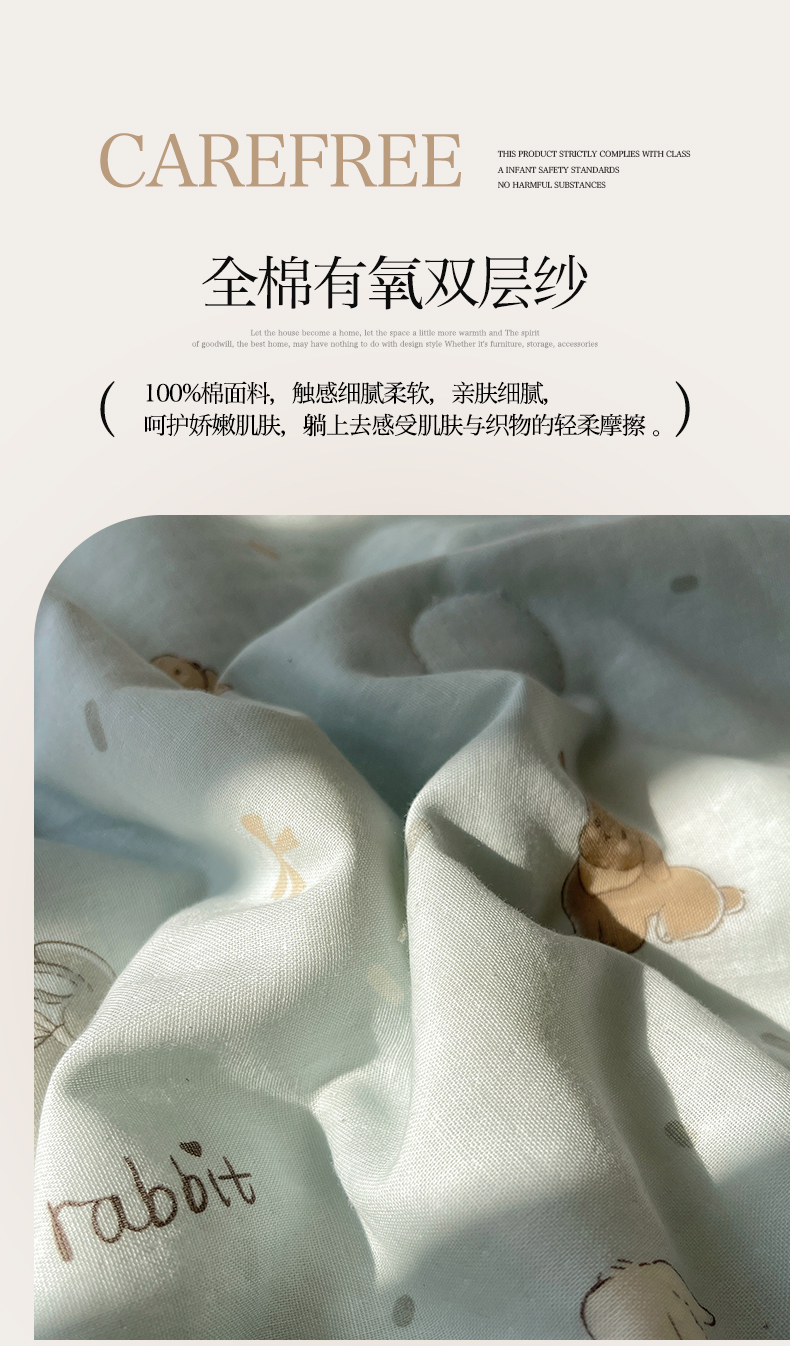 一加一 2025A类全棉有氧双层纱印花夏被 跳跳兔
