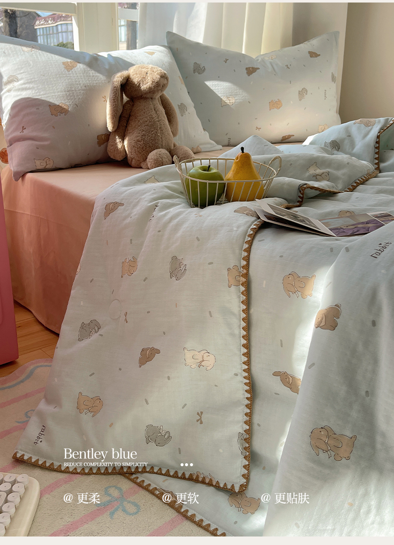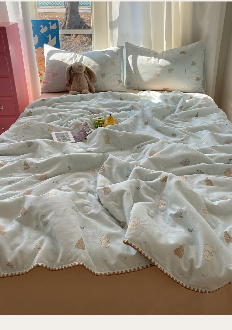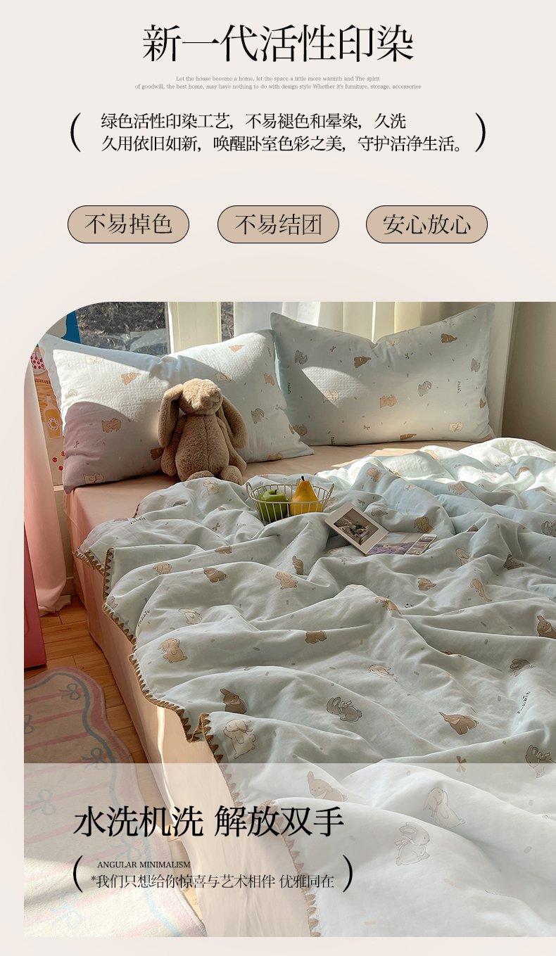 • 91家纺网 家纺一手货源 找家纺 一加一 2025A类全棉有氧双层纱印花夏被 跳跳兔