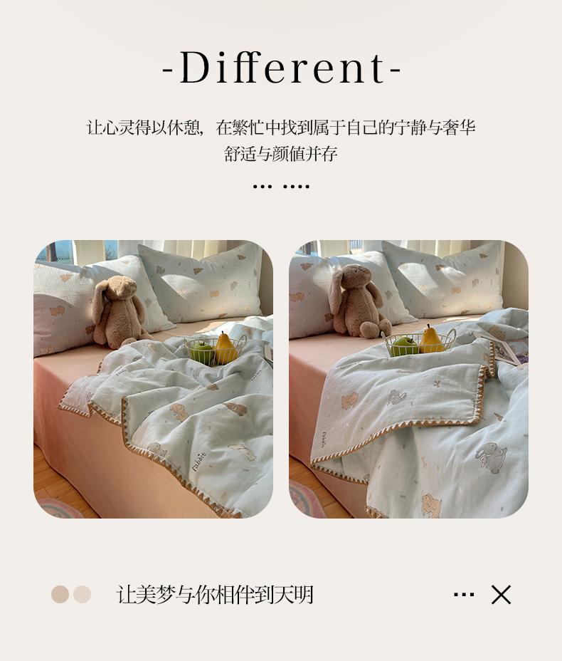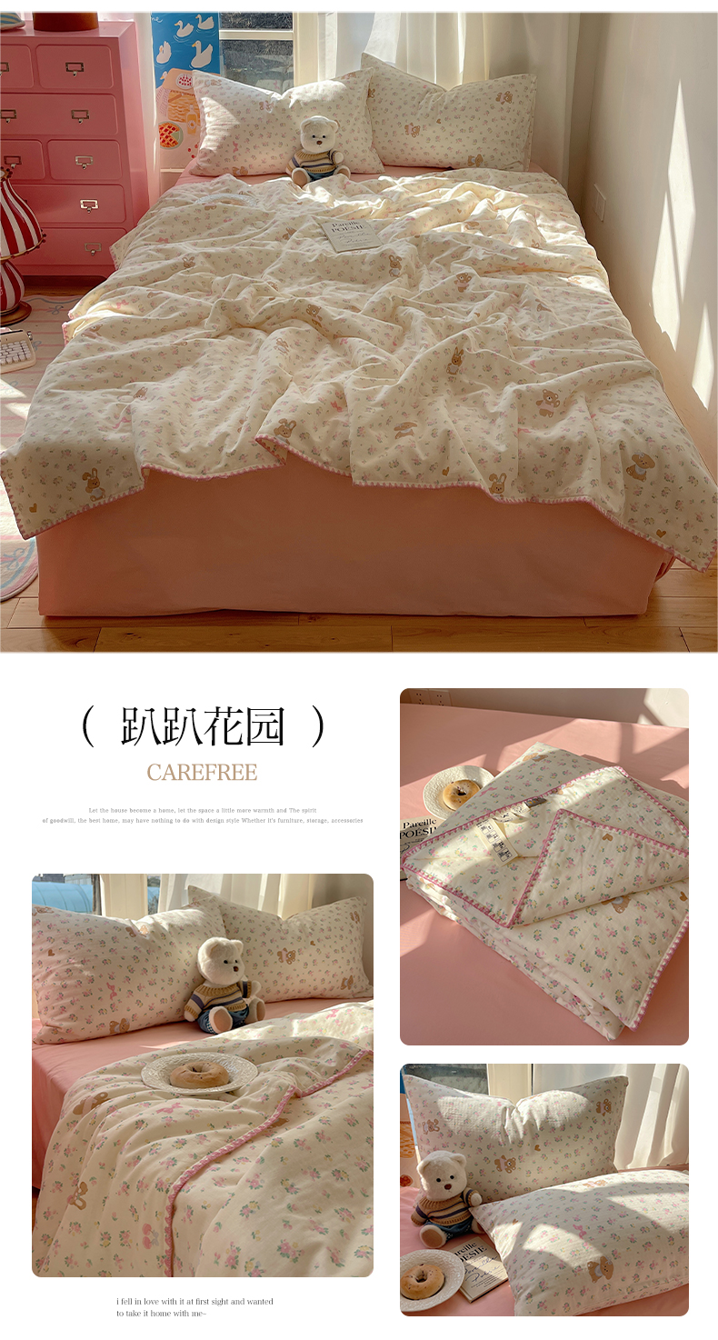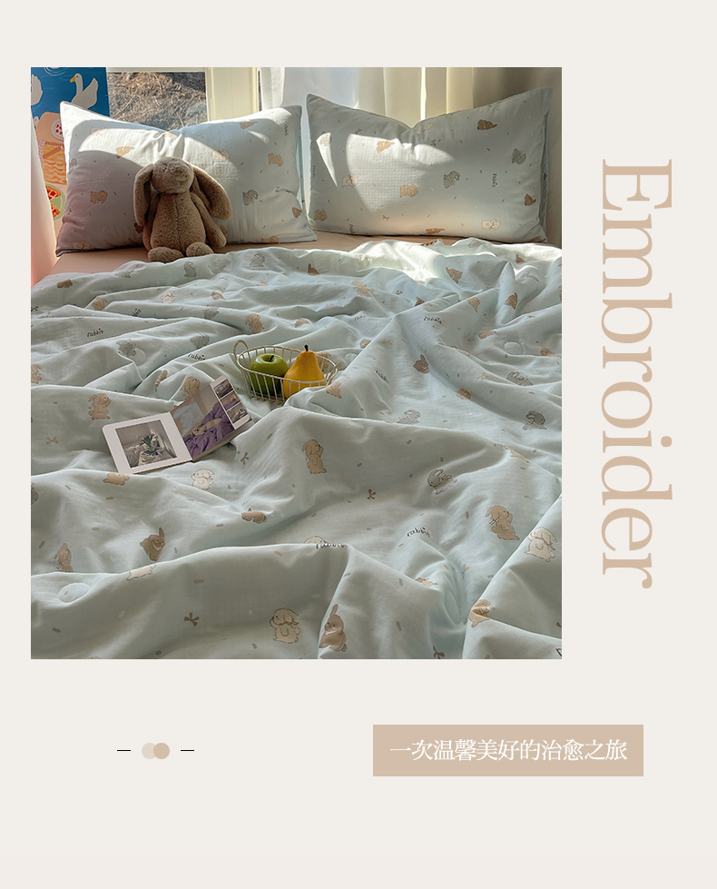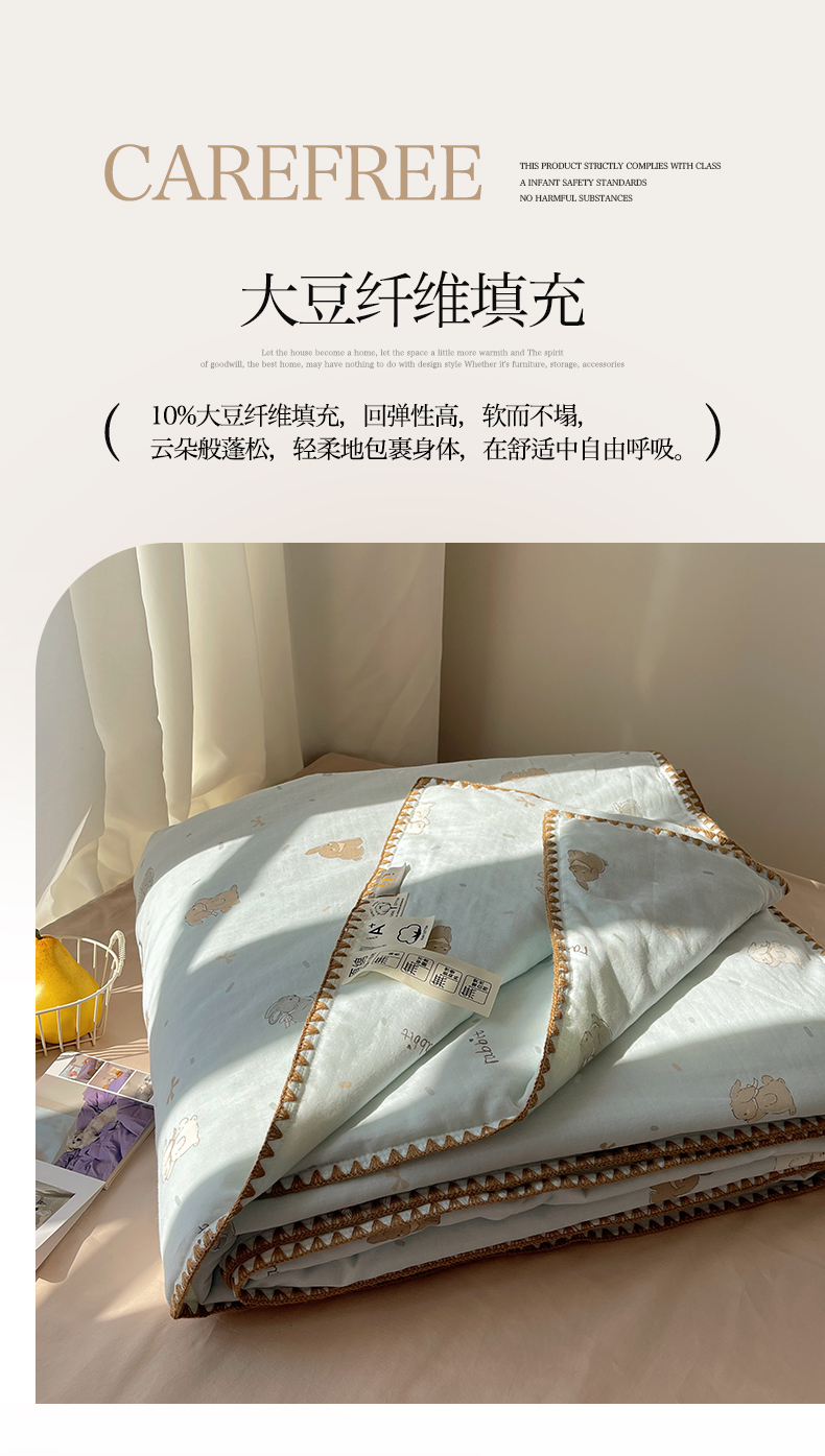 • 91家纺网 家纺一手货源 找家纺 一加一 2025A类全棉有氧双层纱印花夏被 跳跳兔