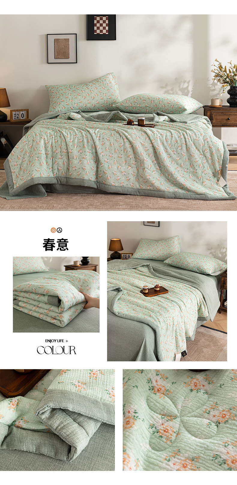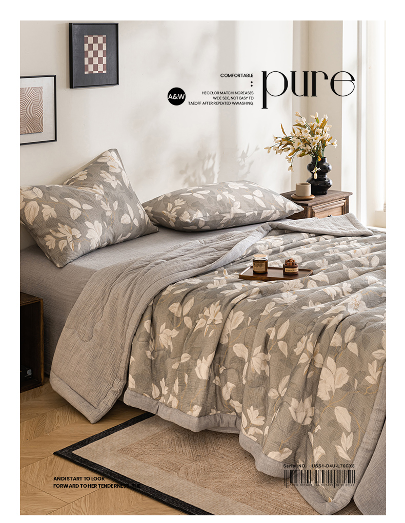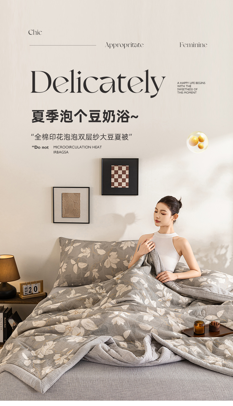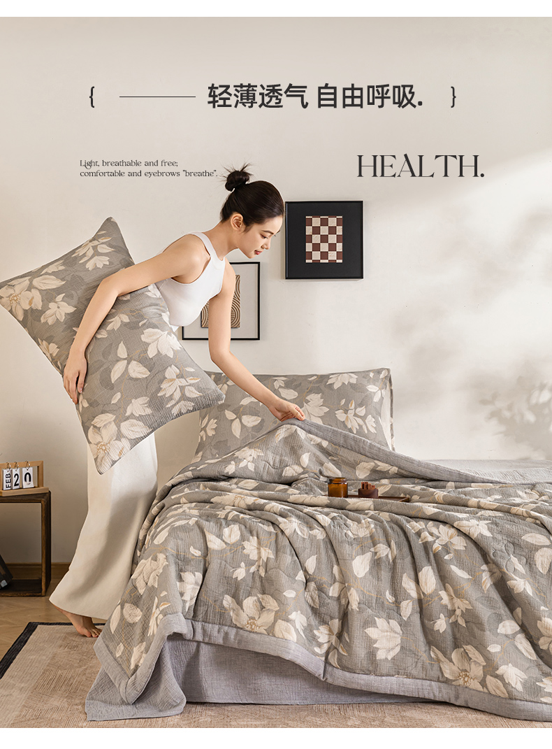 (总)吾诺家居 2026新款全棉色织提花三层纱夏被夏凉被空调被-华美,波点-灰,芳菲-咖,花影-绿,简森-灰,恋恋花开,萌宝,梦幻花园-粉,梦幻花园-灰,太阳花,藤叶-咖,香水繁花-绿
